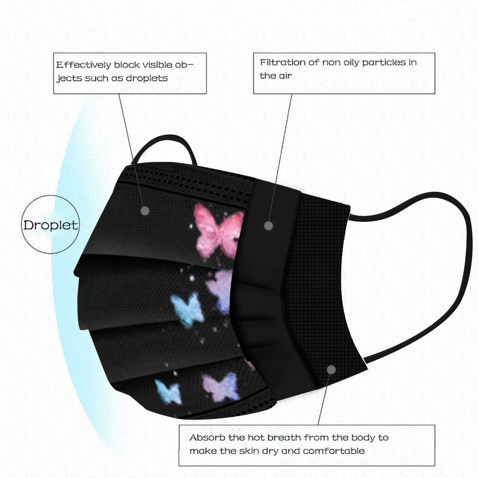 В 3 слоя Нетканая одноразовая маска изготовлена из 3 слоев спанлейс ткани возможны поездки при температуре Безопасен и безопасен для использования. Дышащий материал и милый Узоры, которые делают его полезным и модным. Специальный 3 слоя спанлейс ткани Дизайн, обеспечивает некоторую защиту от пыли, автомобильных выхлопных газов, Пыльца и т. д. эластичная Ушная петля, легко носить и не давит на уши. Маникюрный салон или любые другие области, где может потребоваться защита
