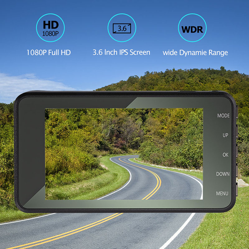 J16 Автомобильный видеорегистратор, камера заднего вида с двумя объективами 1080P 3,6 "Full HD циклическая запись g-сенсор видеорегистратор Dashcam