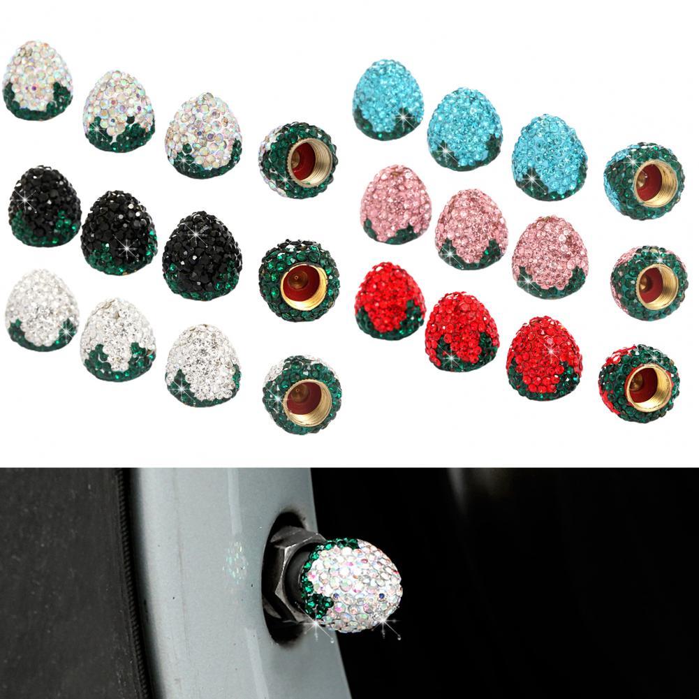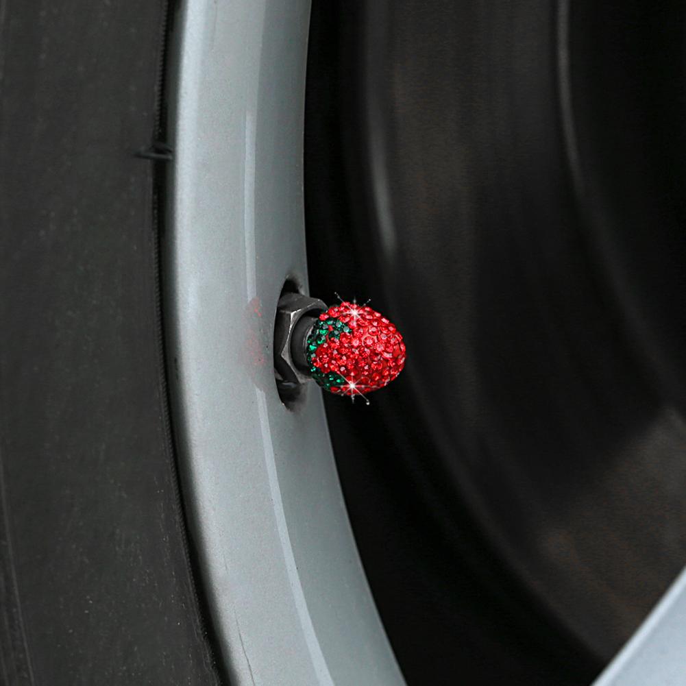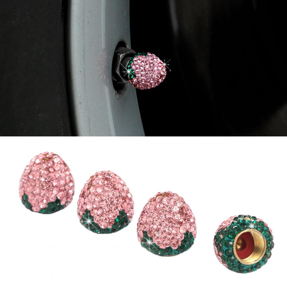 4 шт. колпачок клапана, сменная хорошая уплотнительная крышка, прозрачные стразы, инластированные Клубничные автомобильные шины, колпачок клапана для автомобилей