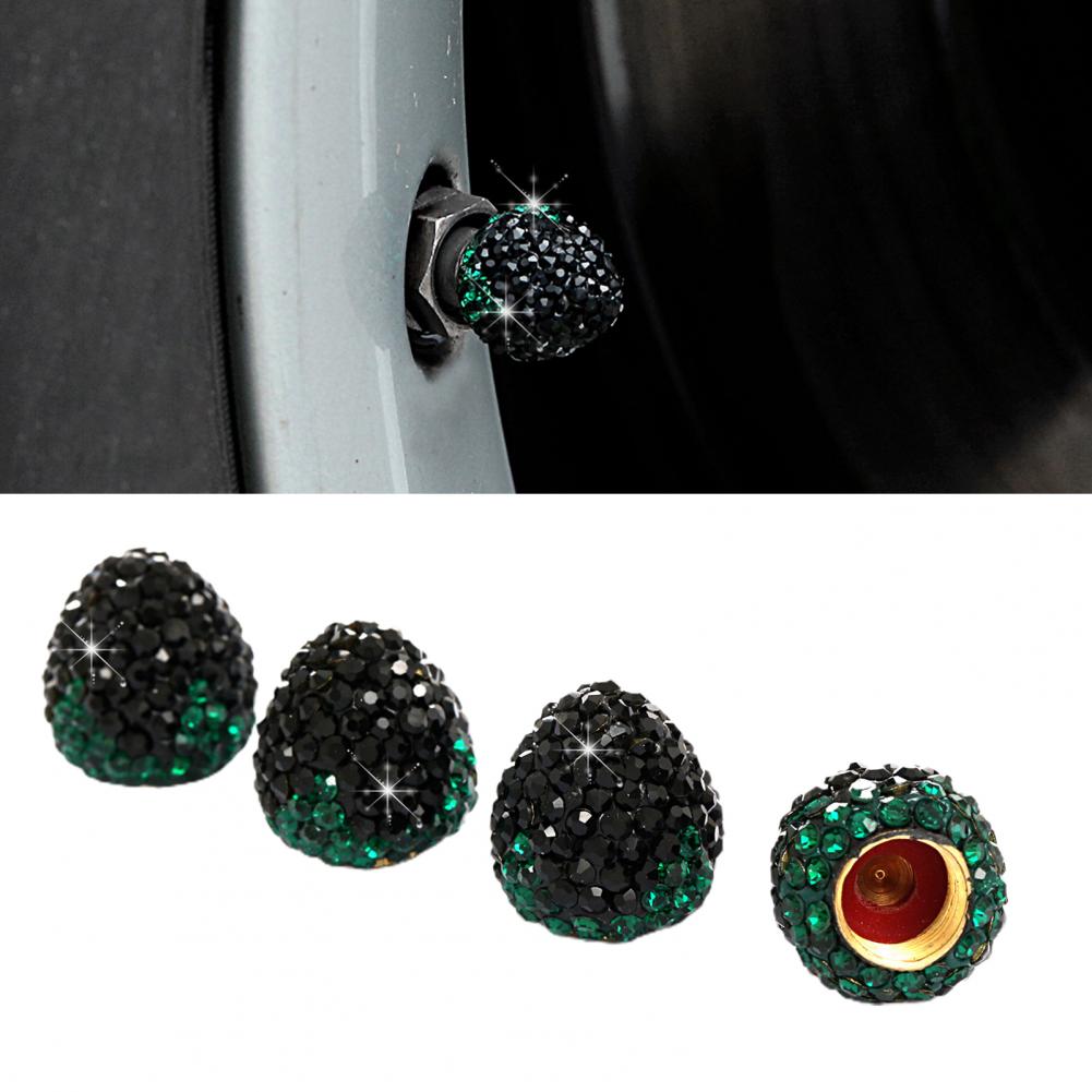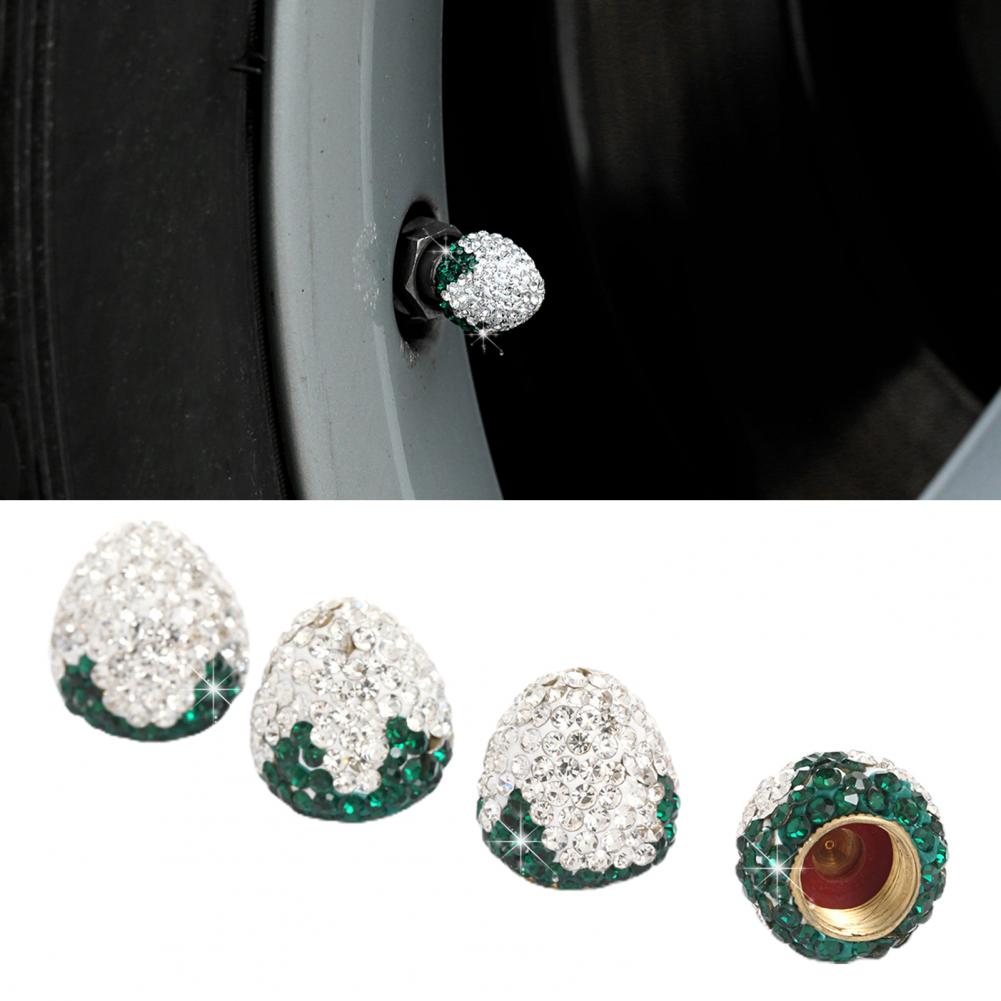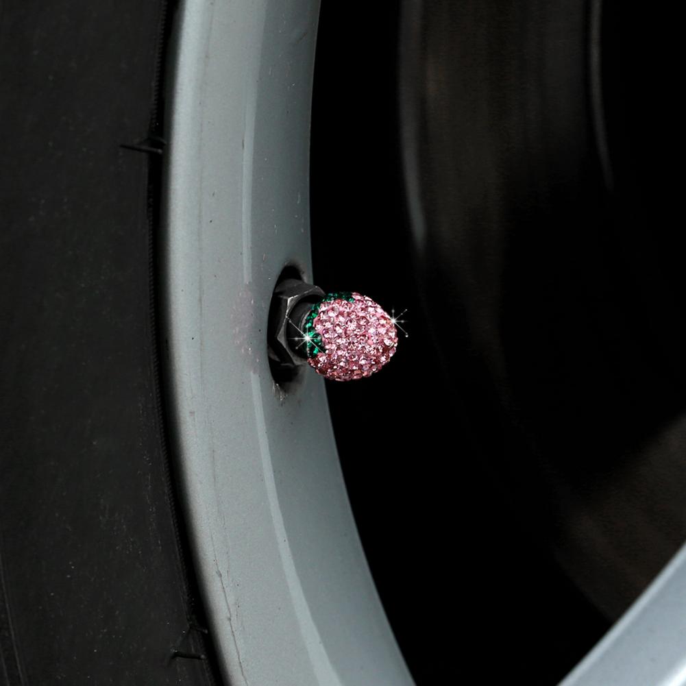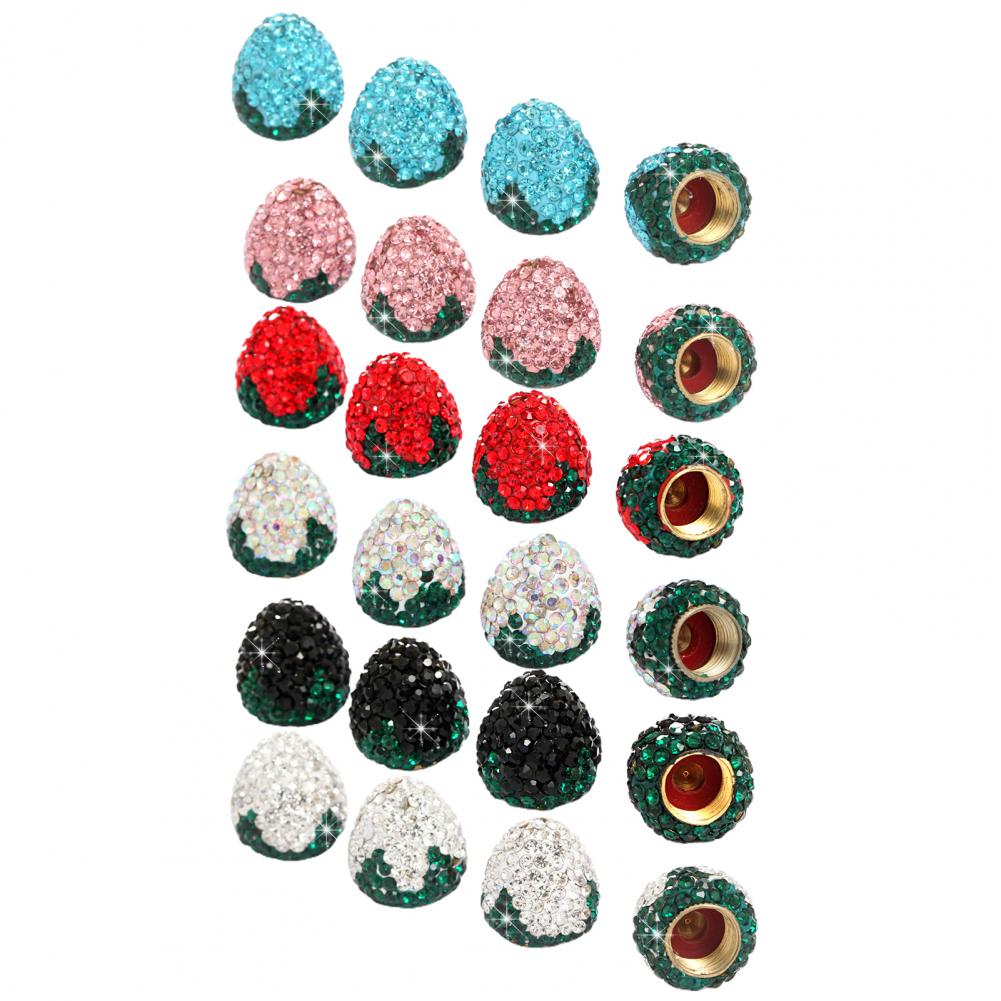 4 шт. колпачок клапана, сменная хорошая уплотнительная крышка, прозрачные стразы, инластированные Клубничные автомобильные шины, колпачок клапана для автомобилей