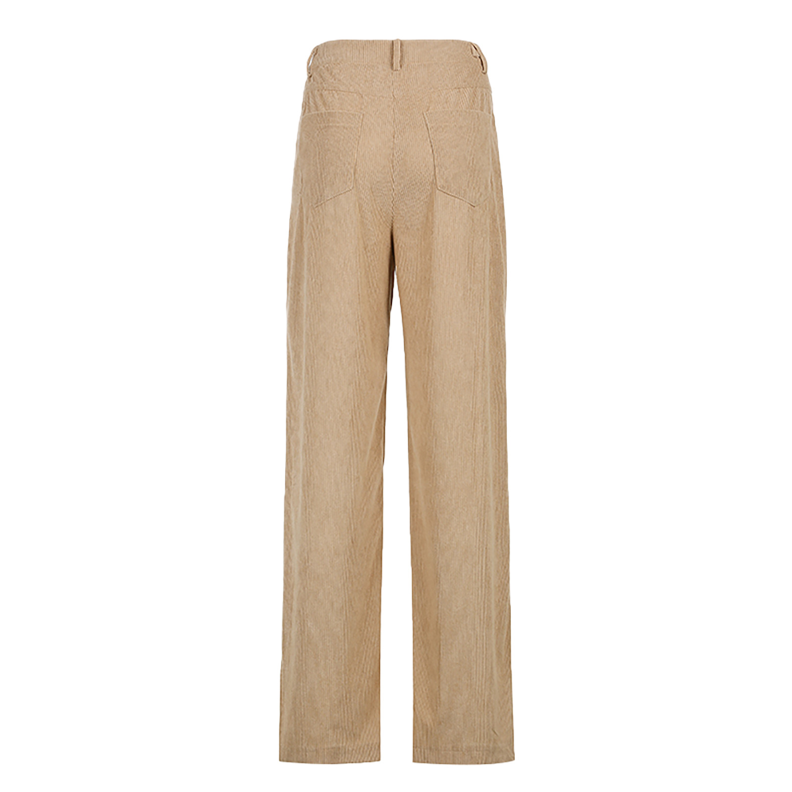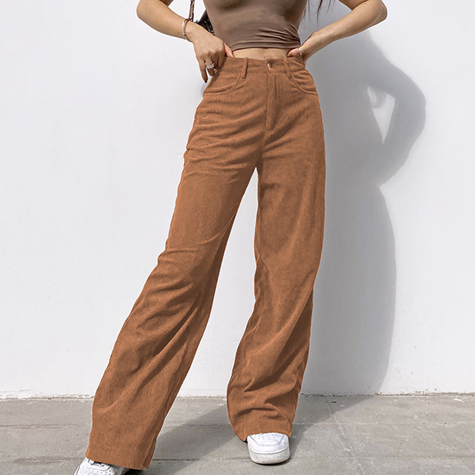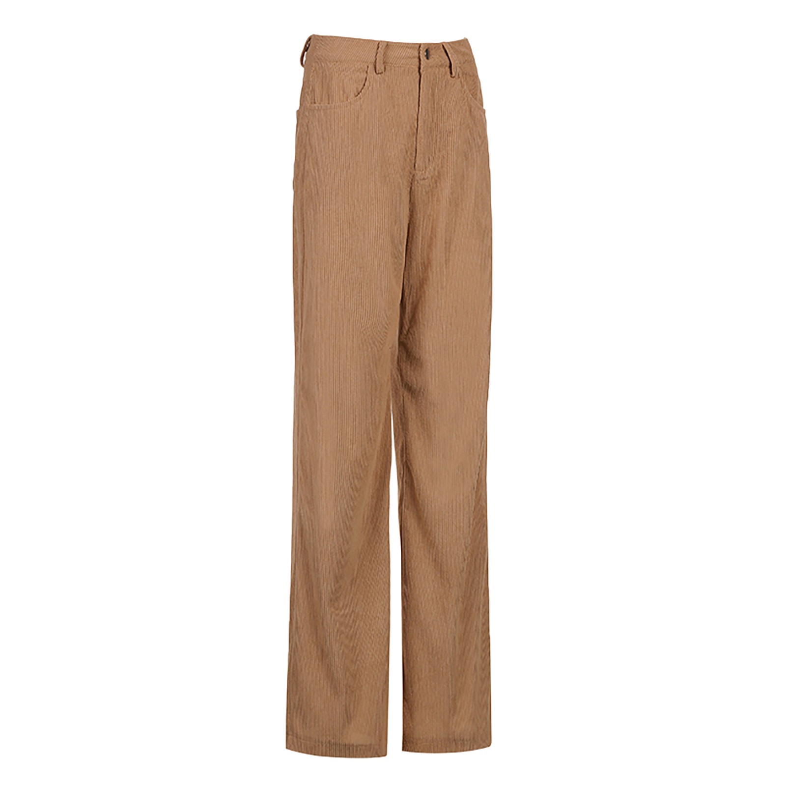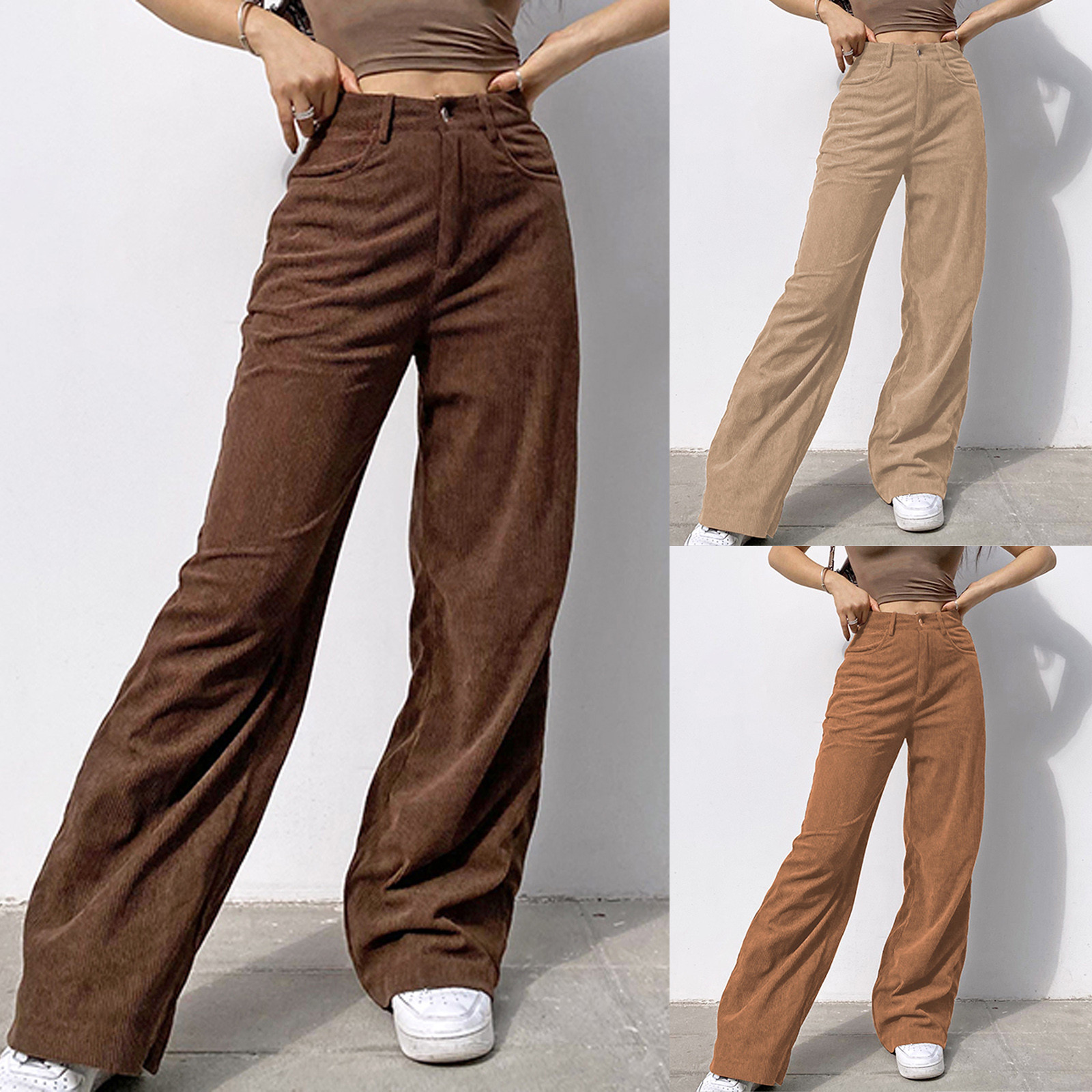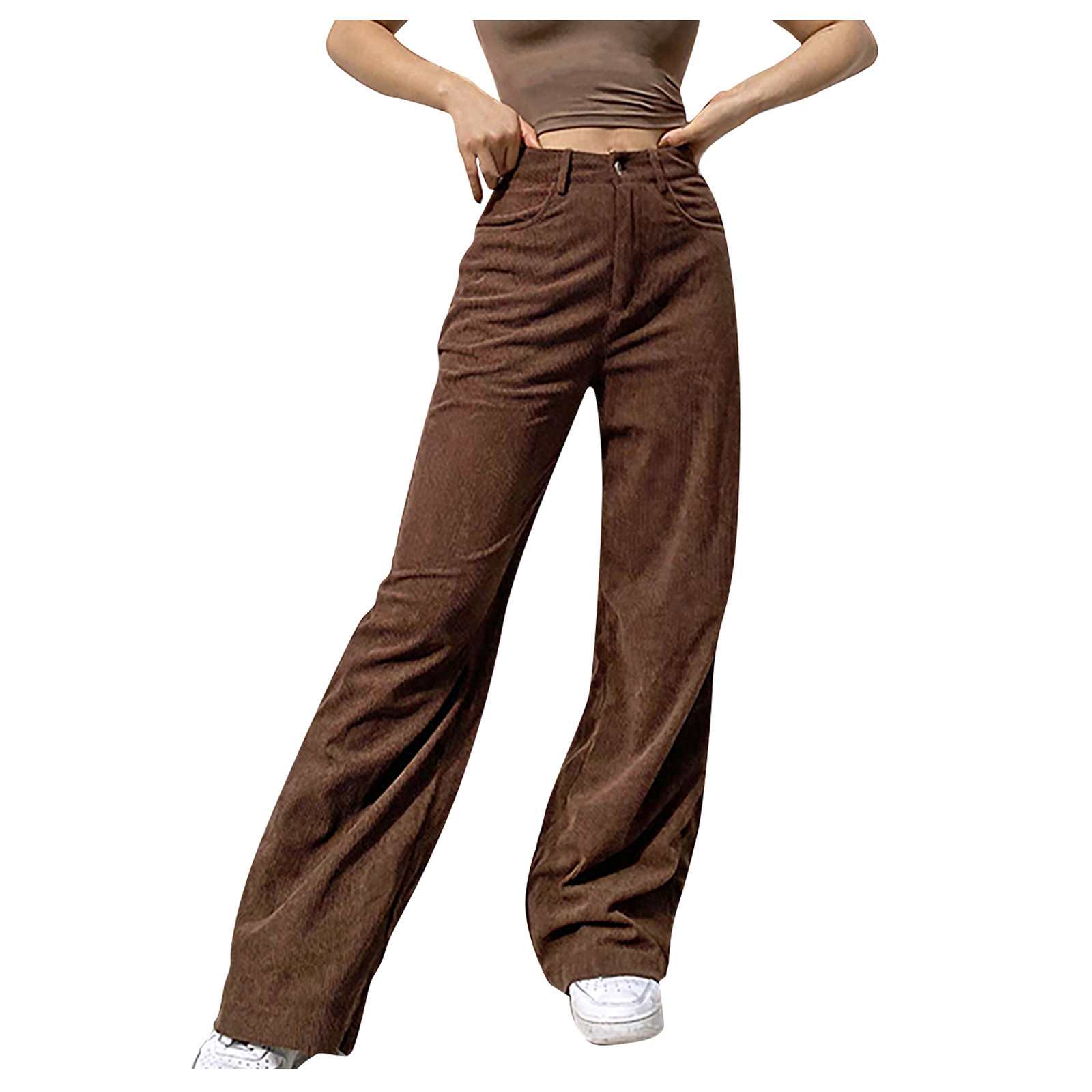 Women’s Solid Mid Waisted Wide Leg Pants Straight Casual Baggy Trousers