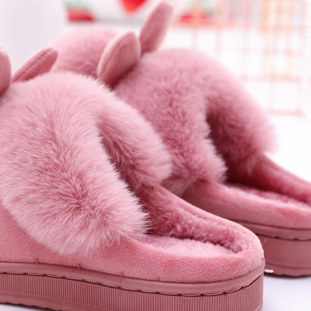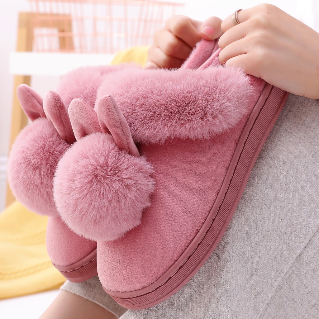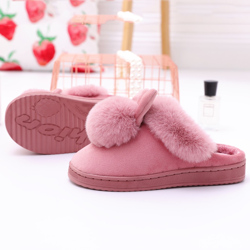 Женские зимние домашние меховые тапочки с заячьими ушками; Мягкая удобная обувь