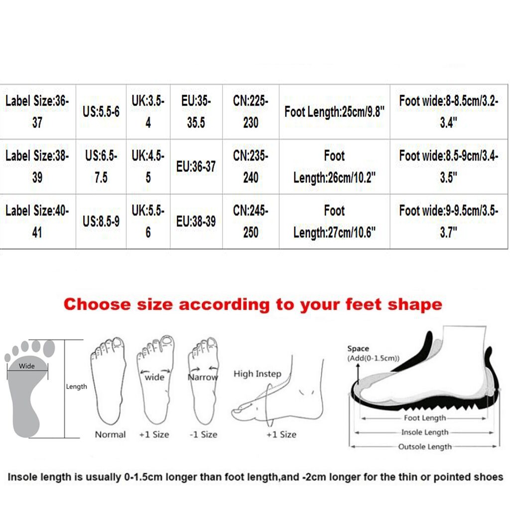 Теплое напоминание:Различные стили обуви, пожалуйста, выберите размер в соответствии с типом вашей стопы.