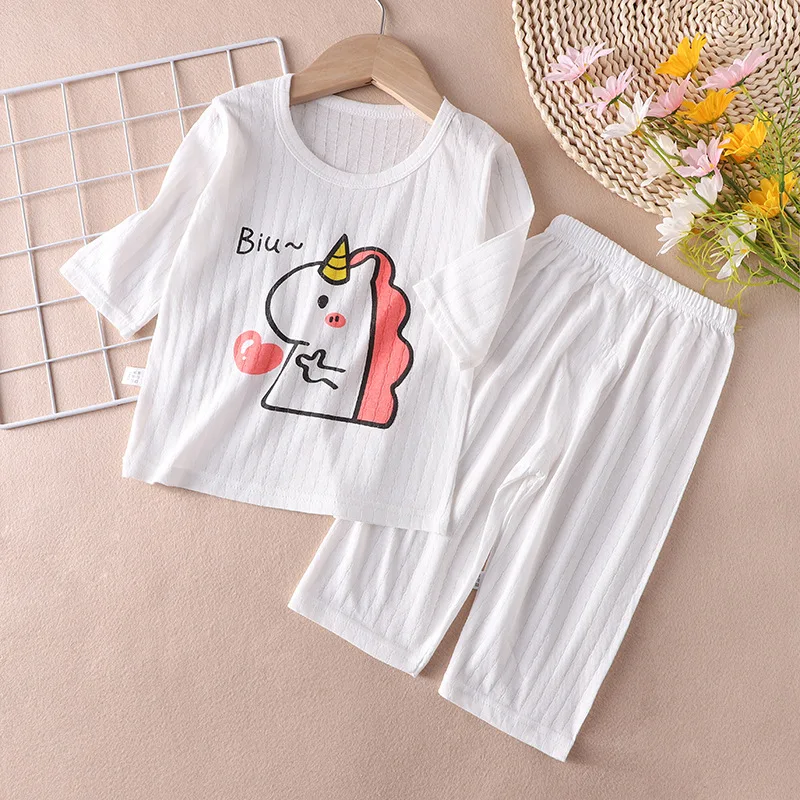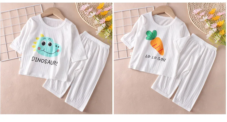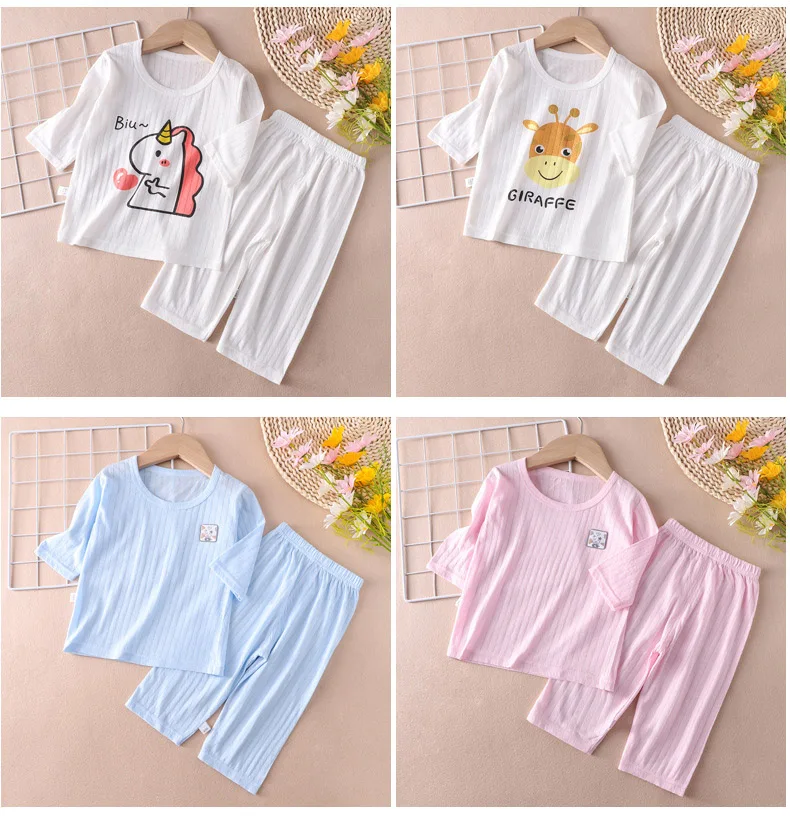 0-8 Years Baby Kids Pajamas Summer Short Sleeve Children's Clothing Set Toddler Boys Girls Sleepwear Breathable Cotton Pyjamas