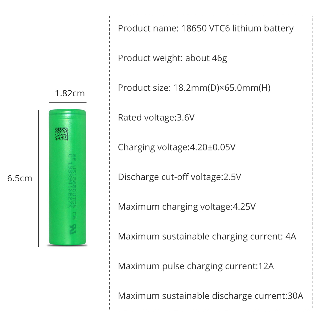 1. Название продукта: 18650 vtc6 литиевая батарея