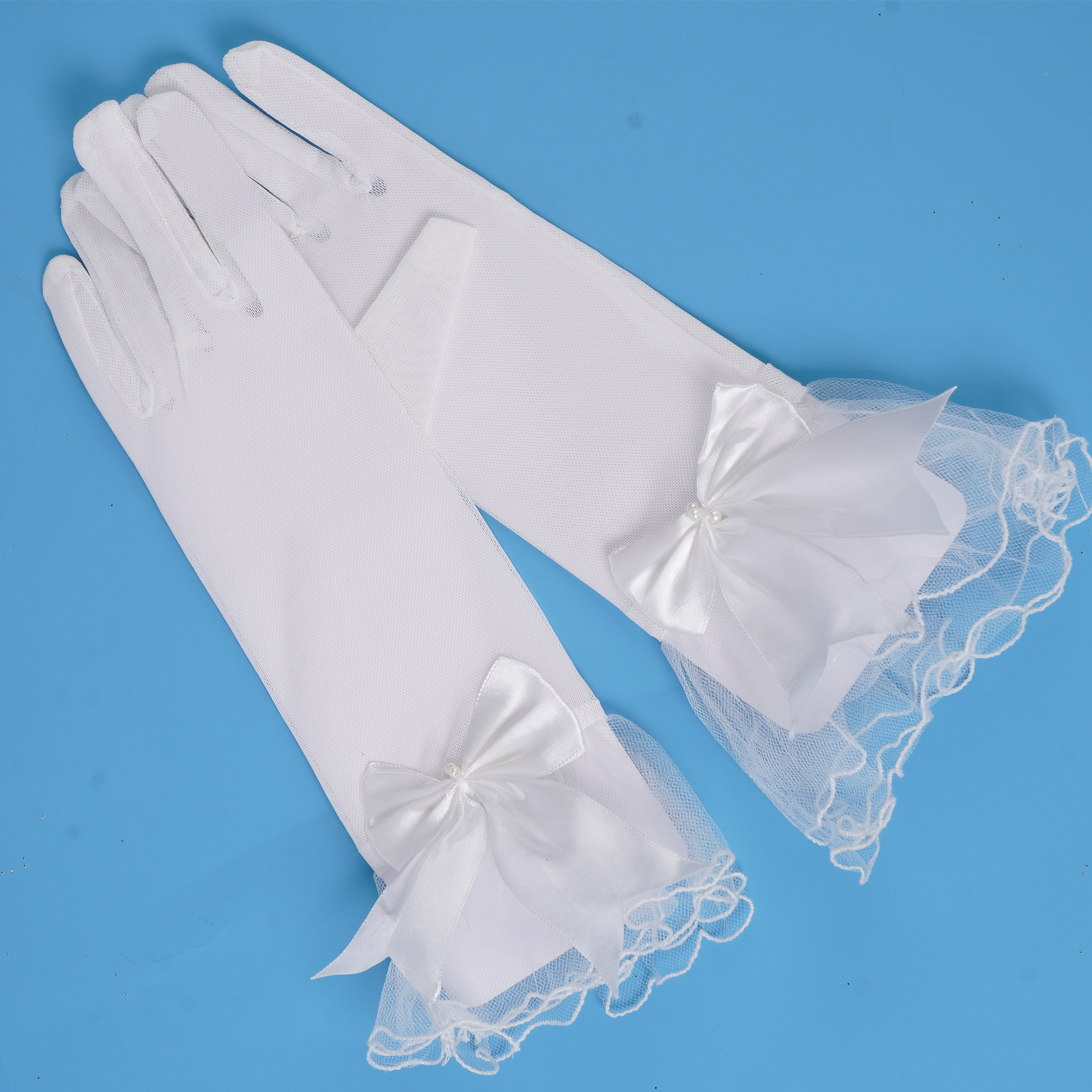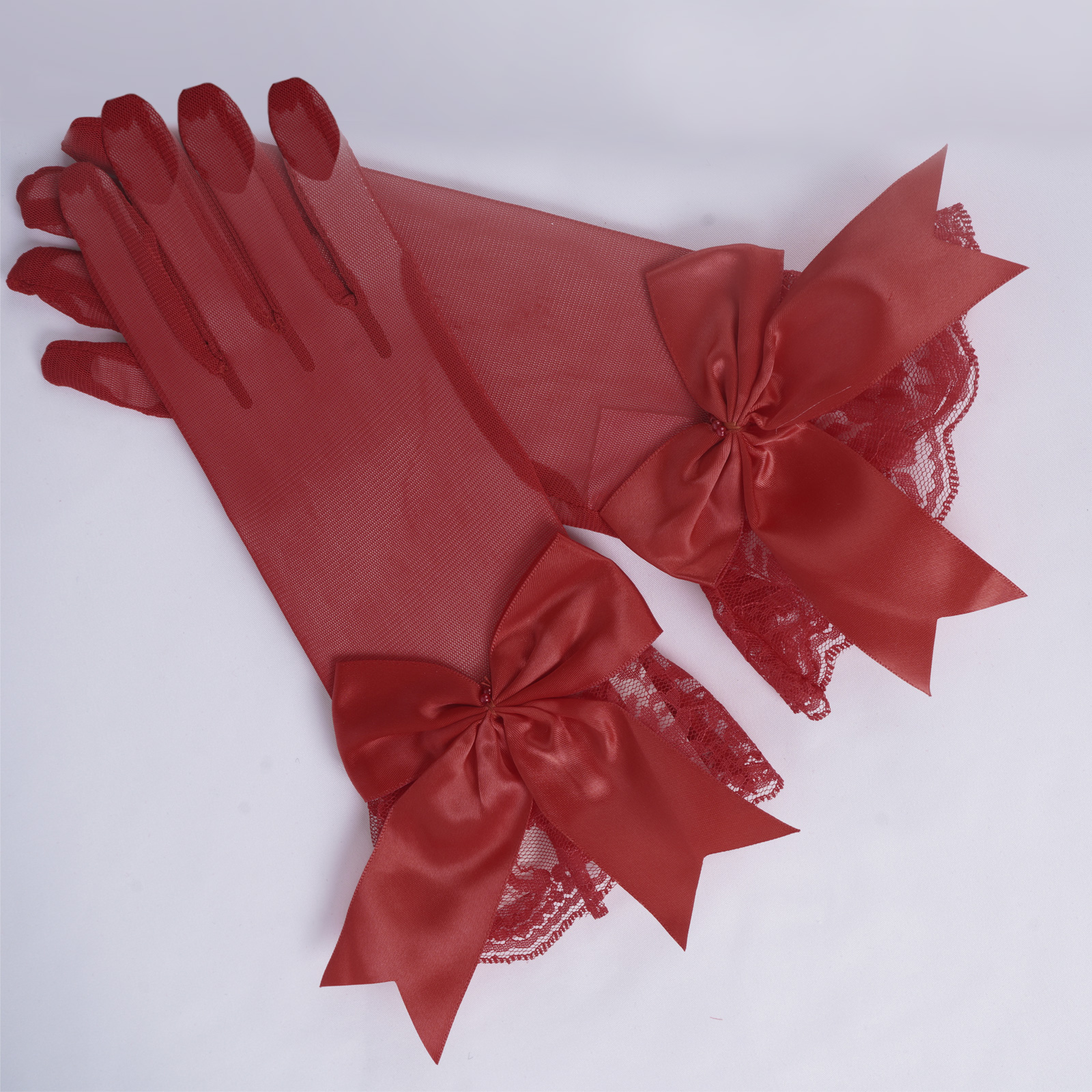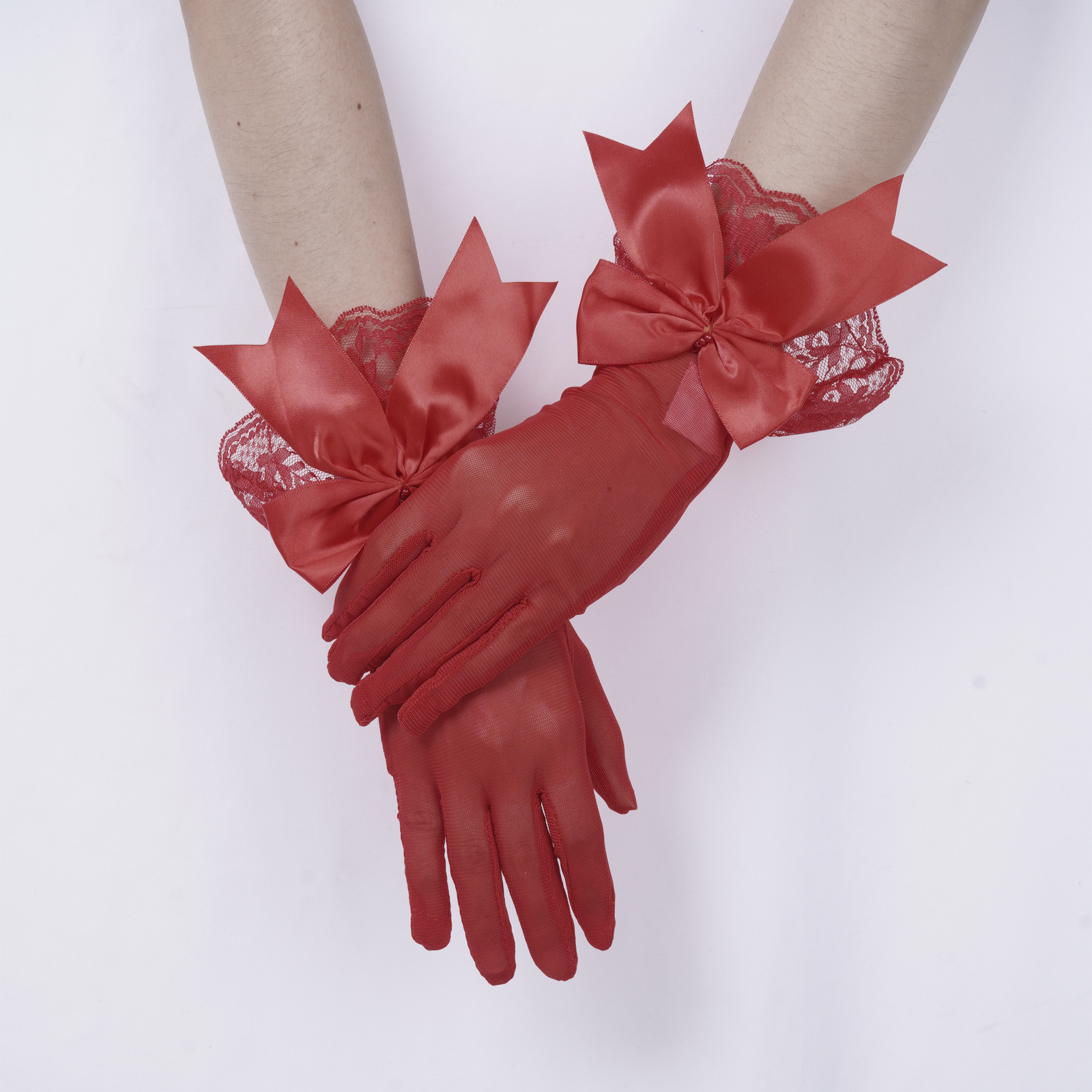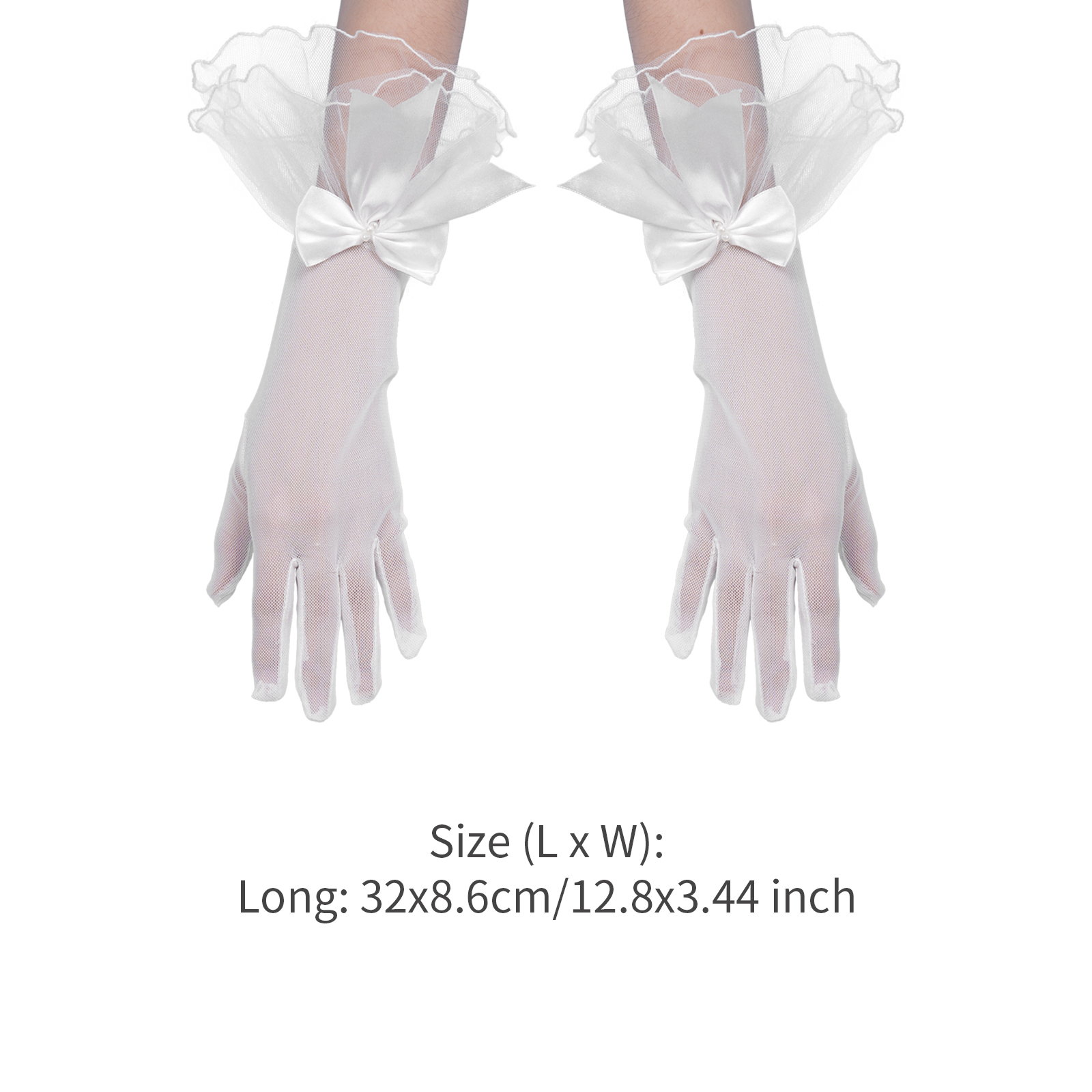 Дизайн с сеткой и цветочным кружевным узором, длина запястья, атласный бант с искусственным жемчугом и оборками на запястье придает женственность и привлекательность.