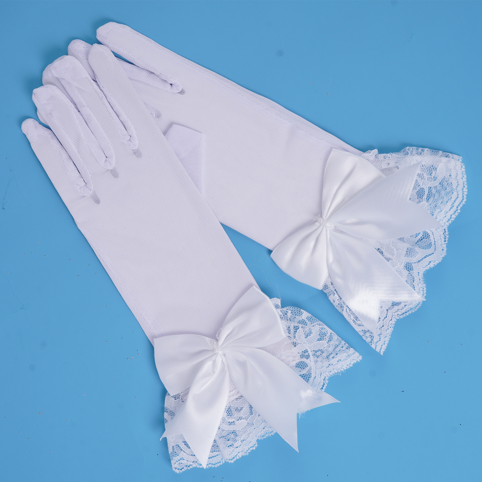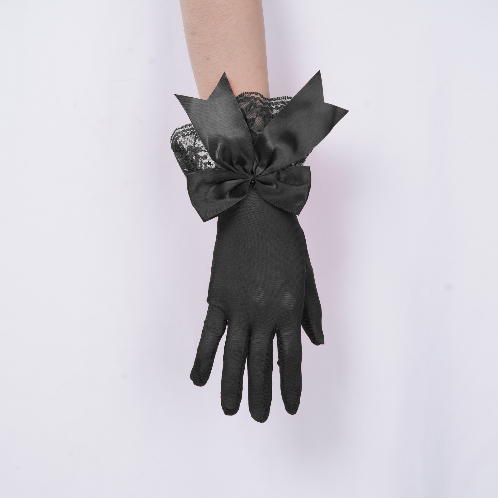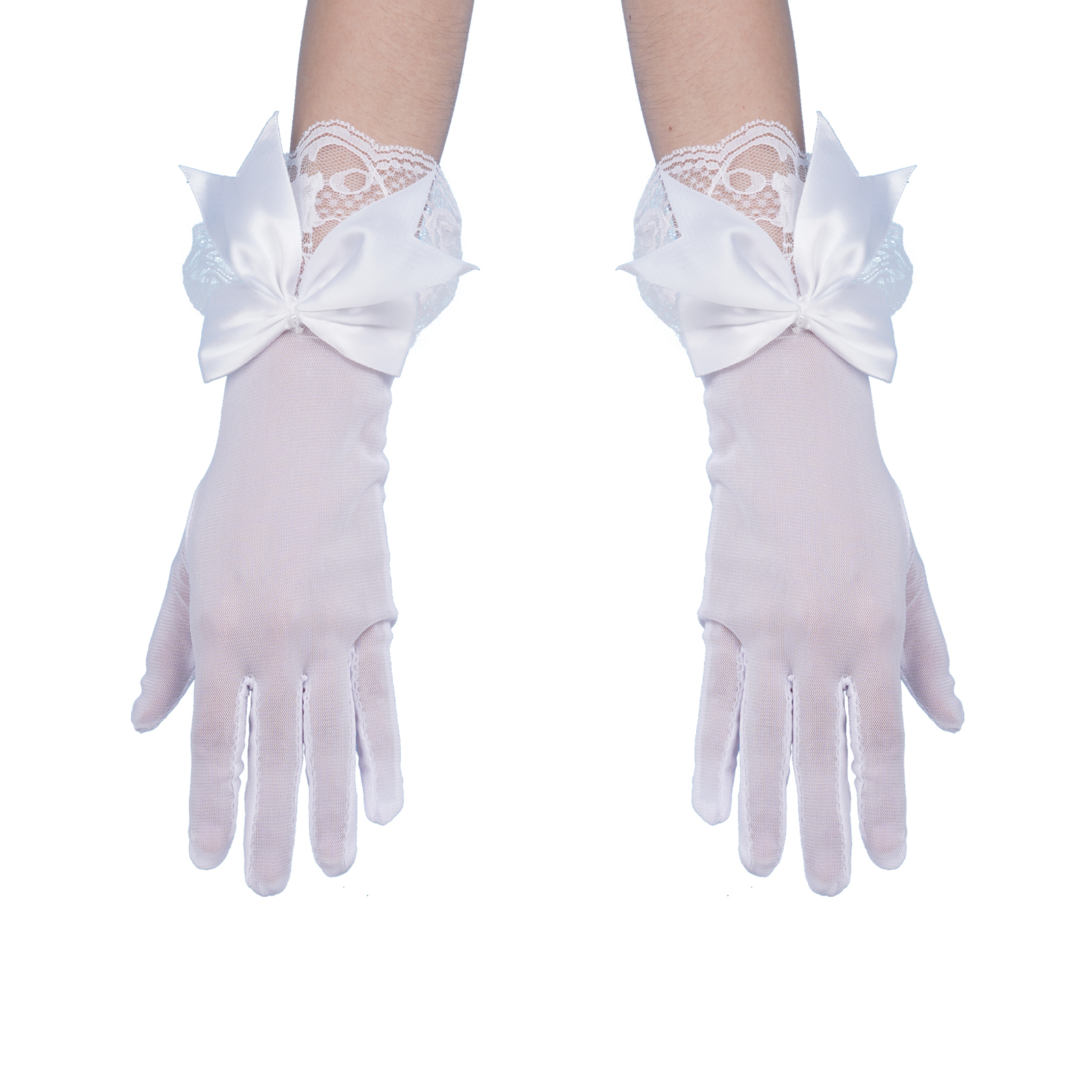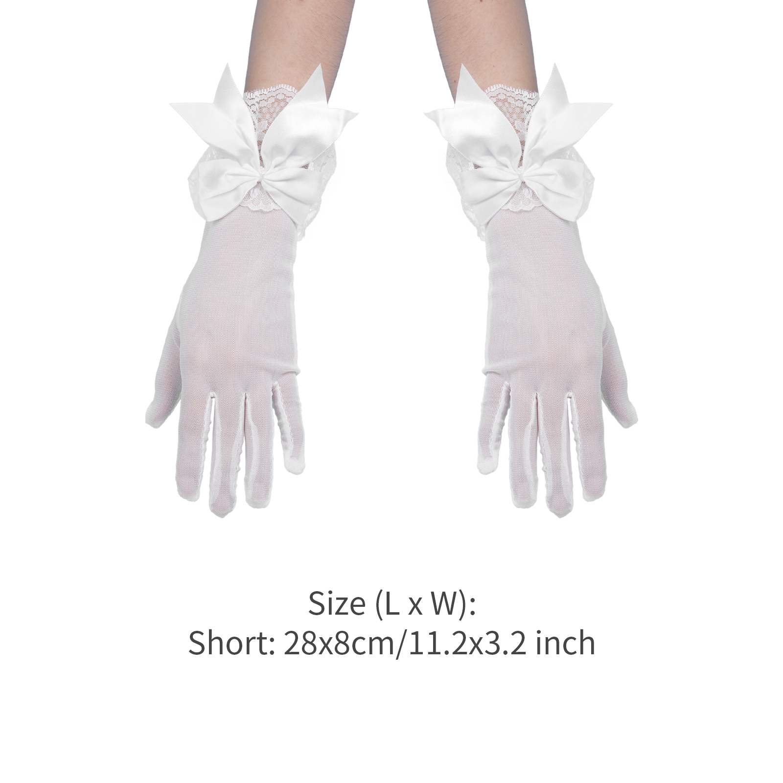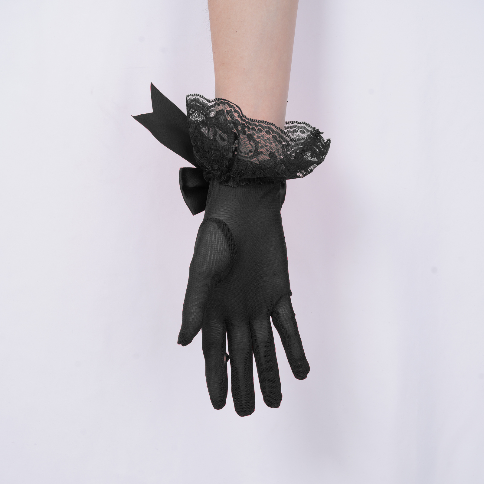 Дизайн с сеткой и цветочным кружевным узором, длина запястья, атласный бант с искусственным жемчугом и оборками на запястье придает женственность и привлекательность.