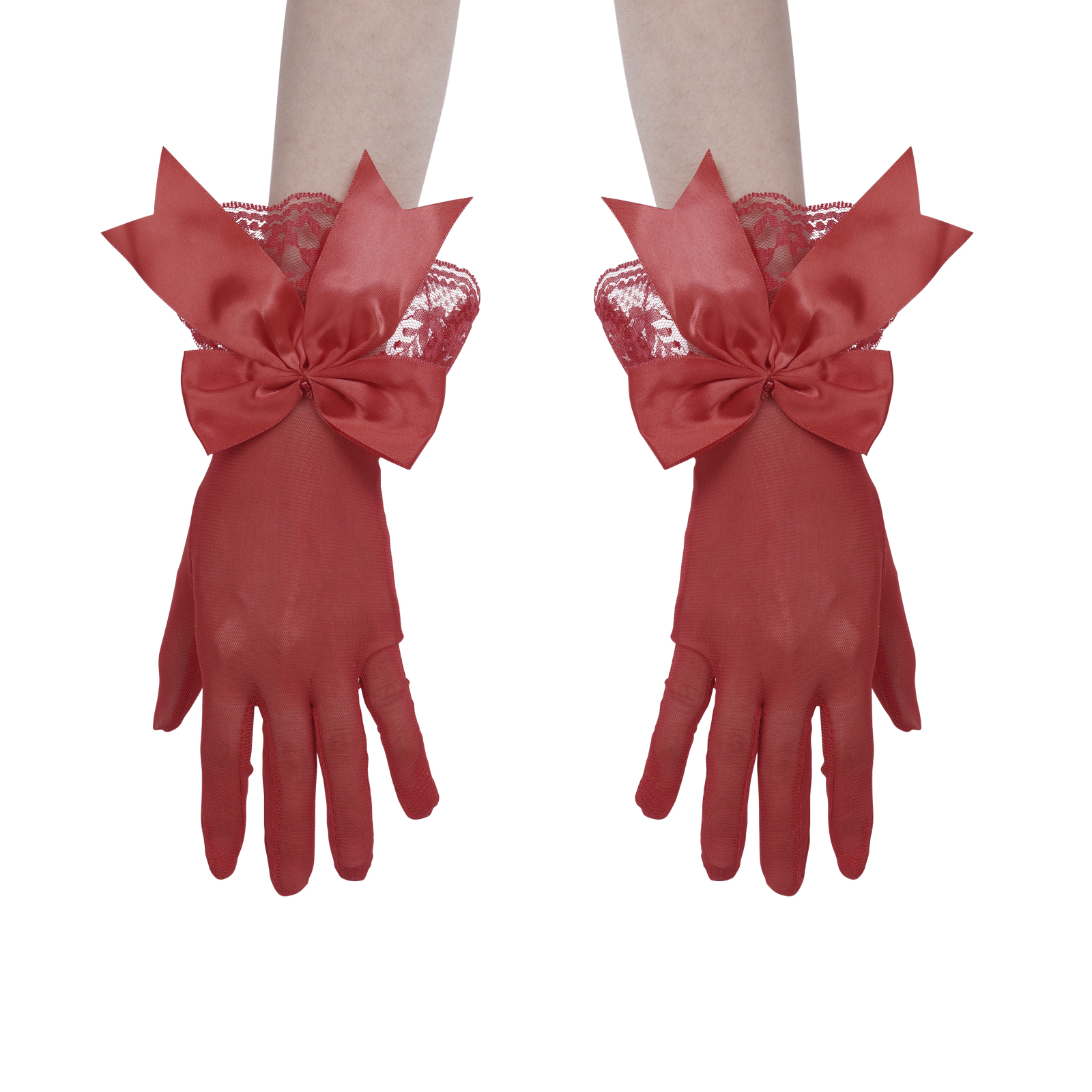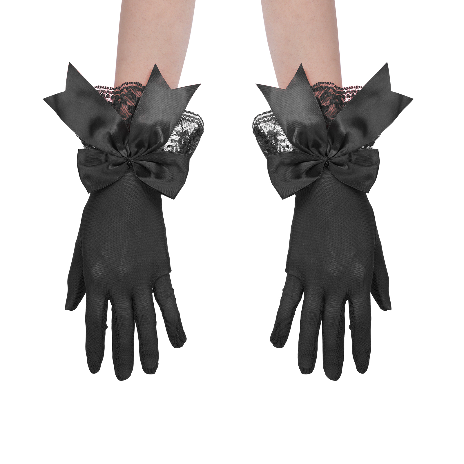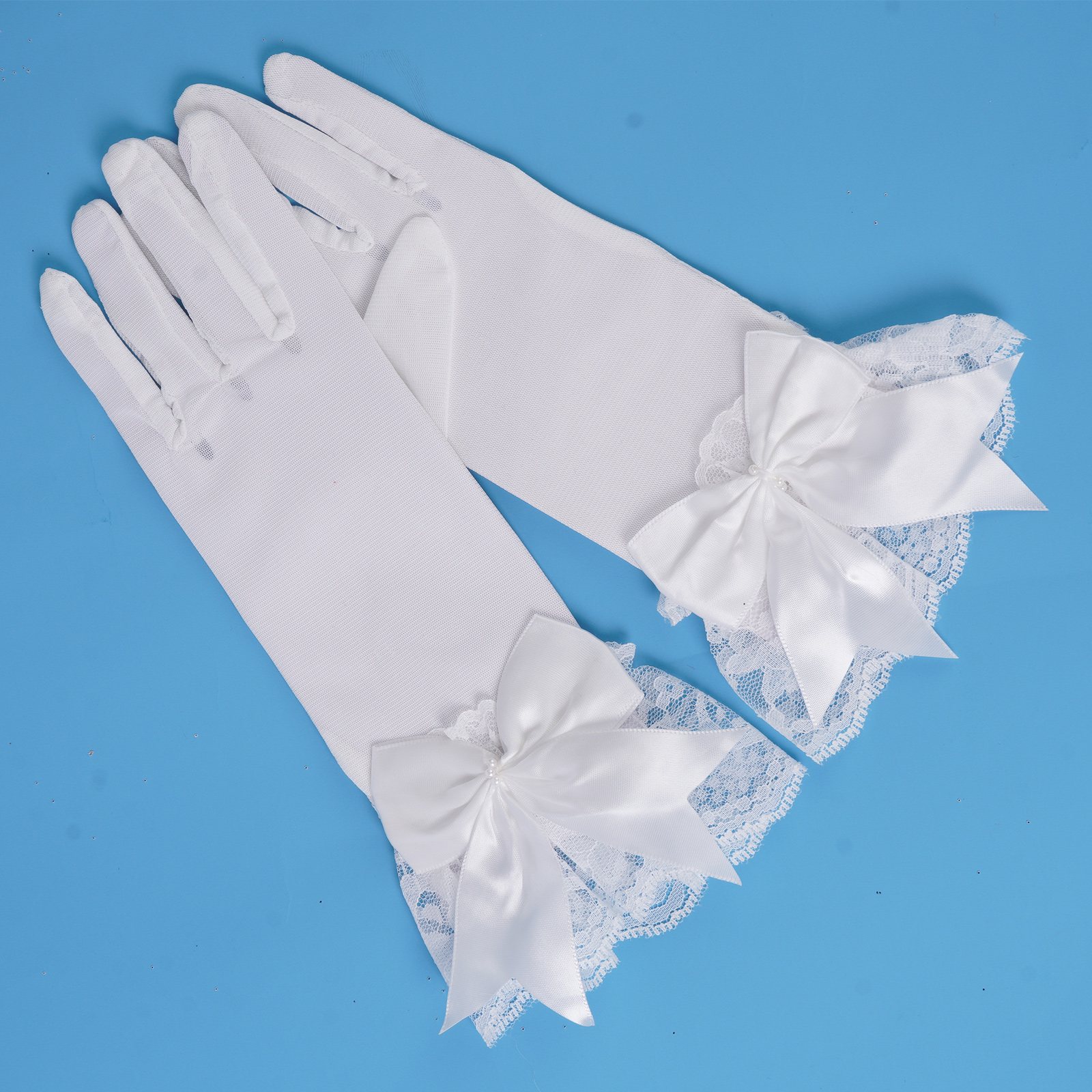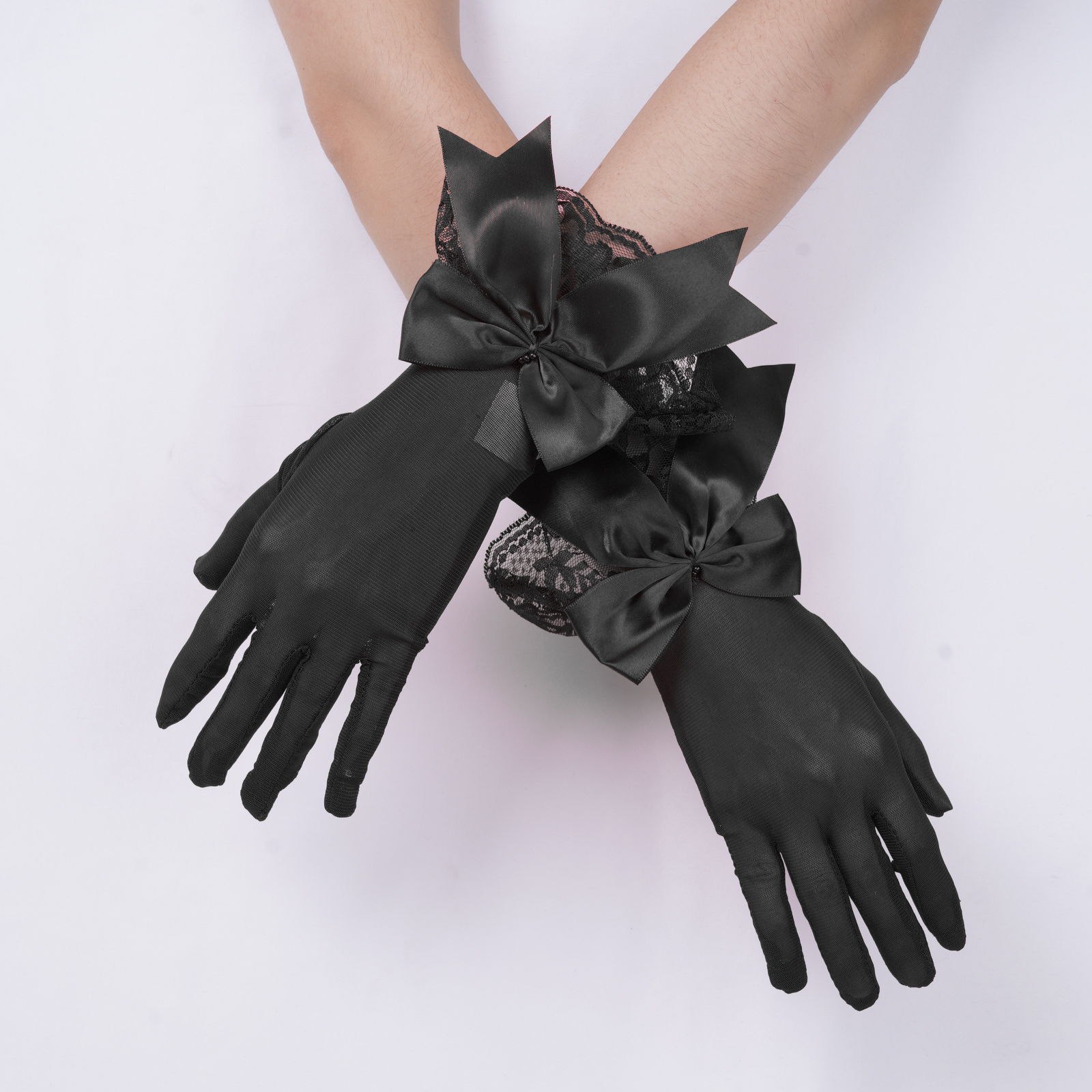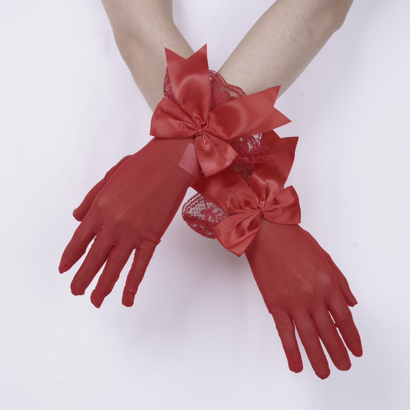 Дизайн с сеткой и цветочным кружевным узором, длина запястья, атласный бант с искусственным жемчугом и оборками на запястье придает женственность и привлекательность.