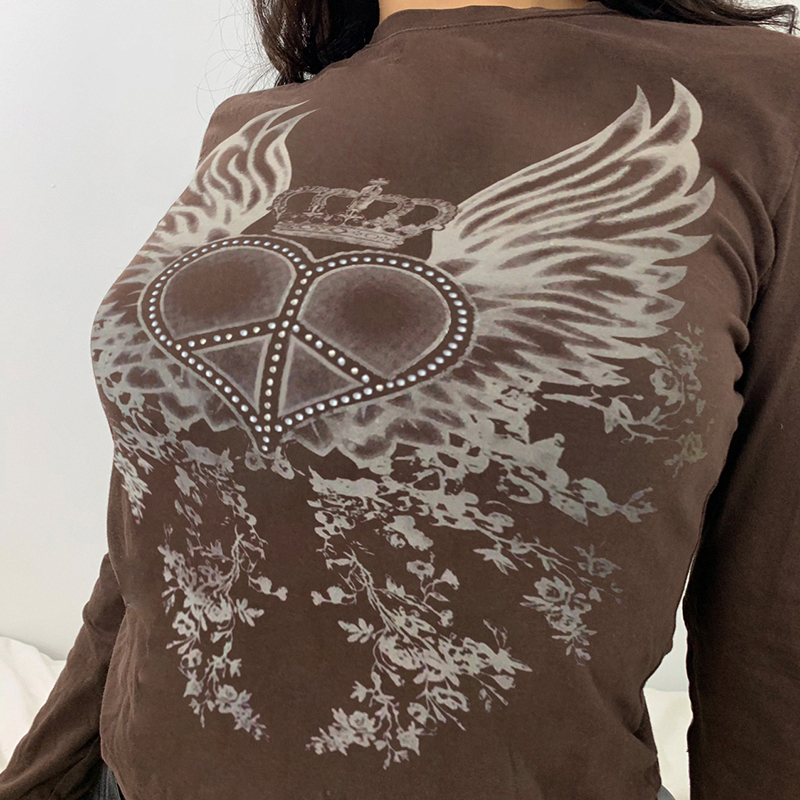 Женская модная футболка с длинными рукавами и принтом в виде сердечек и короны --- эти повседневные топы с круглым вырезом подчеркивают фигуру и подчеркивают фигуру. Наслаждайтесь модной футболкой без ущерба для комфорта, классические цвета лучше всего подойдут вашему вкусу и стилю.