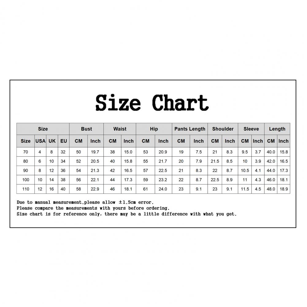 [Наш Размер 80 см] Бюст: 52 см/20,5 дюйма, Талия: 40 см/15,7 дюйма, бедра: 55 см/21,7 дюйма, длина брюк: 20 см/7,9 дюйма, плечо: 21,5 см/8,5 дюйма, рукав: 10 см/3,9 дюйма, длина: 42 см/16,5 дюйма (прибл.)