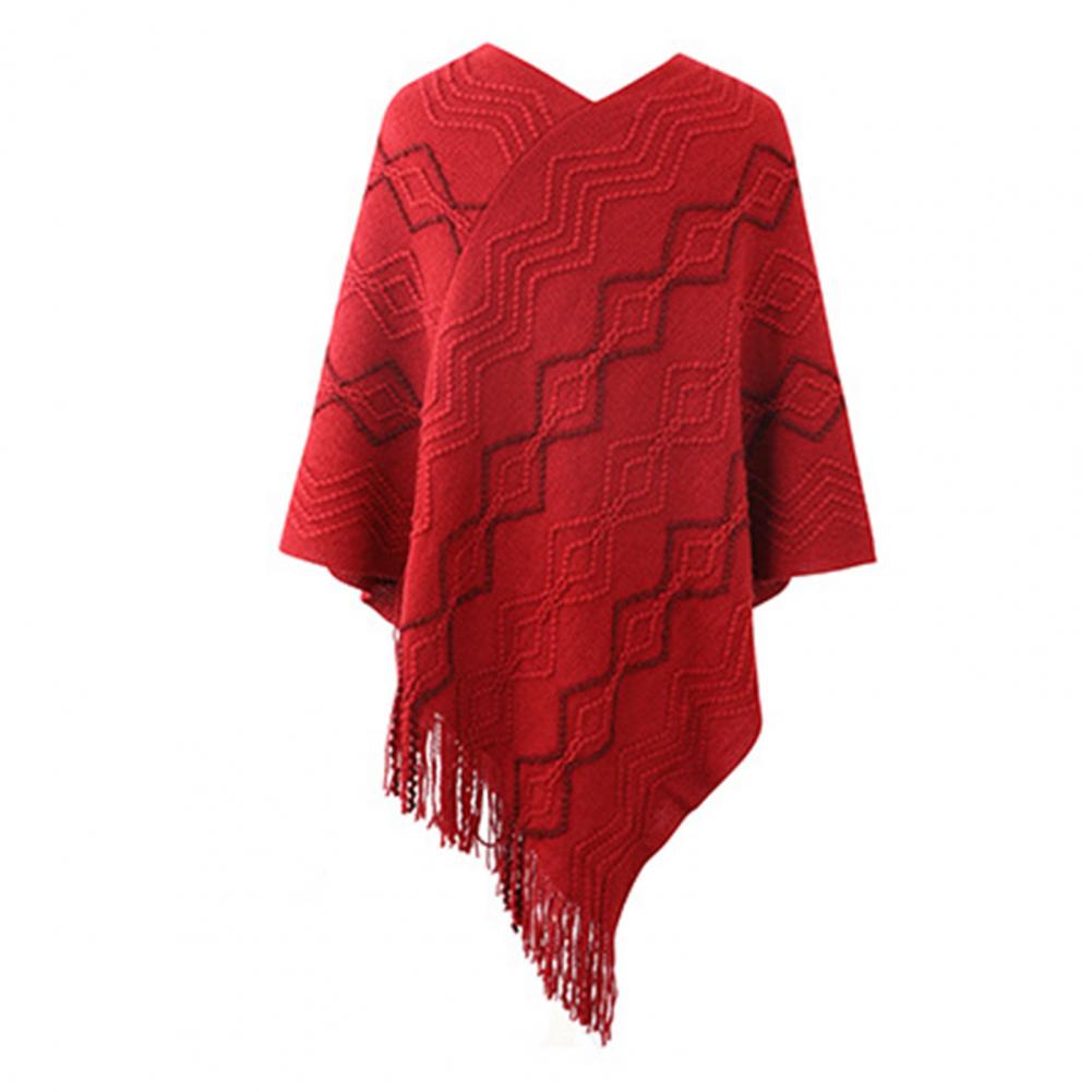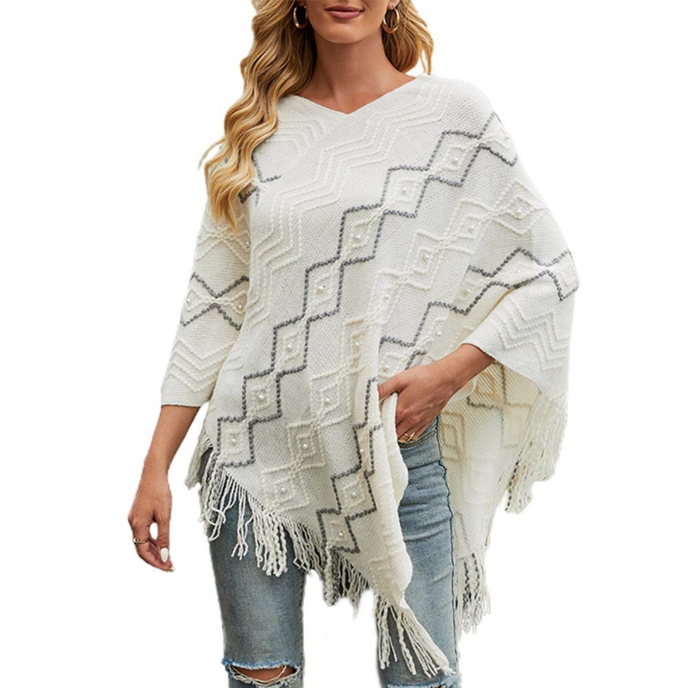 2021 осенне-зимние женские свитера пончо вязаные плащи свитер с v-образным вырезом Асимметричный Подол кисточки пальто полосатый вязаный пуловер