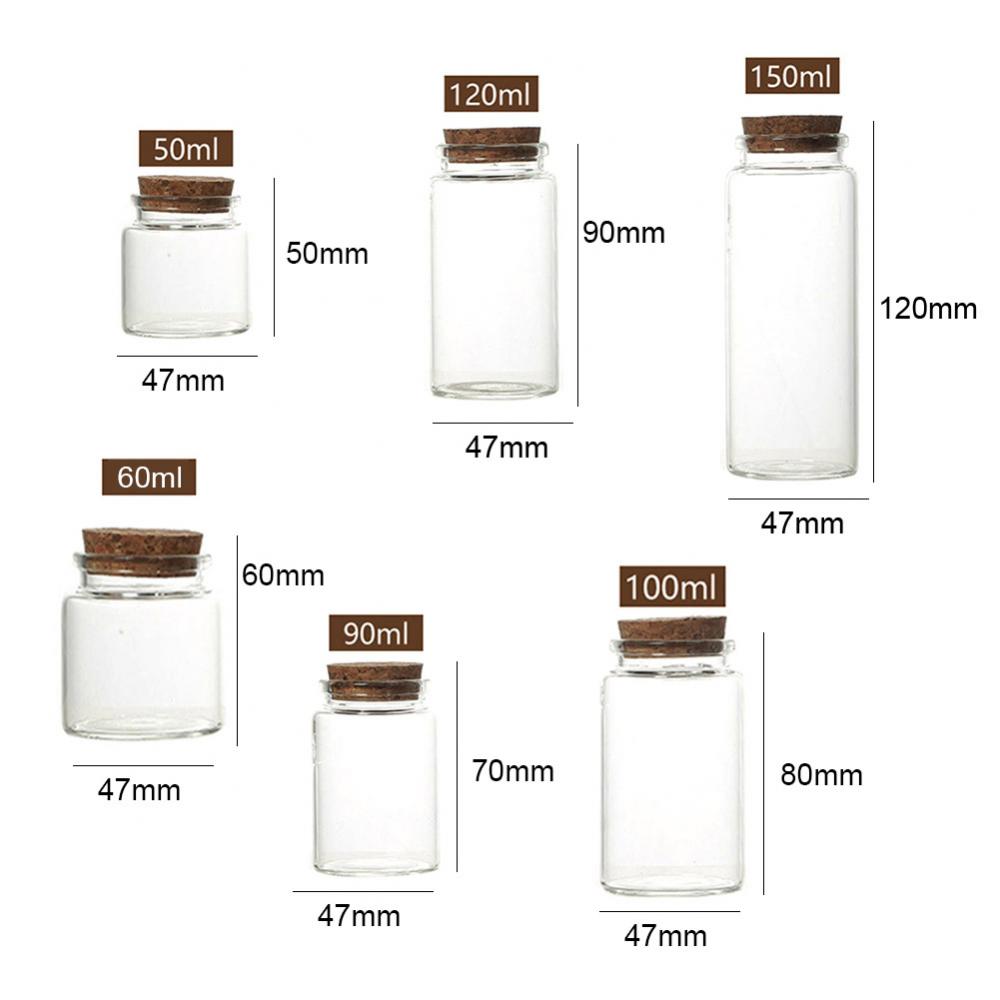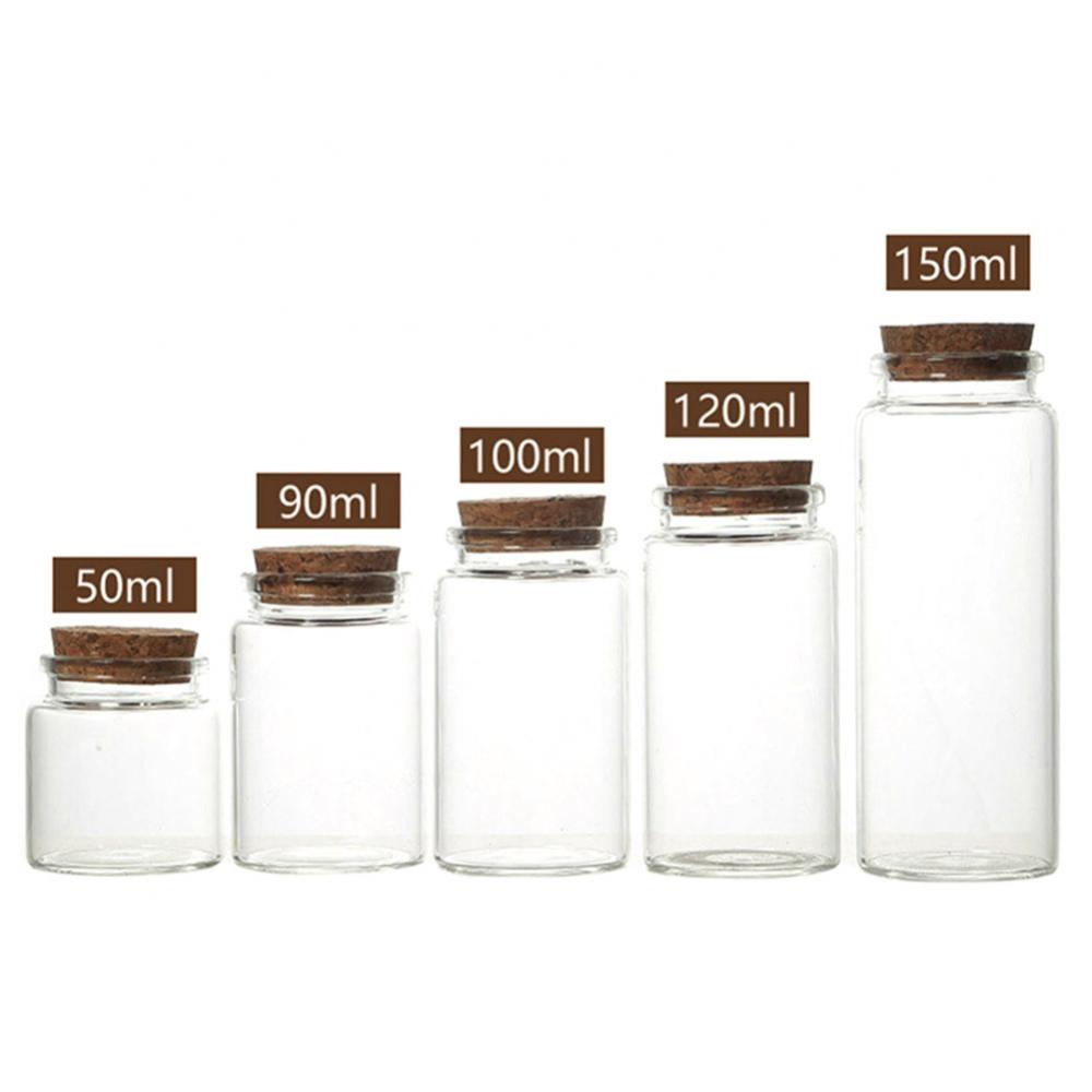 3 шт. 50 мл/60 мл/90 мл/100 мл/120 мл/150 мл маленькая стеклянная пробирка с пробковой пробкой бутылки баночки бутылочки