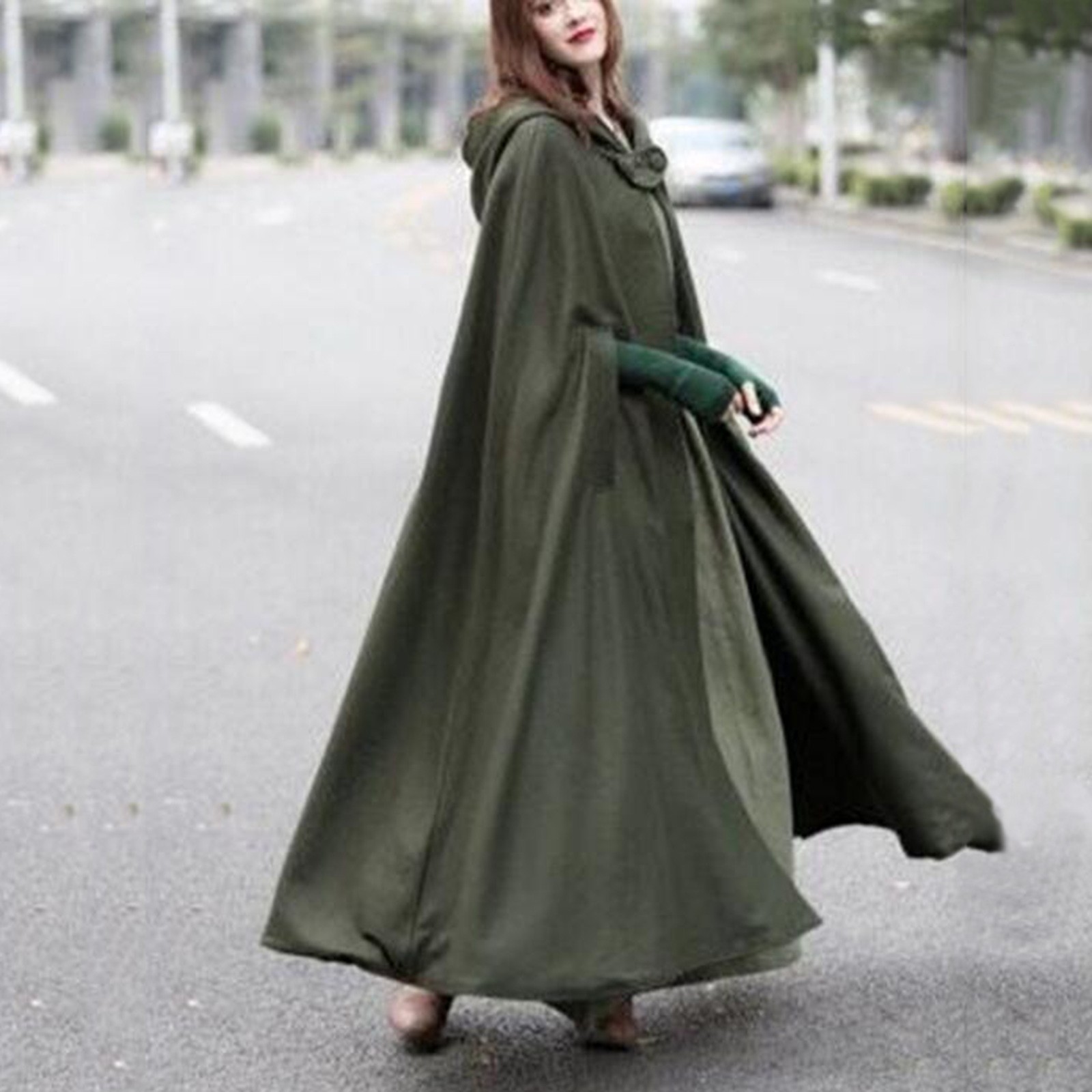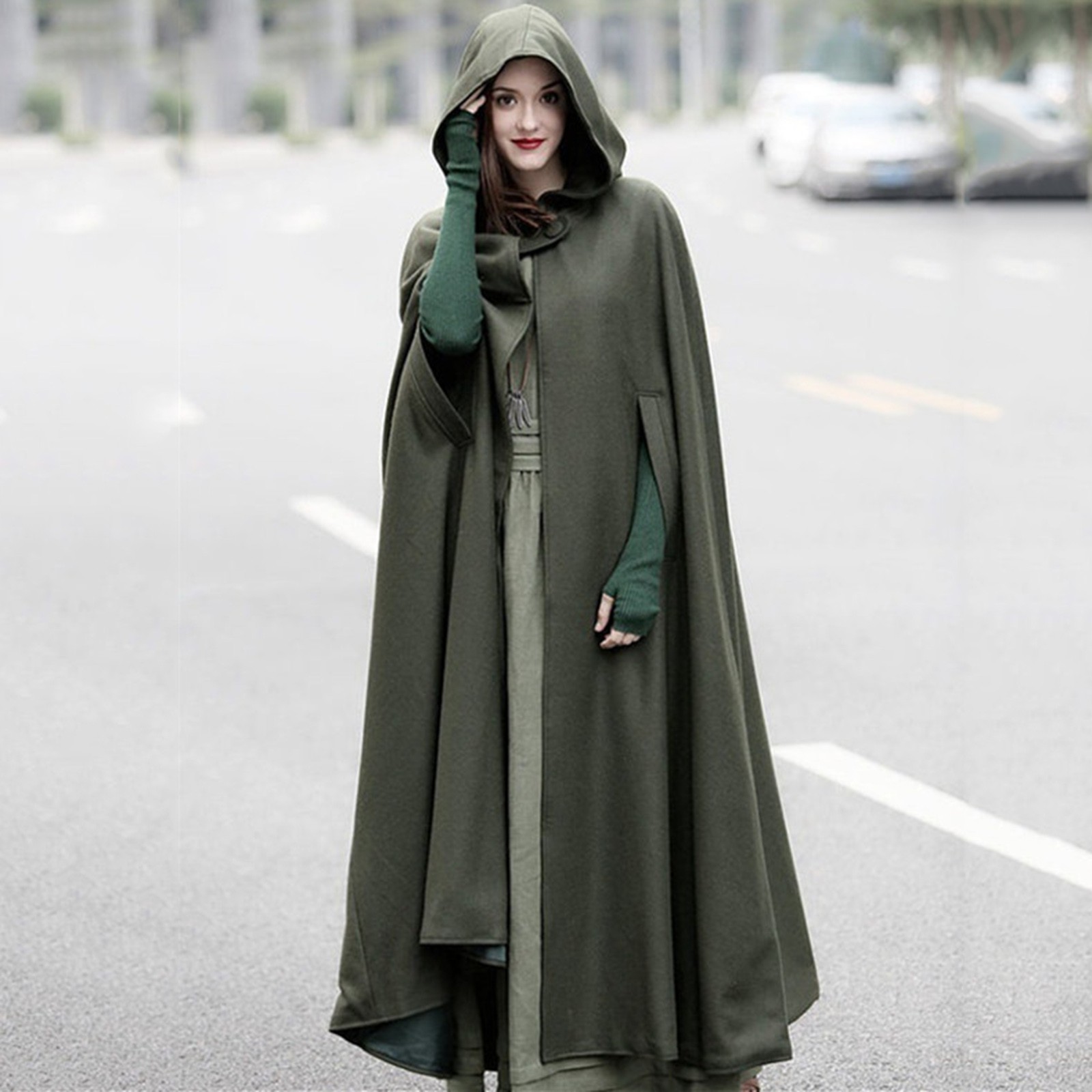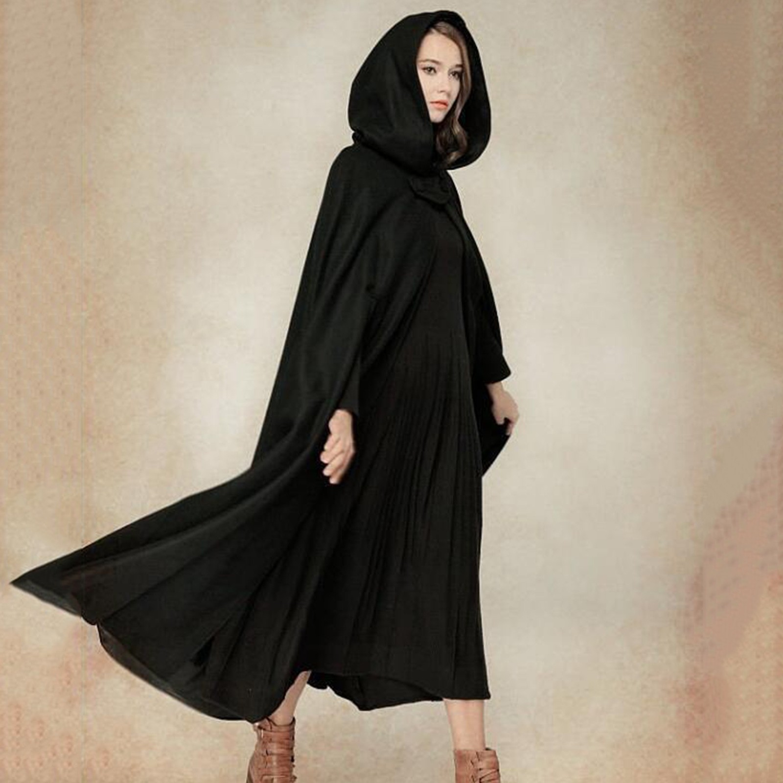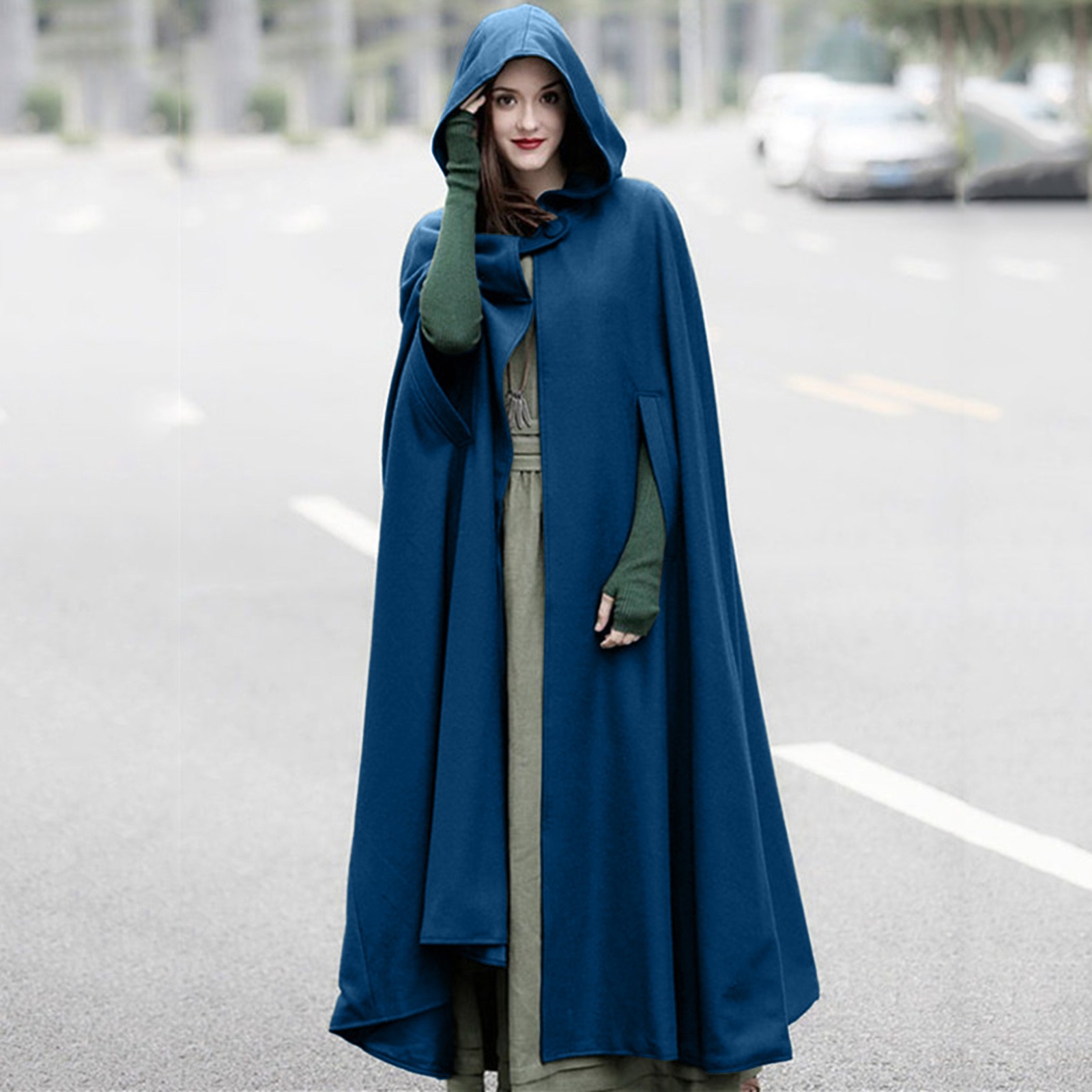 Длинный женский плащ с капюшоном, зимнее повседневное винтажное пальто для девочек, Модный женский плащ на пуговицах, шерстяное пальто
