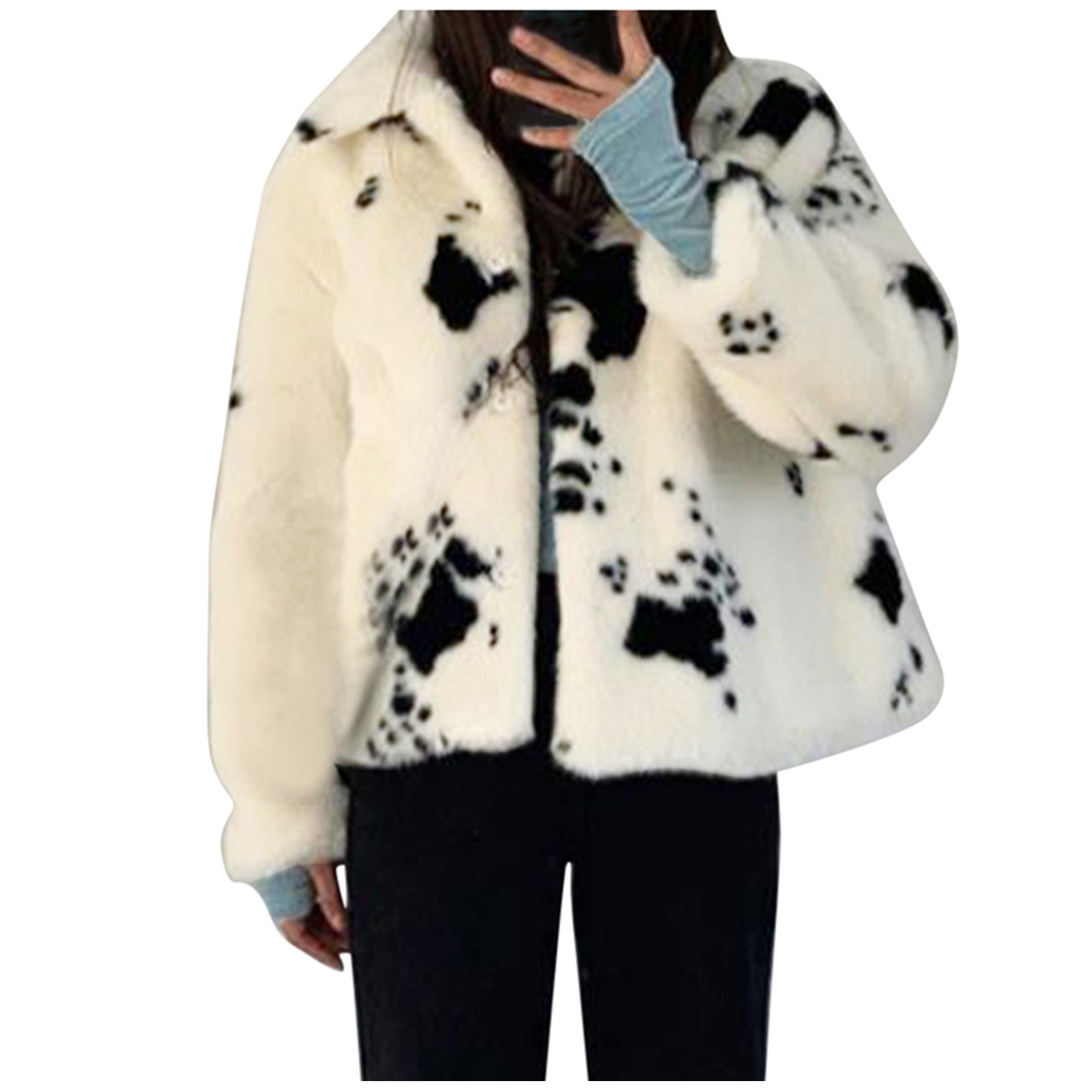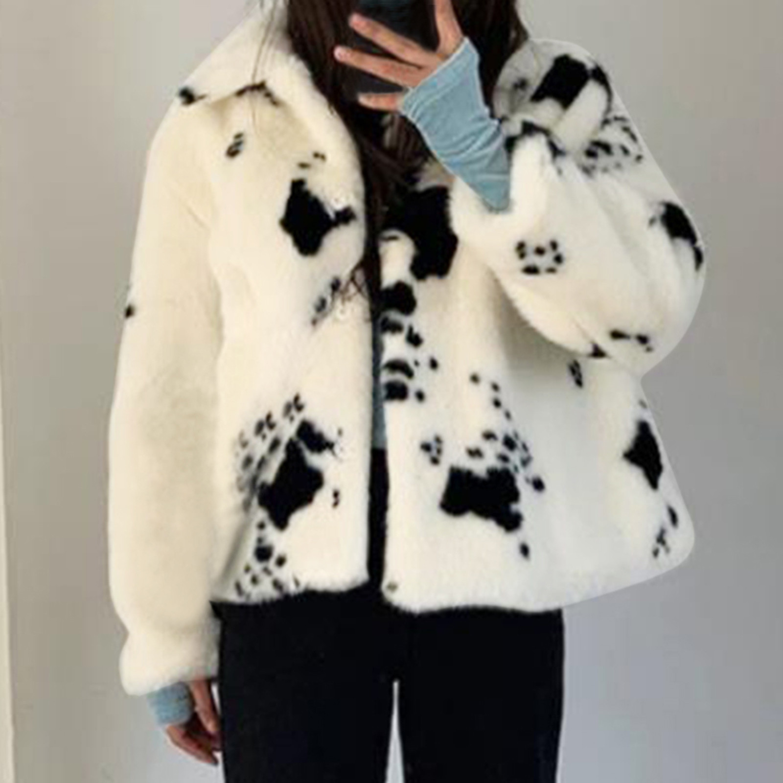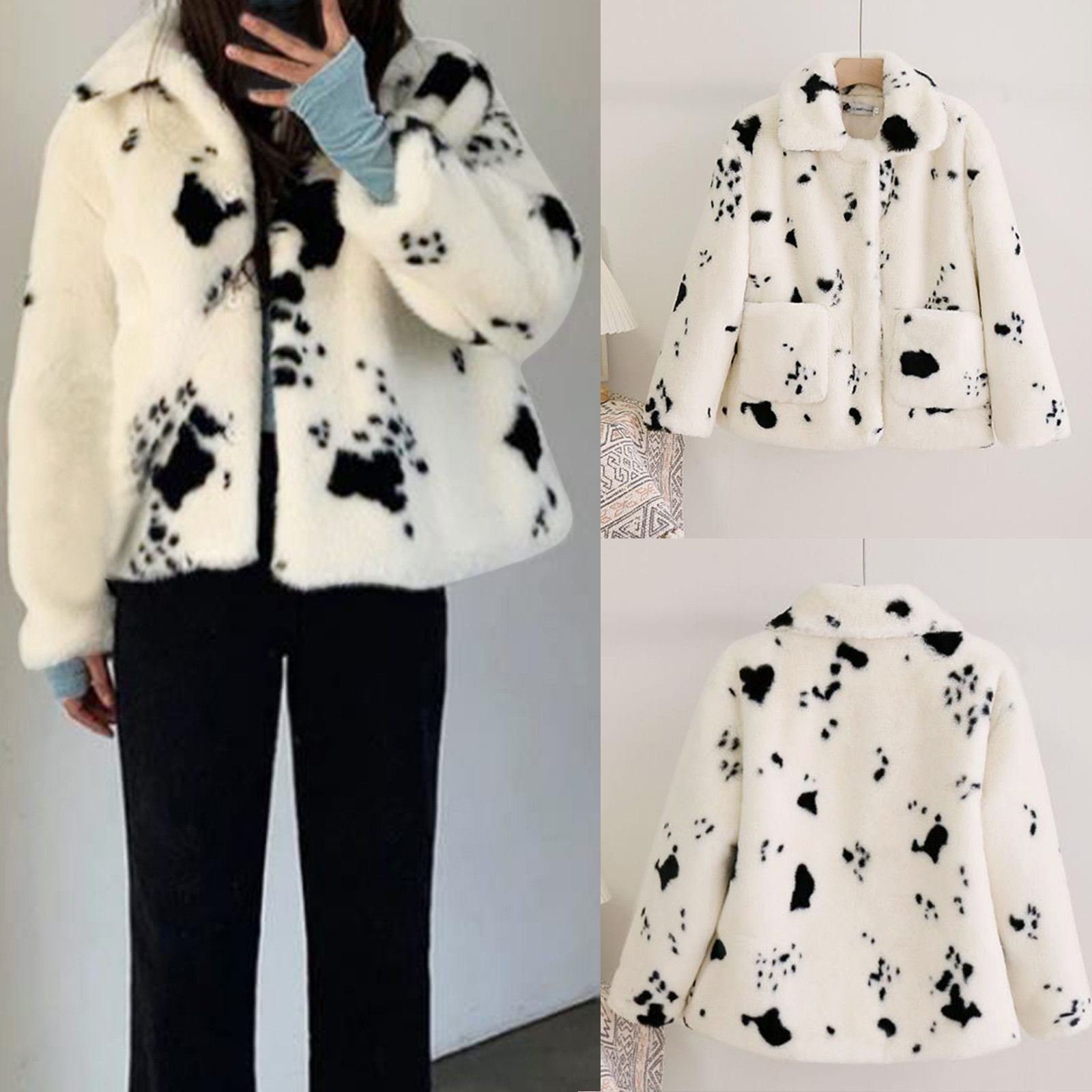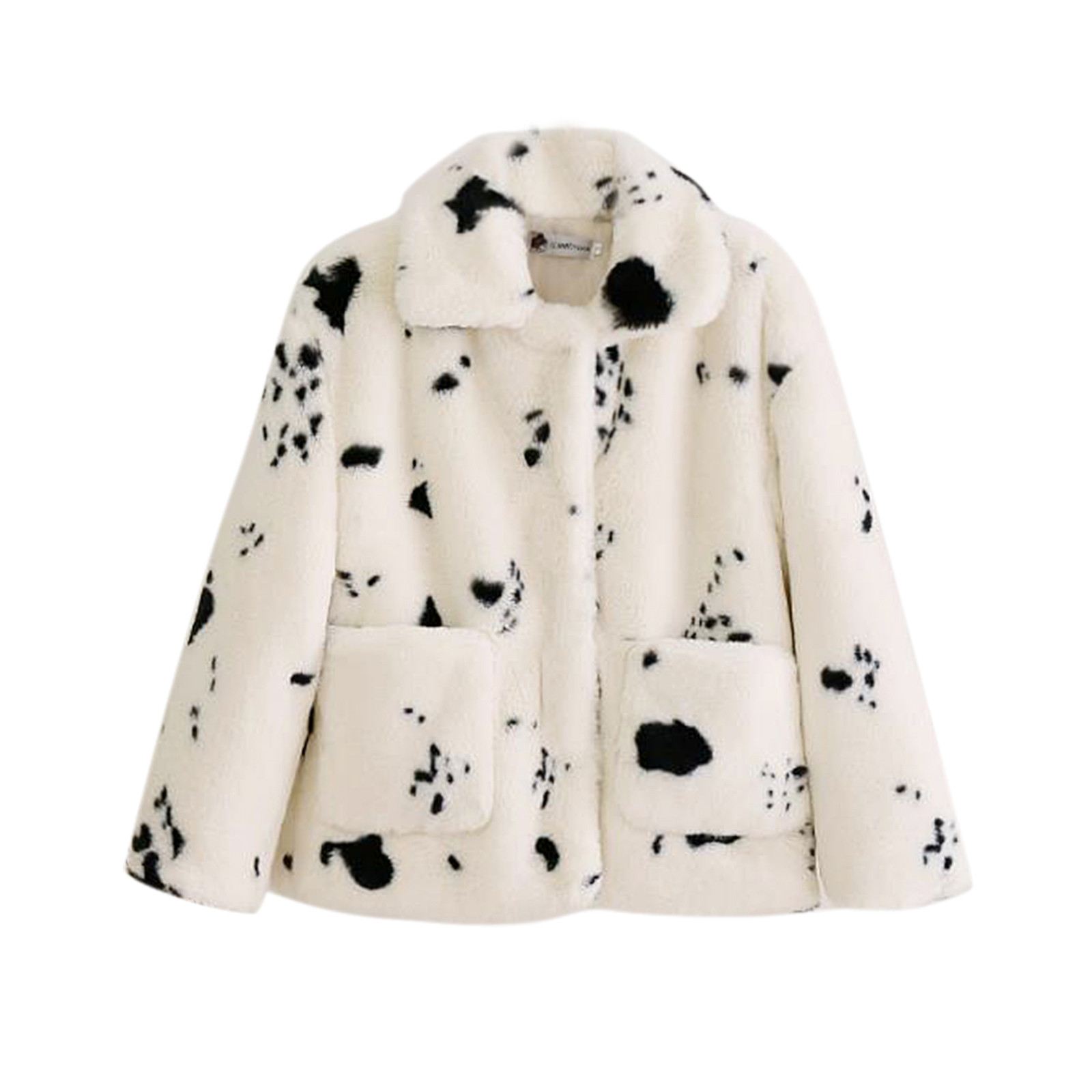 Женская Повседневная короткая плюшевая куртка с отворотом и карманами на пуговицах