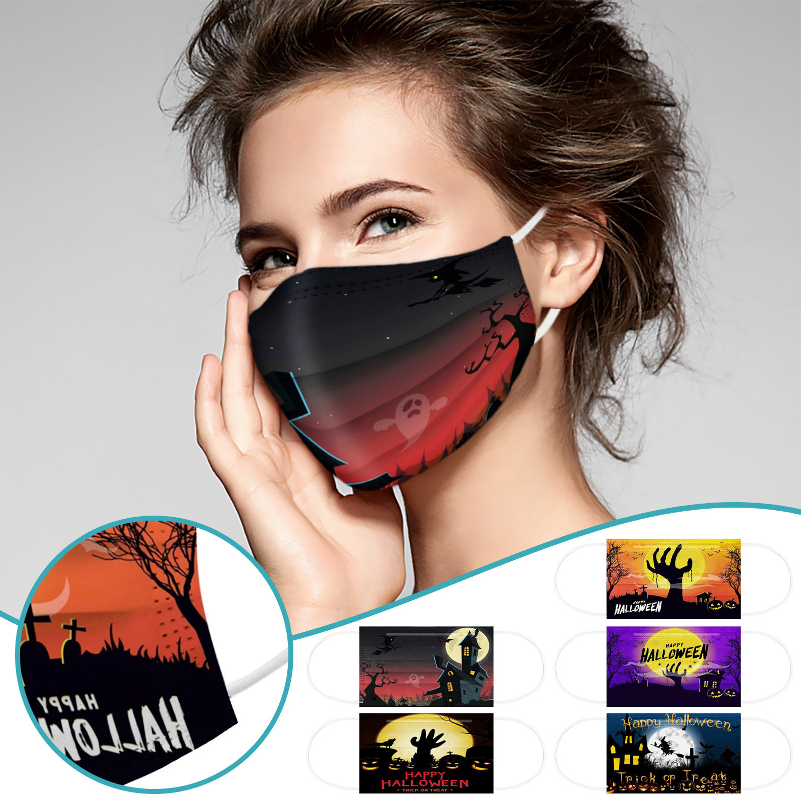 Disposable children's mask Halloween color printing three-layer protective mask