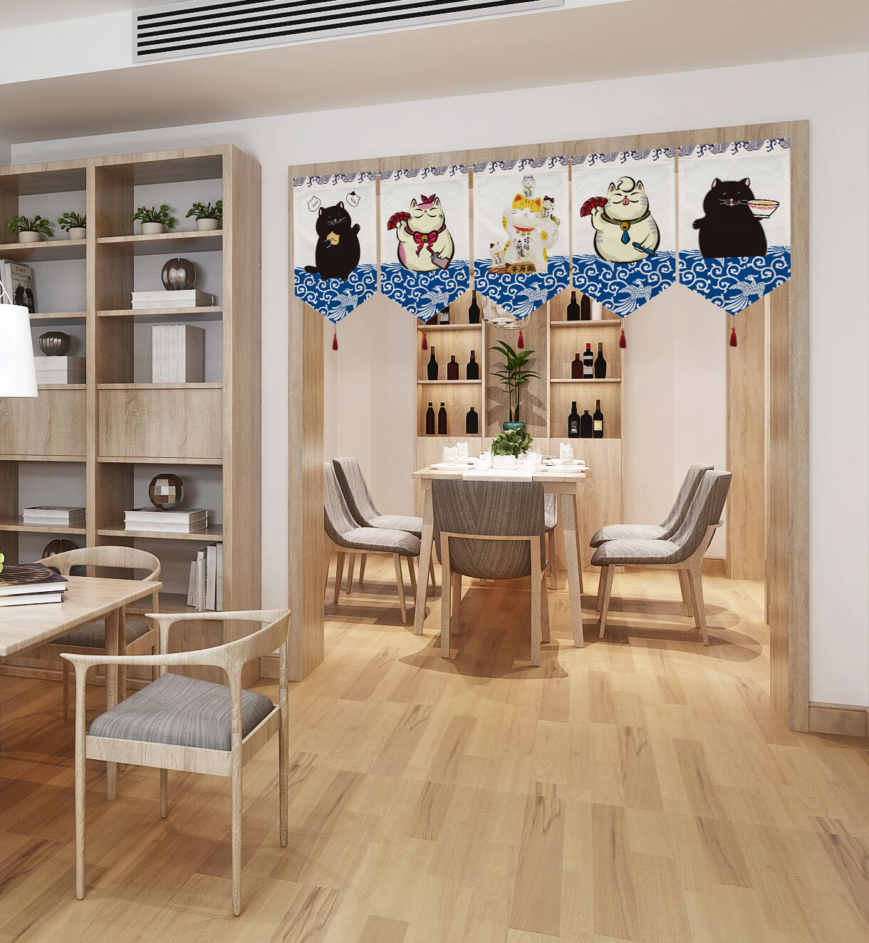DescriptionКухонный занавес в японском стиле узор «Кот-счастливчик» небольшая занавеска для кухни Современная завеса для гостиной занавес для двери