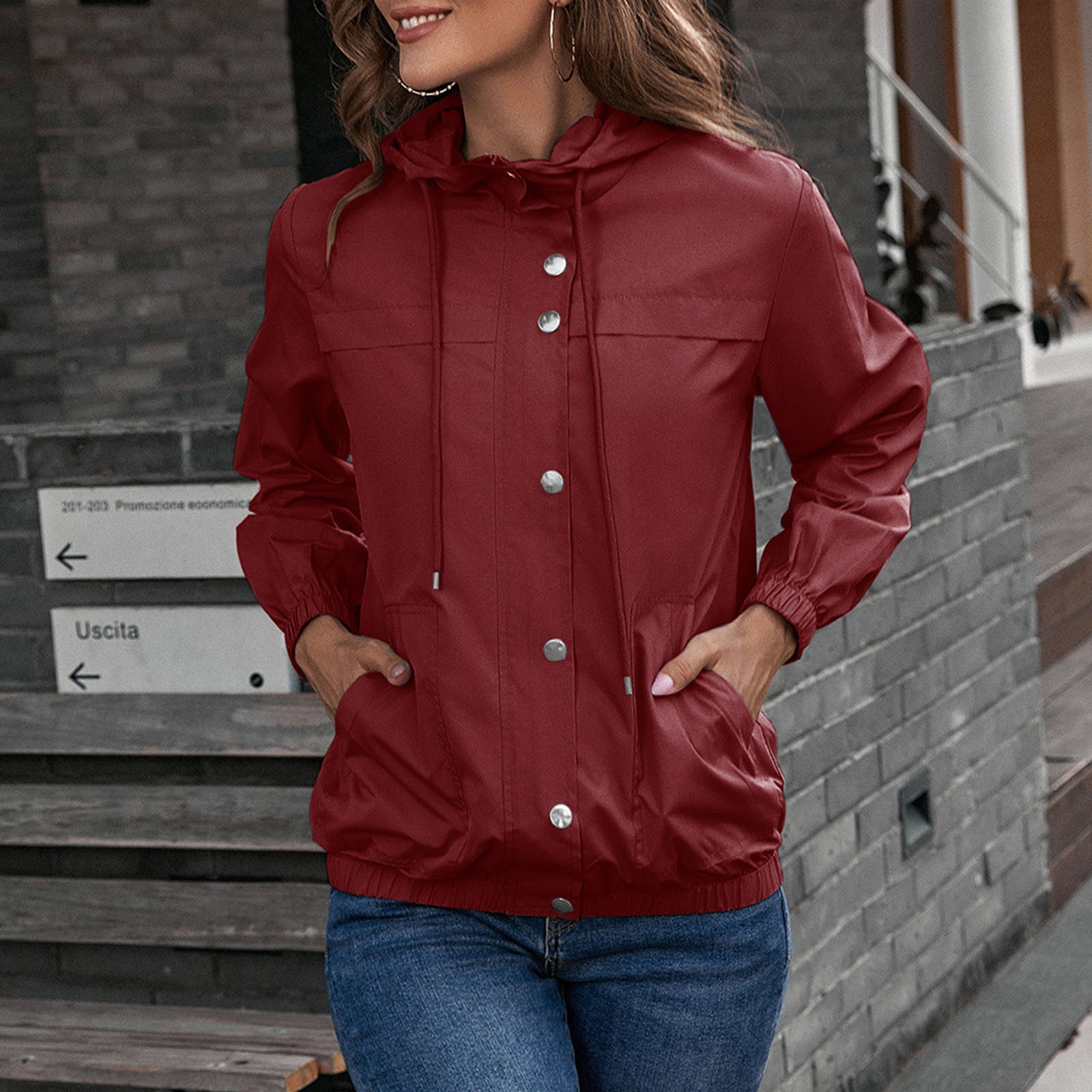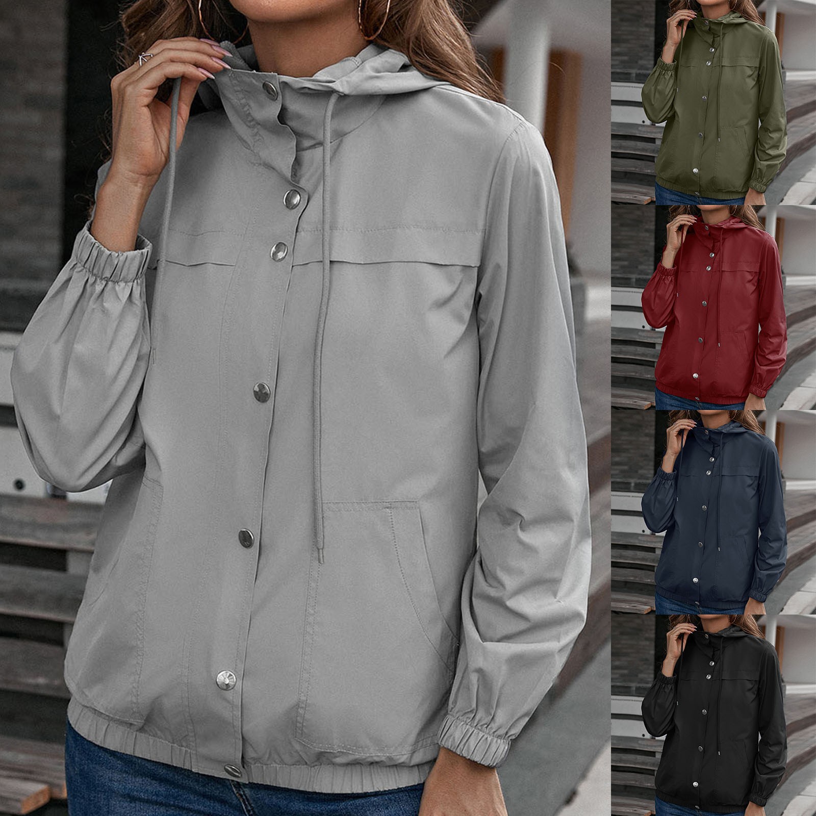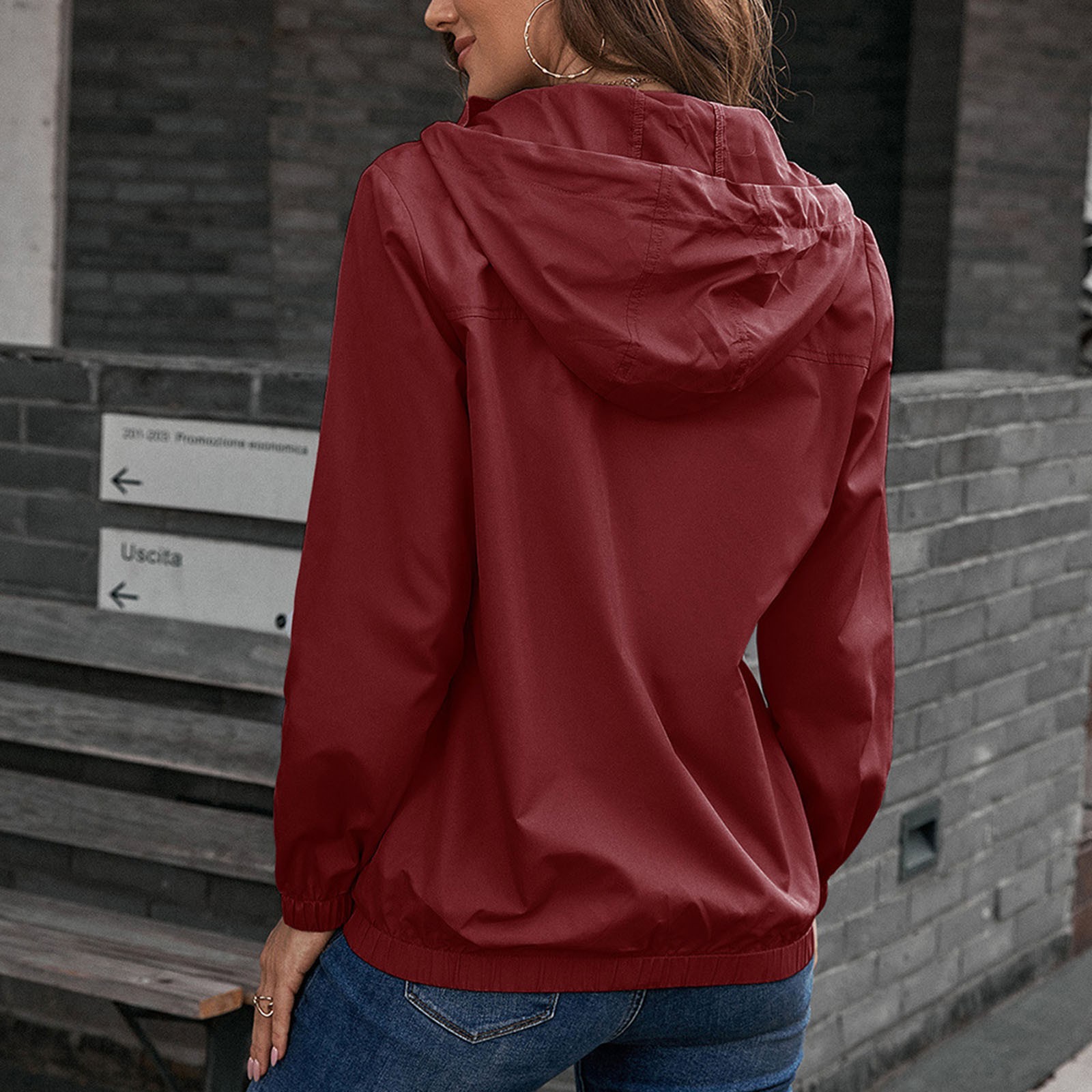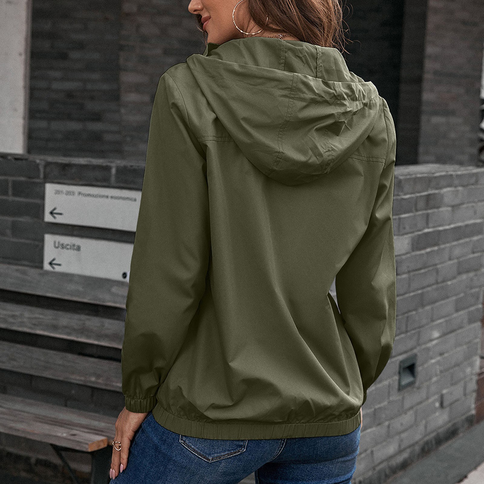 Женский легкий водонепроницаемый плащ-ветровка с капюшоном