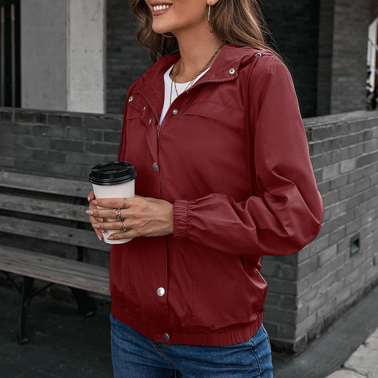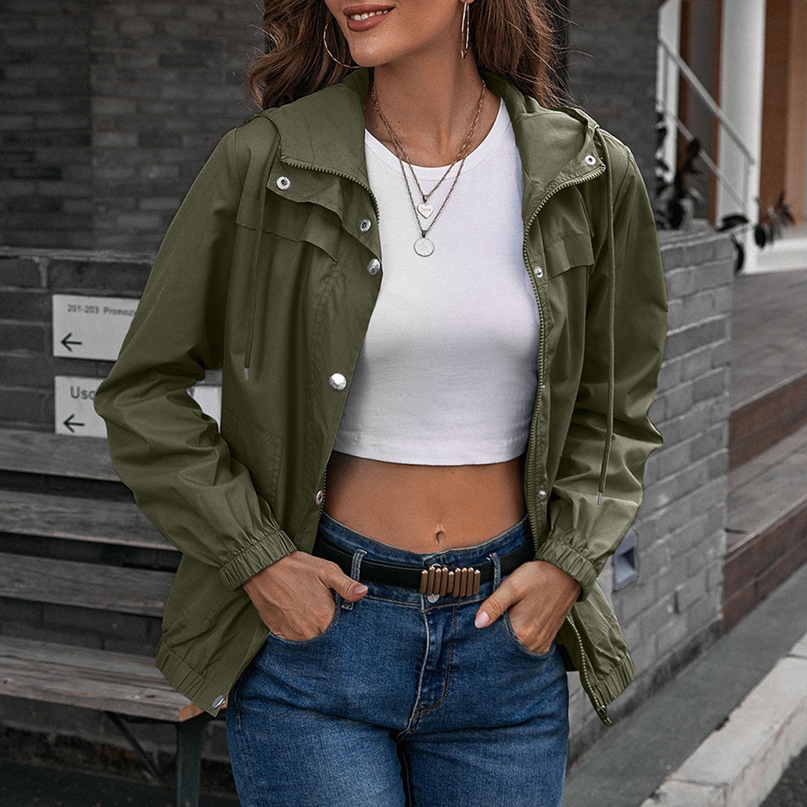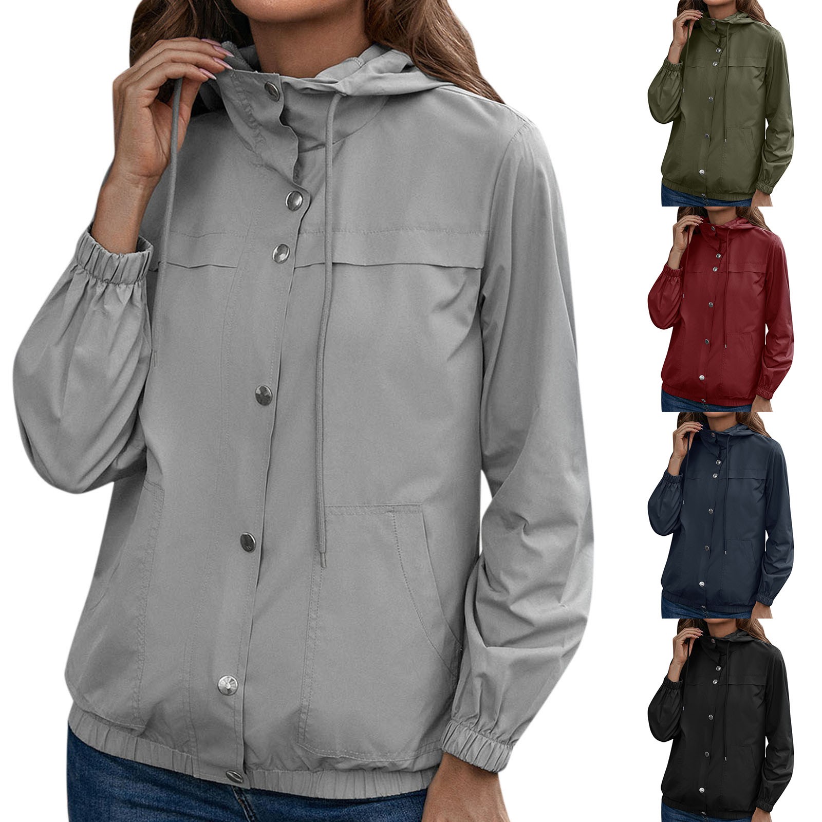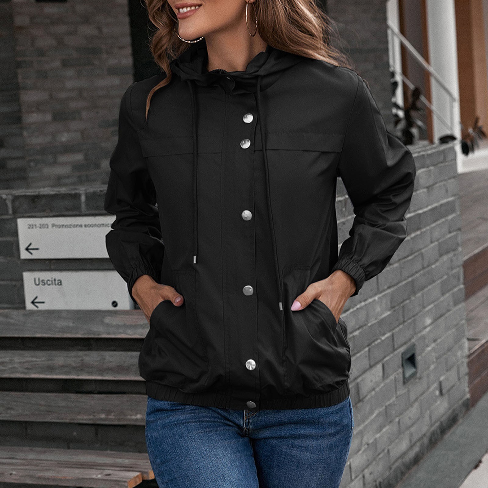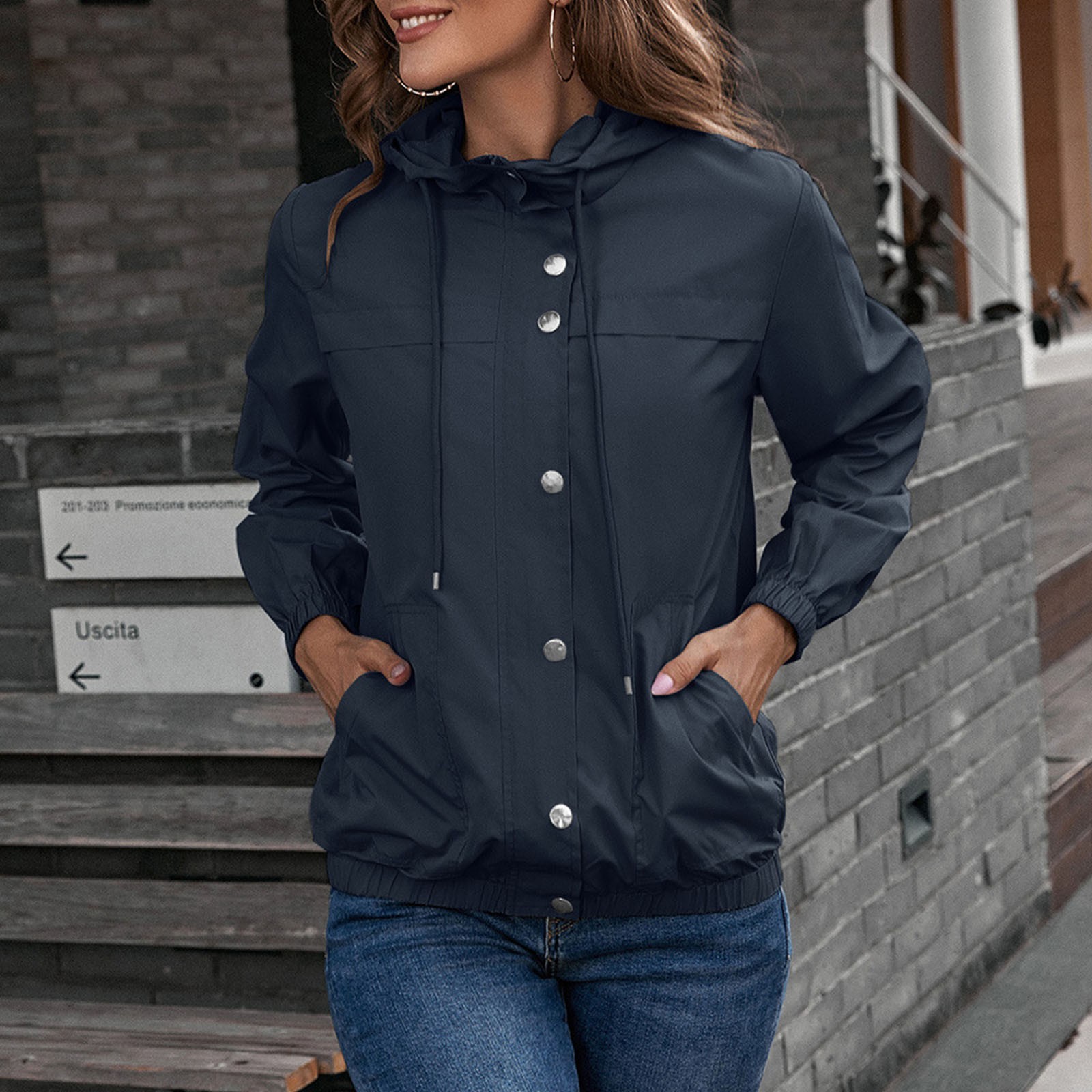 Женский легкий водонепроницаемый плащ-ветровка с капюшоном