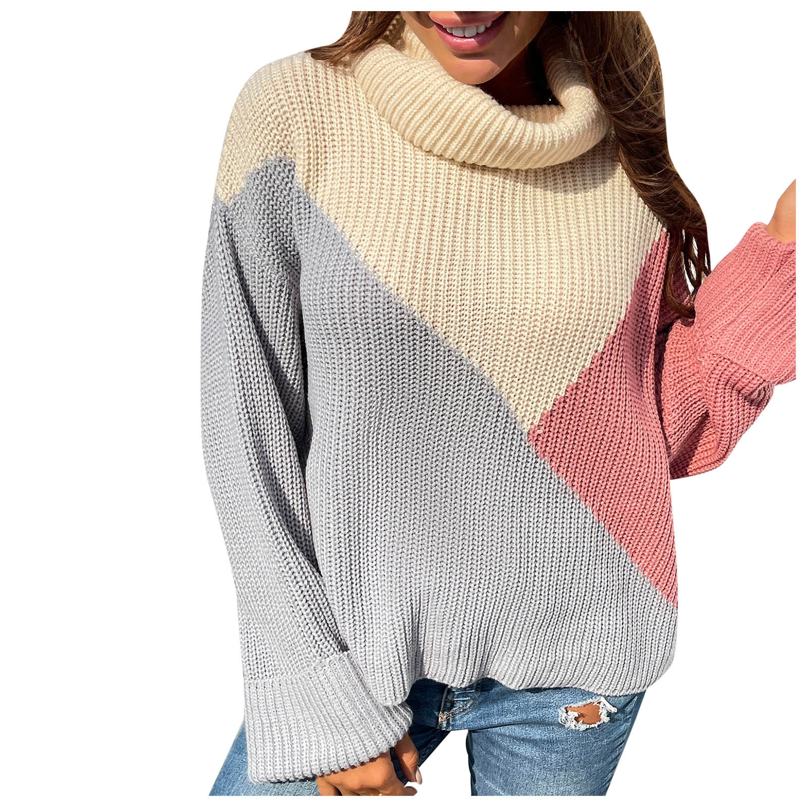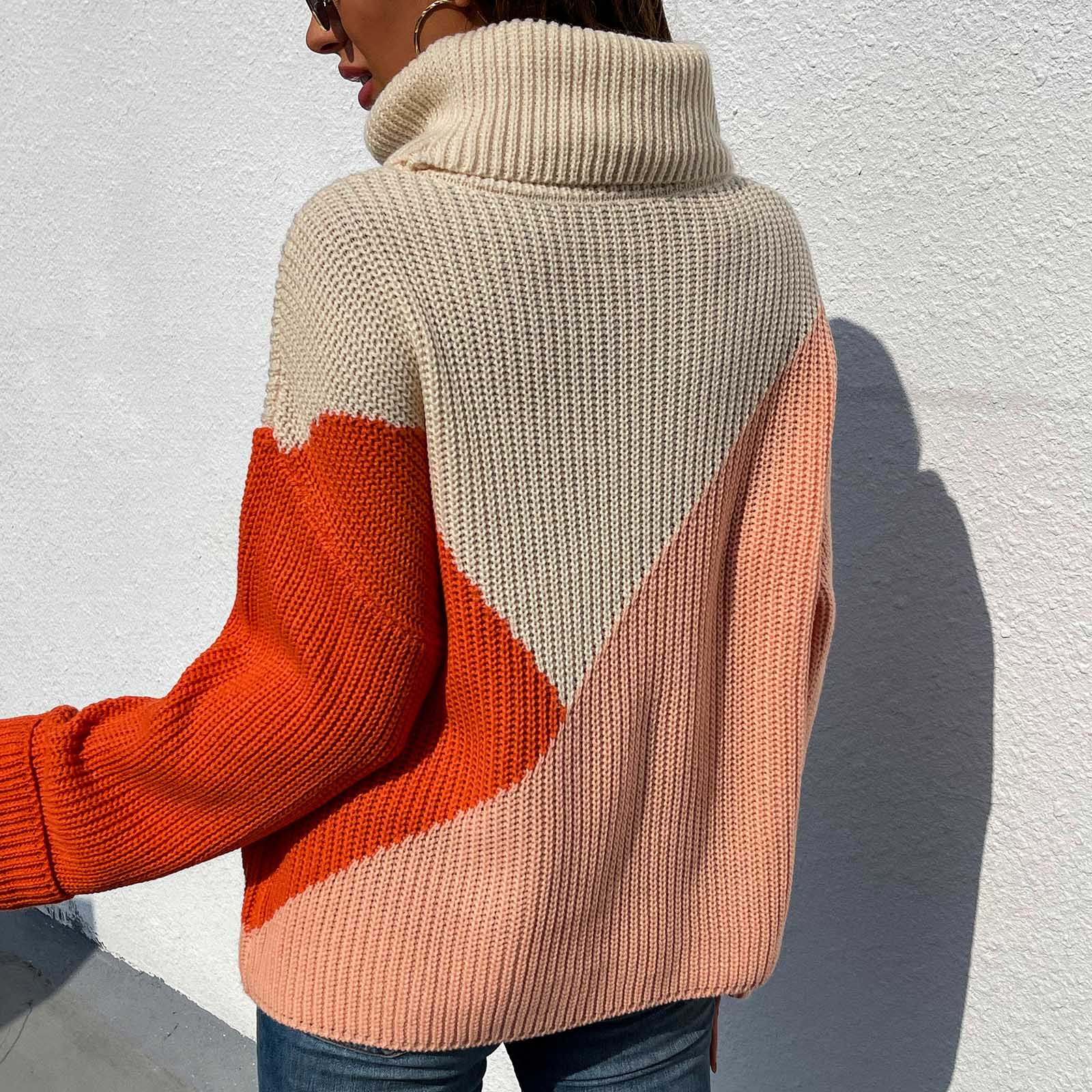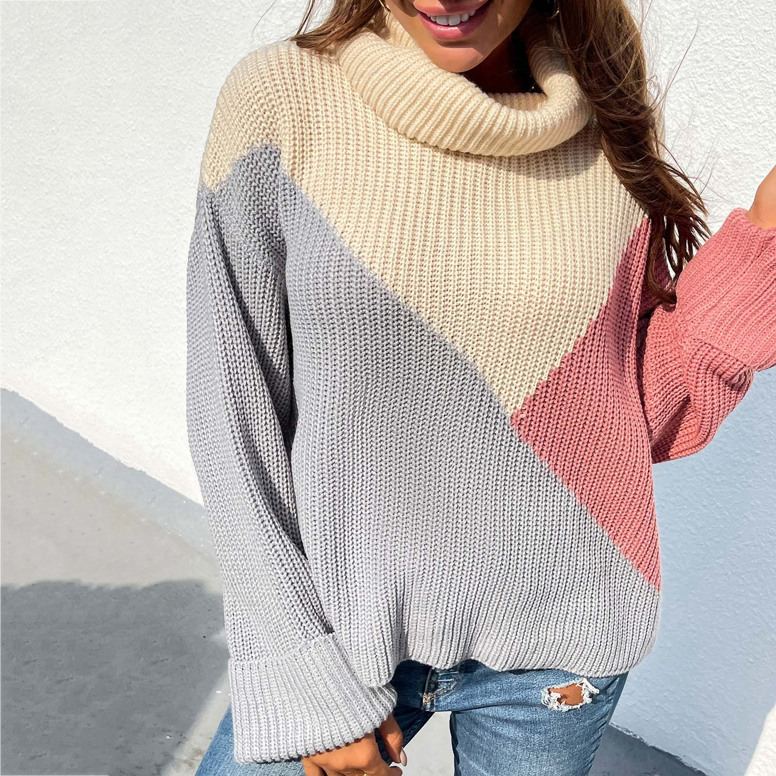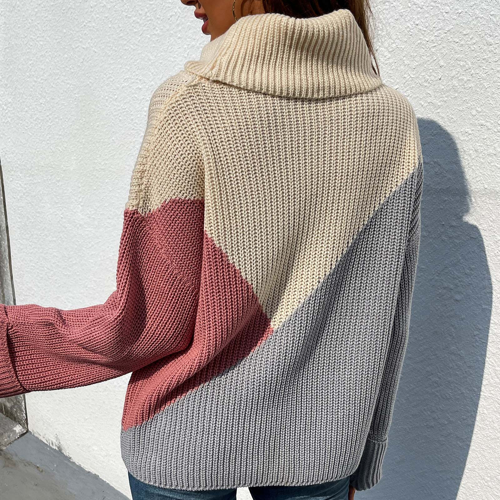 Casual Comfortable Loose Long-sleeved Stitching Ladies Sweater