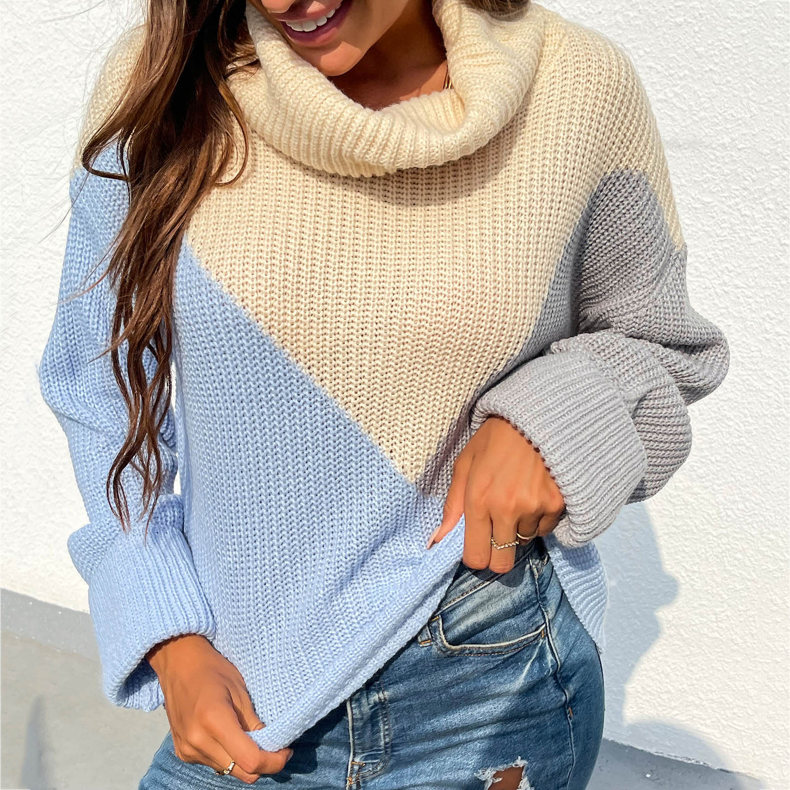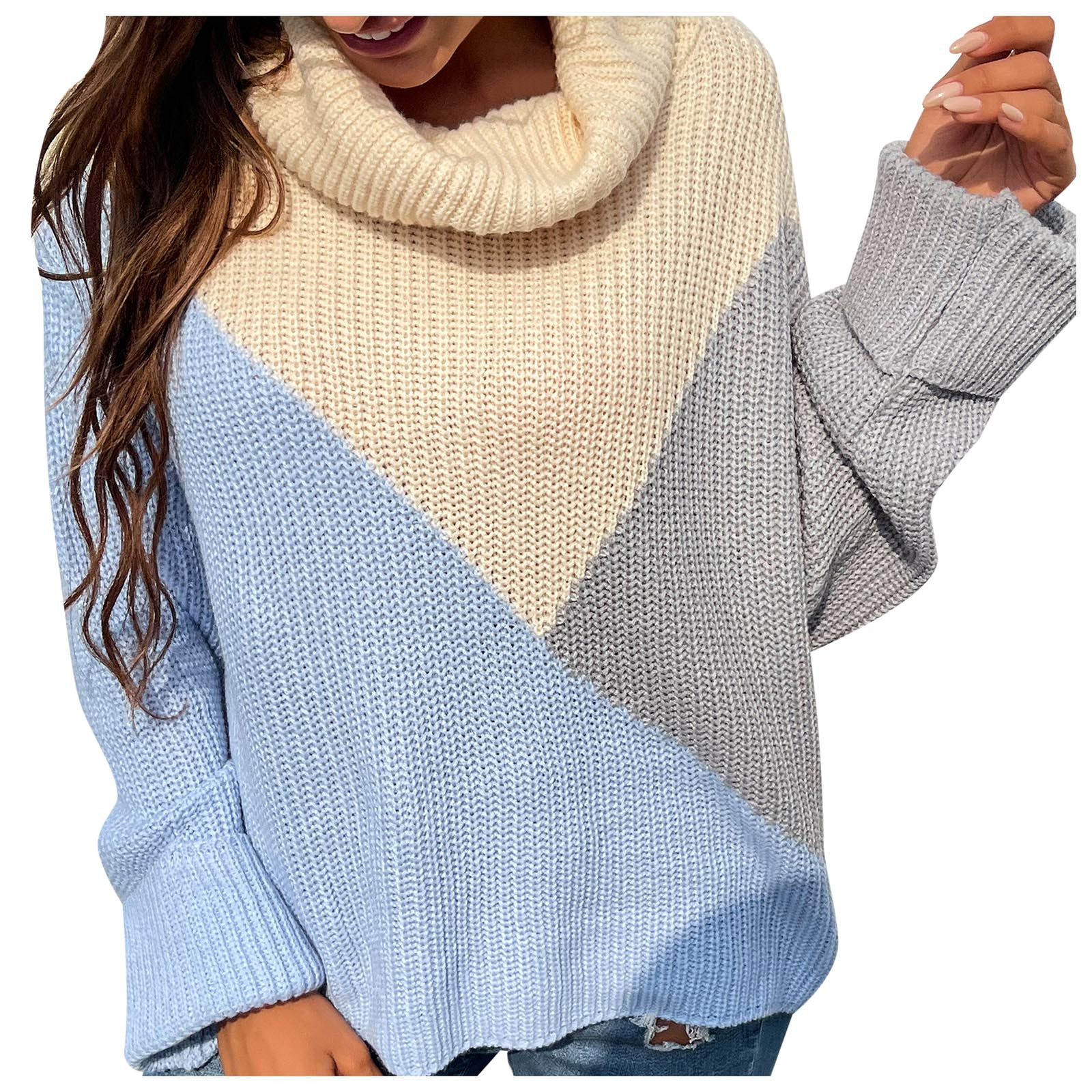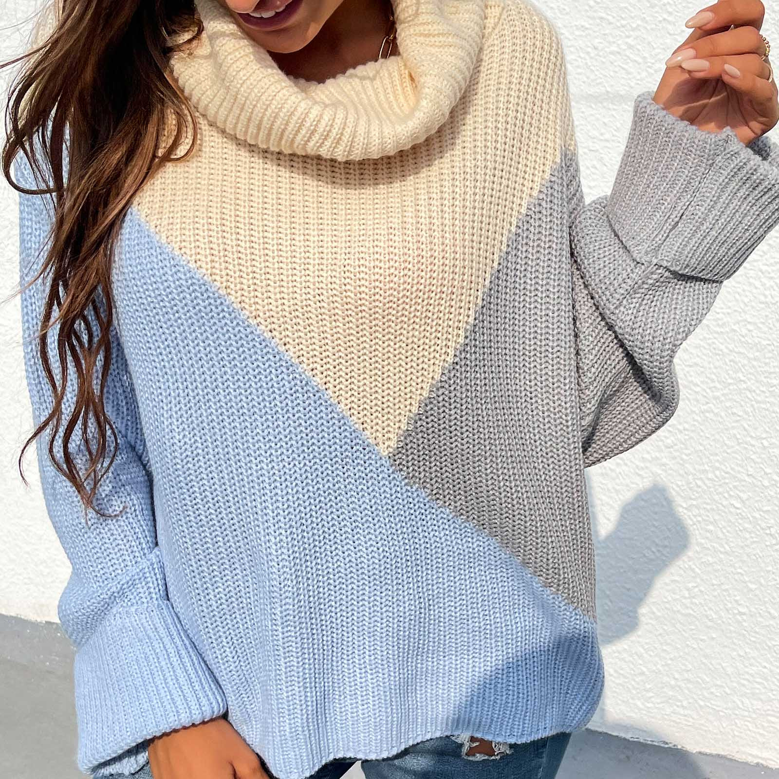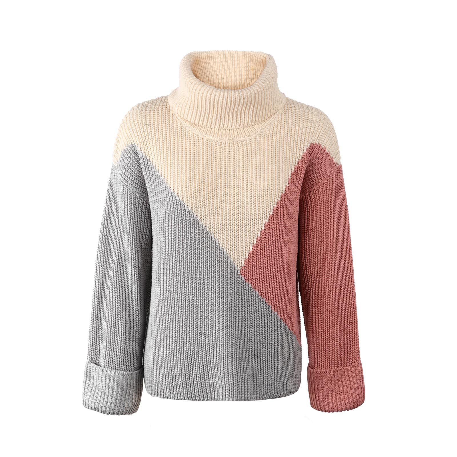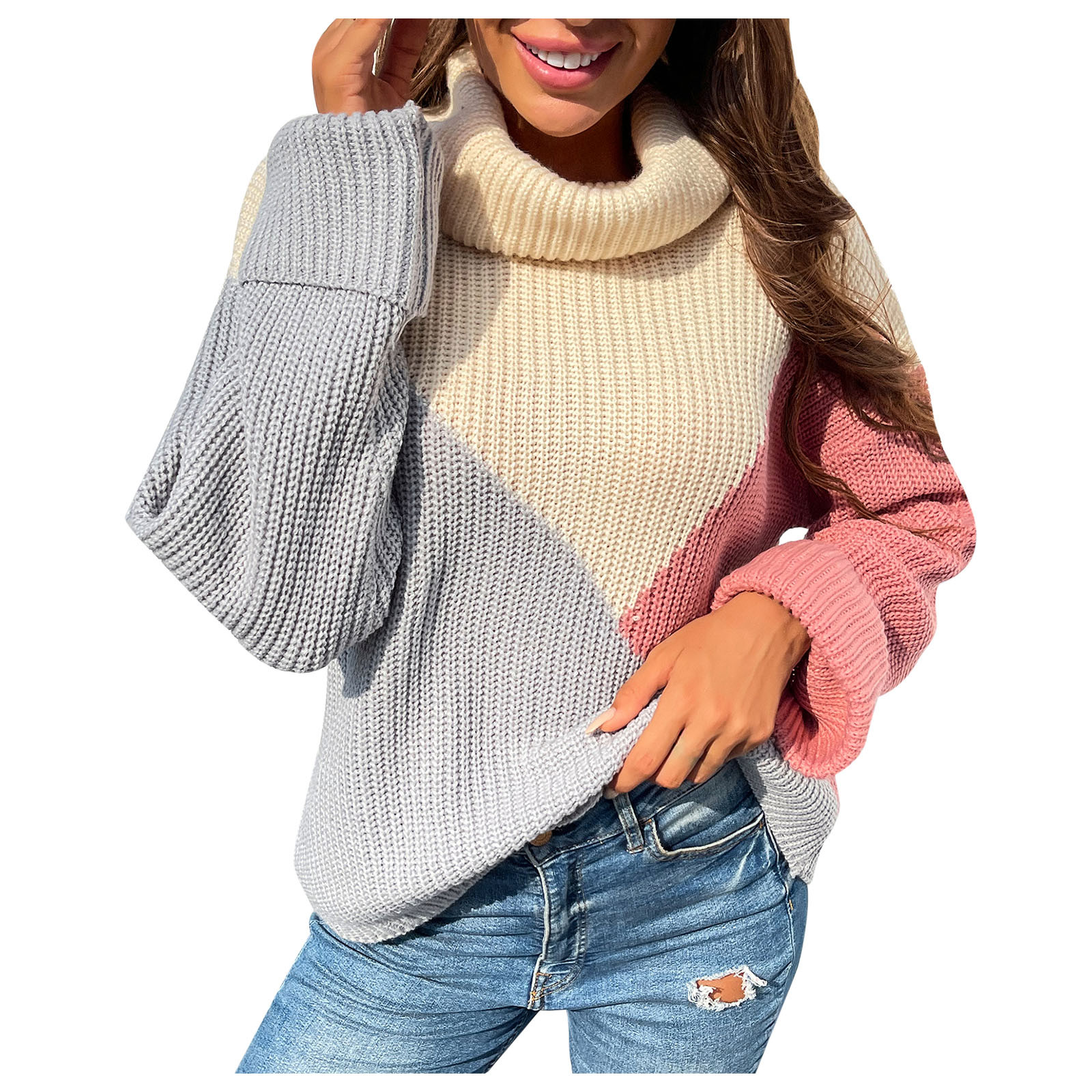 Casual Comfortable Loose Long-sleeved Stitching Ladies Sweater