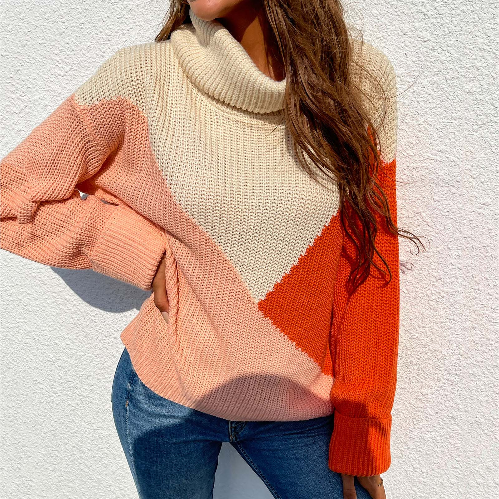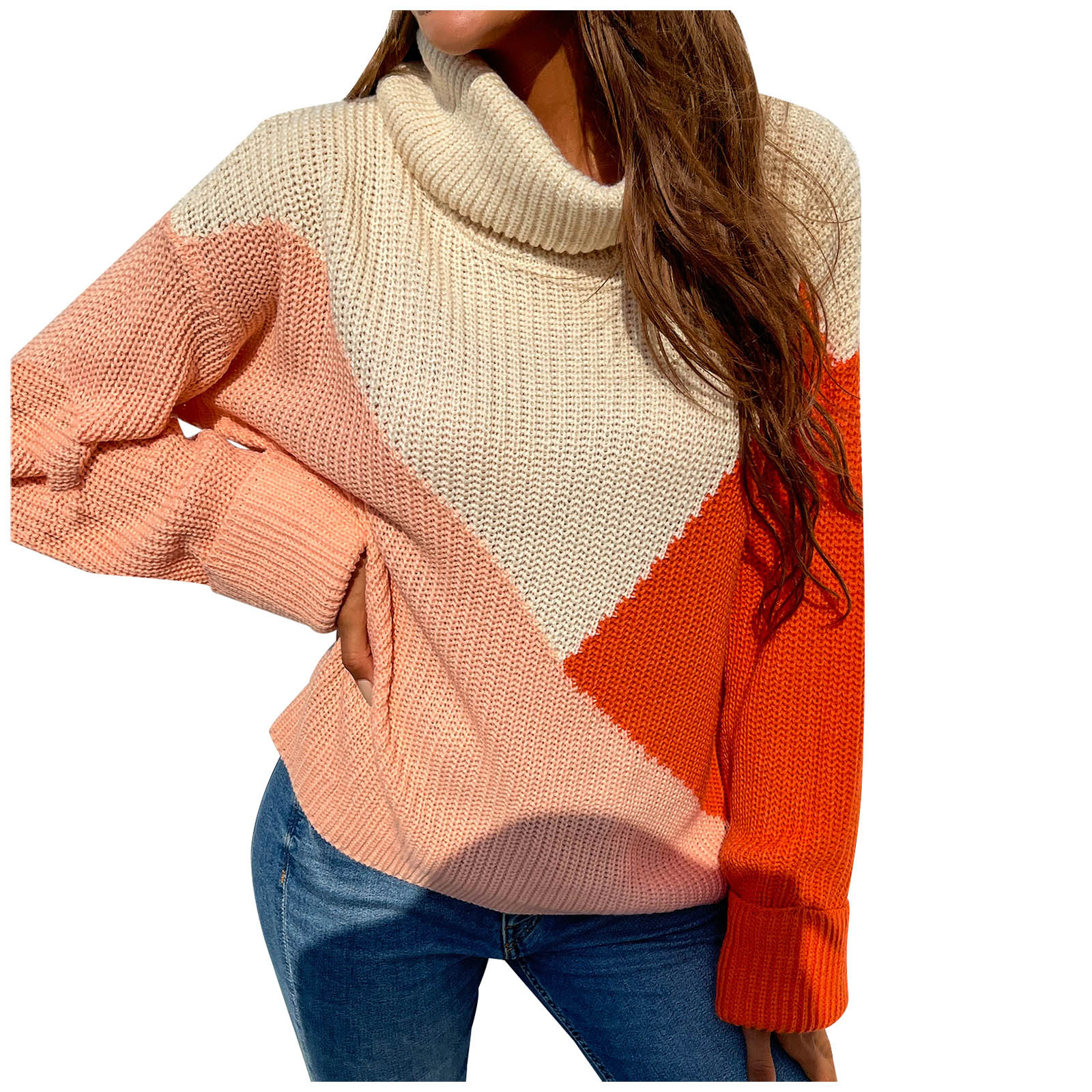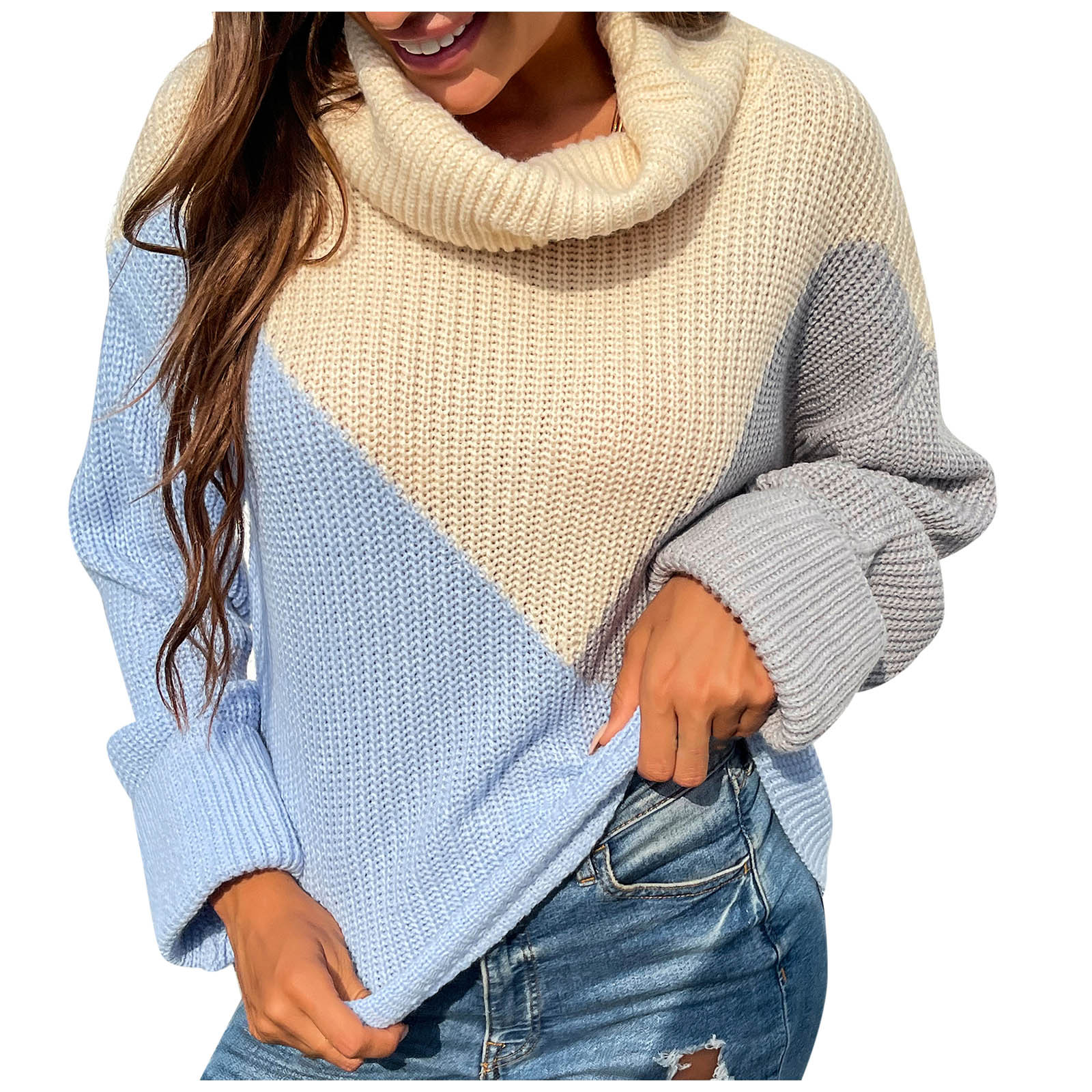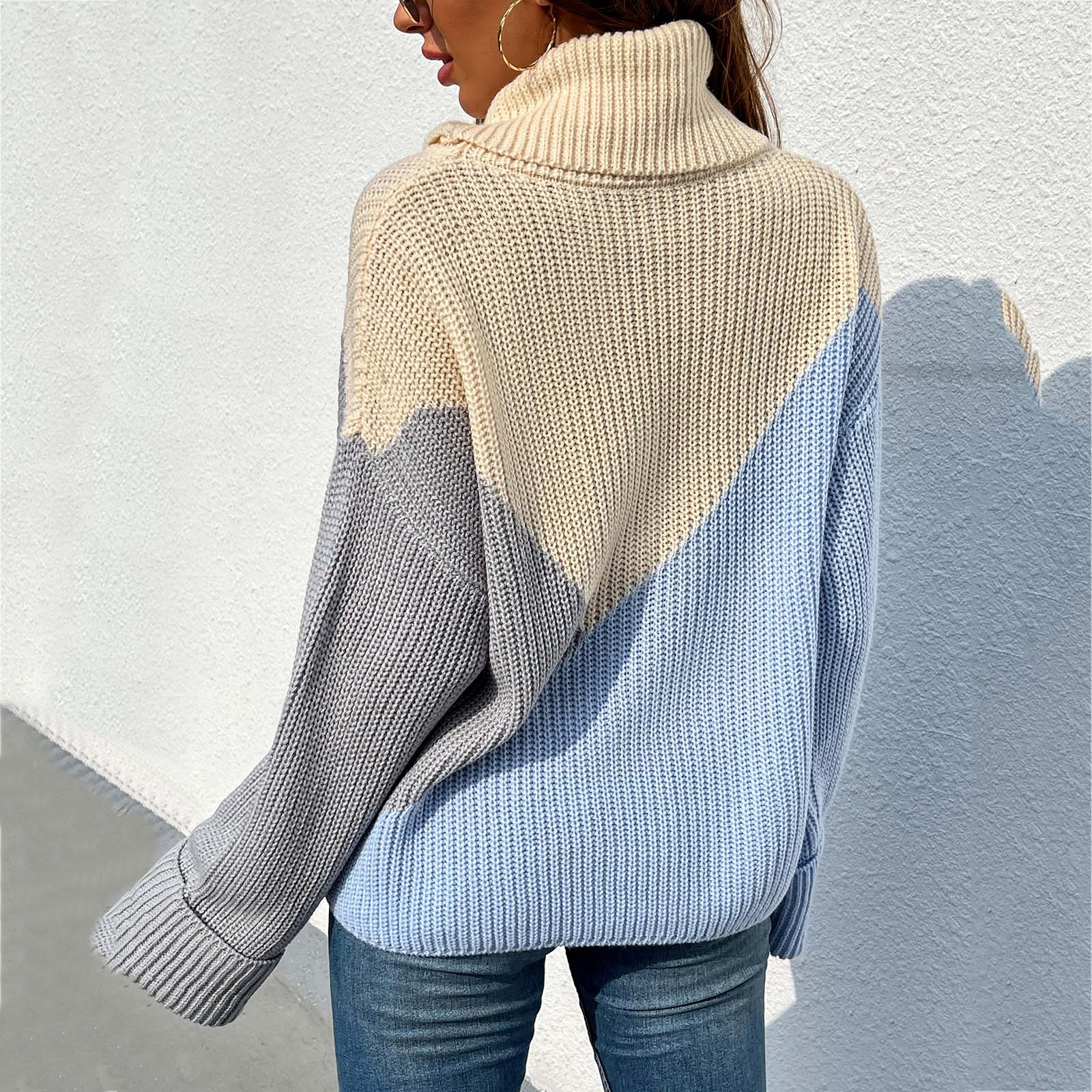 Casual Comfortable Loose Long-sleeved Stitching Ladies Sweater