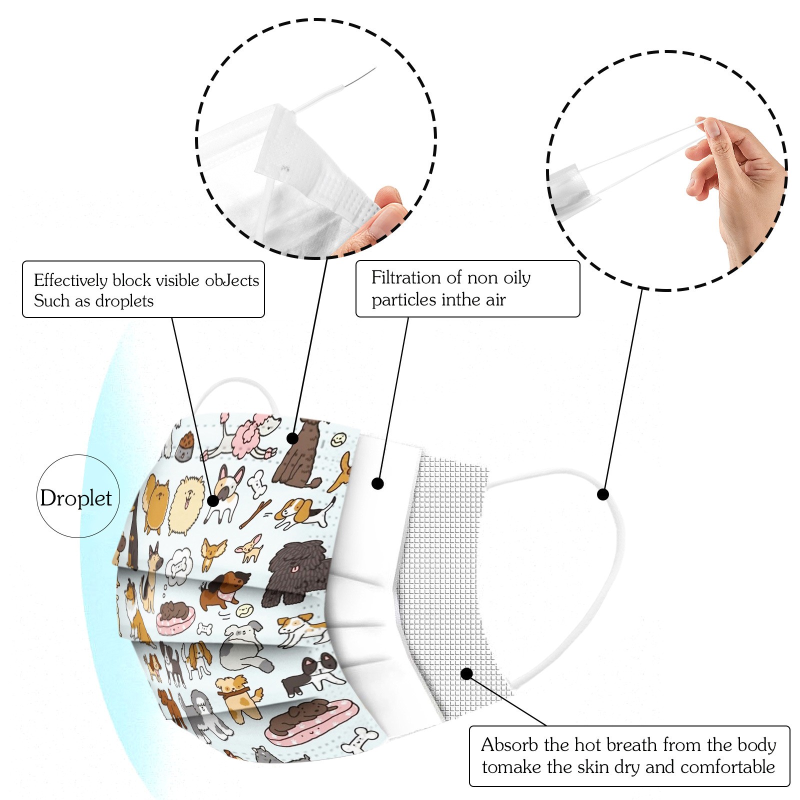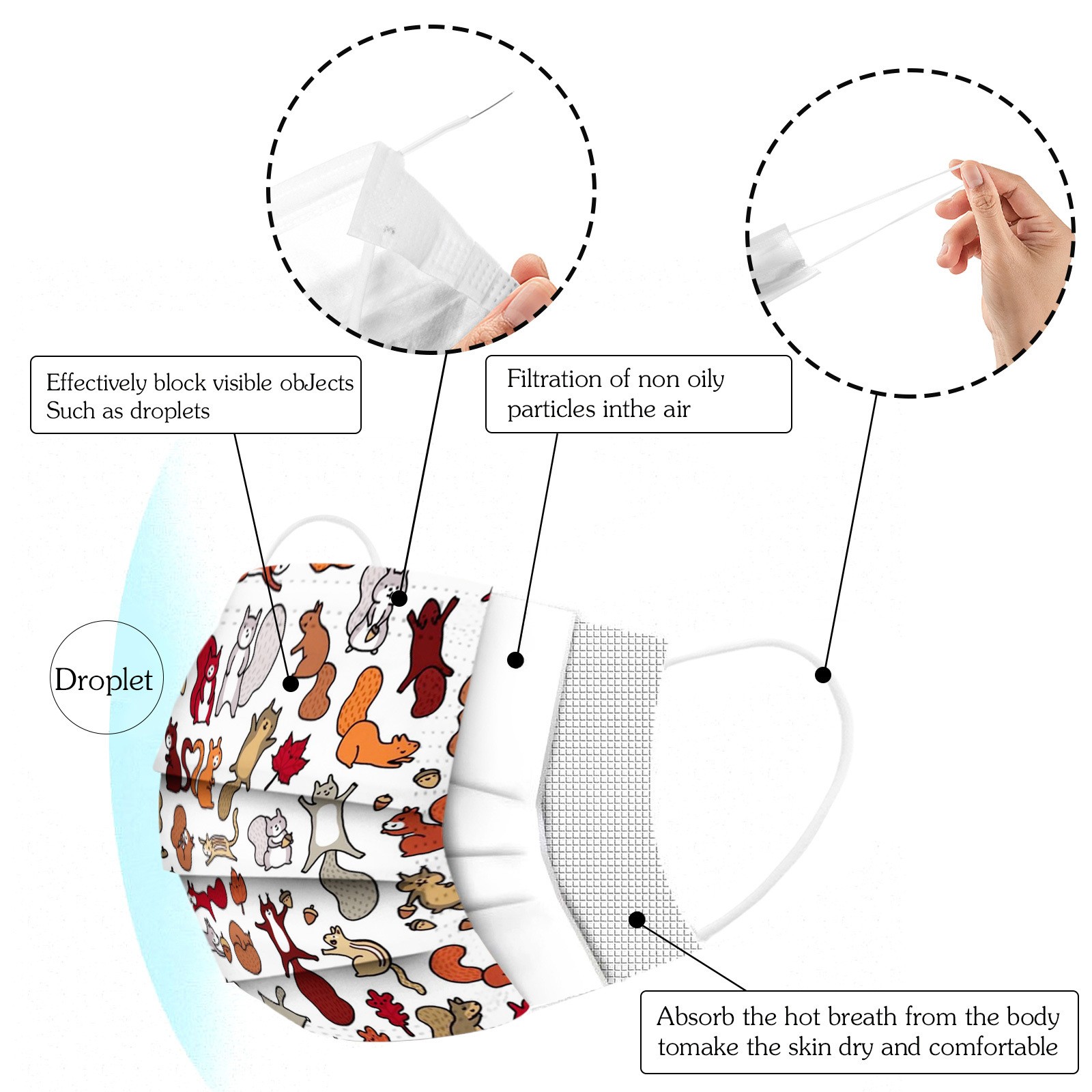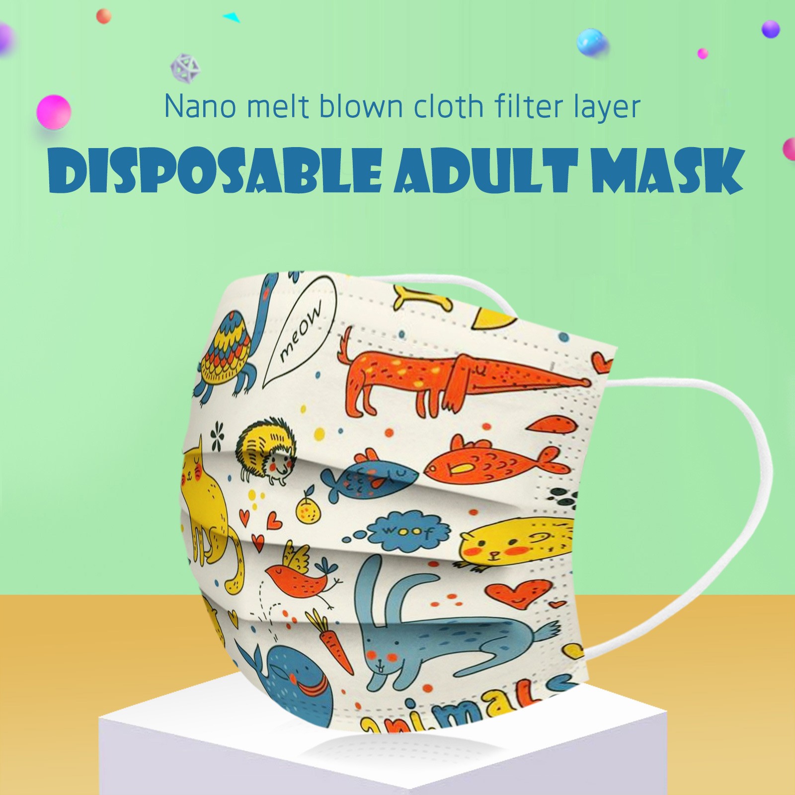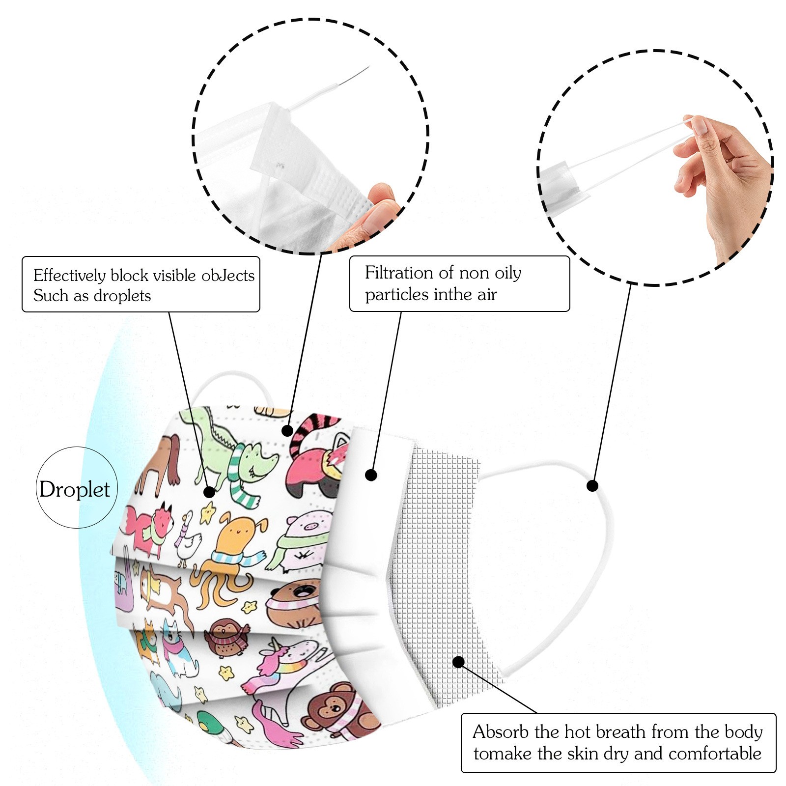 3 слоя мелтблаун ткани одноразовые маски, он безопасен для здоровья и безопасный для вас, чтобы использовать. Дышащий материал и милые узоры, что делает его полезным и модным. СпециальныйРасплавленная тканьДизайн, обеспечивает некоторую защиту от автомобильных выхлопных газов, пыльцы и т. д. эластичная петля для ушей, легко носить и не давит на уши. Маникюрный салон или любые другие области, где может потребоваться защита