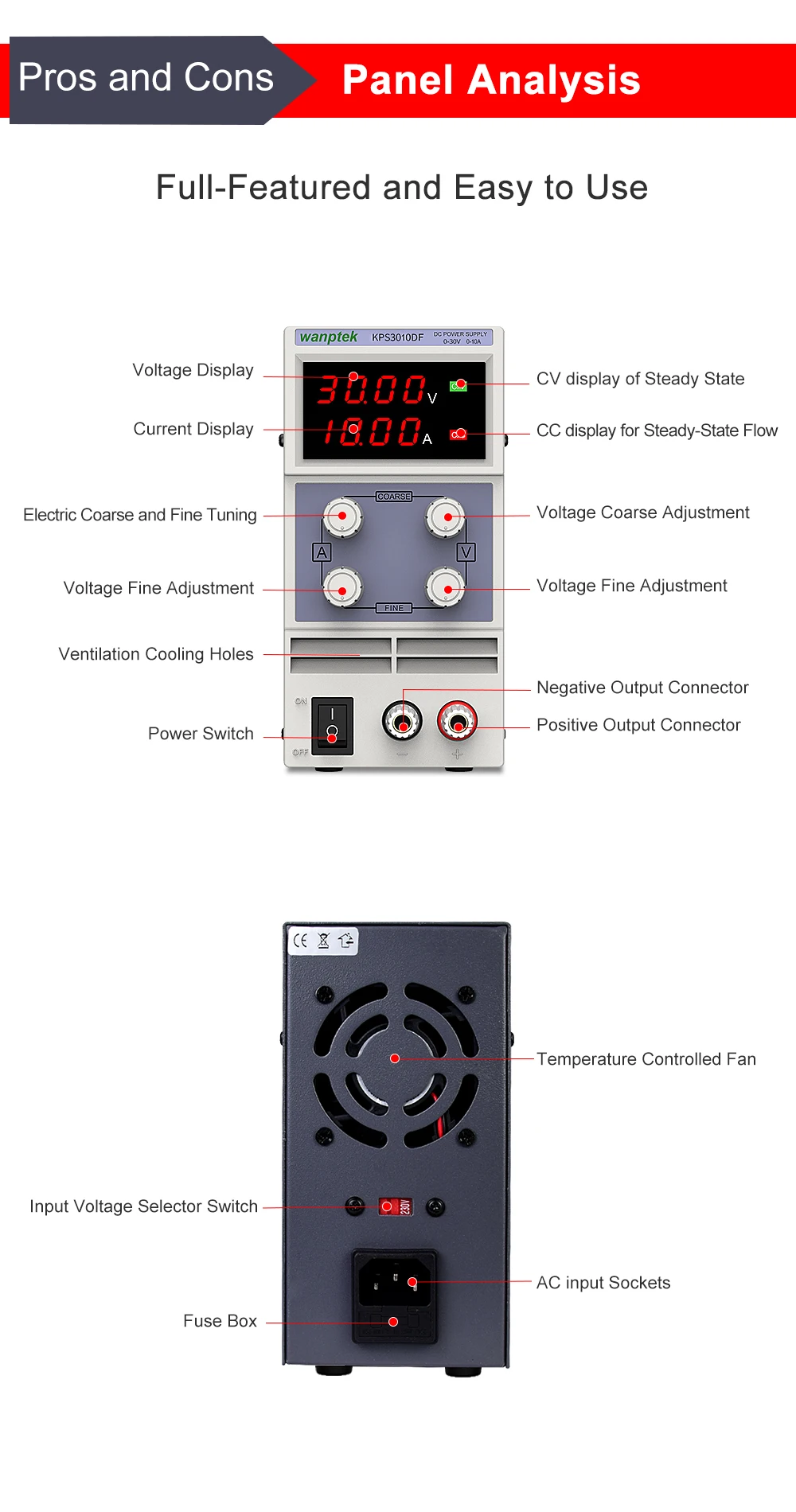 Новая серия продуктов Wanptek. Эта модель представляет собой миниатюрный импульсный источник питания постоянного тока. Выходное напряжение и ток можно контролировать и регулировать с помощью переменных резисторов соответственно, поэтому он обеспечивает больше удобства и точности в регулировке напряжения и тока. Панель также обеспечивает Высокоточный цифровой дисплей с двумя/тремя окнами напряжения, тока и мощности, чтобы пользователи могли интуитивно видеть состояние использования тока и различные параметры машины