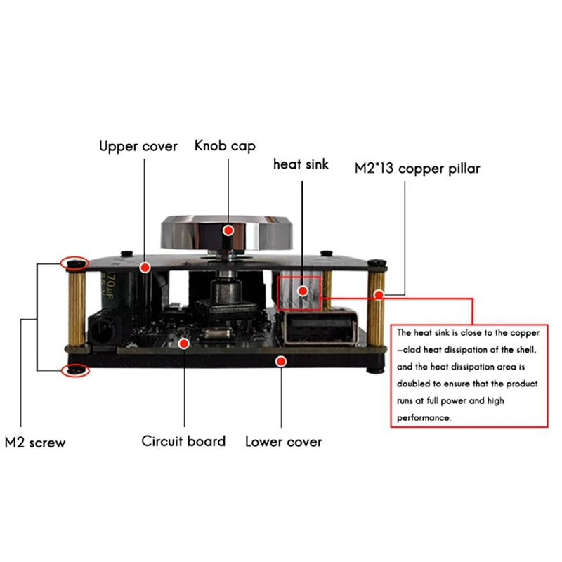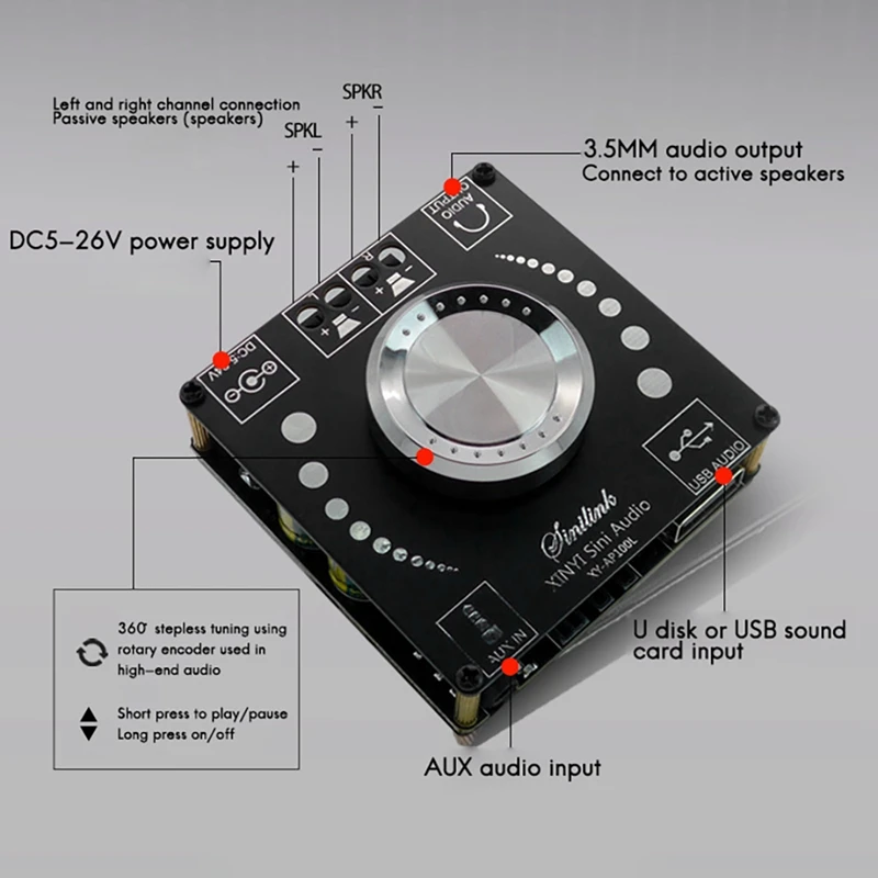 2. Using the rotary encoder used by high-end speakers, stepless tuning, smooth hand feeling, one-button start and stop
