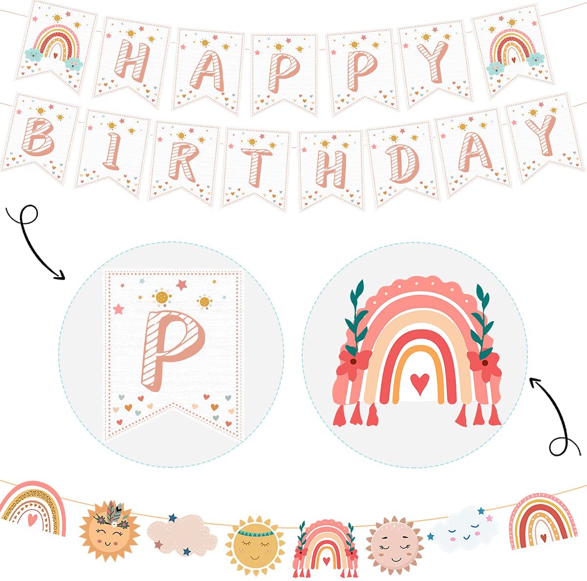 Милый Бохо С днем рождения баннер розовый Радуга гирлянда для сладких девочек день рождения