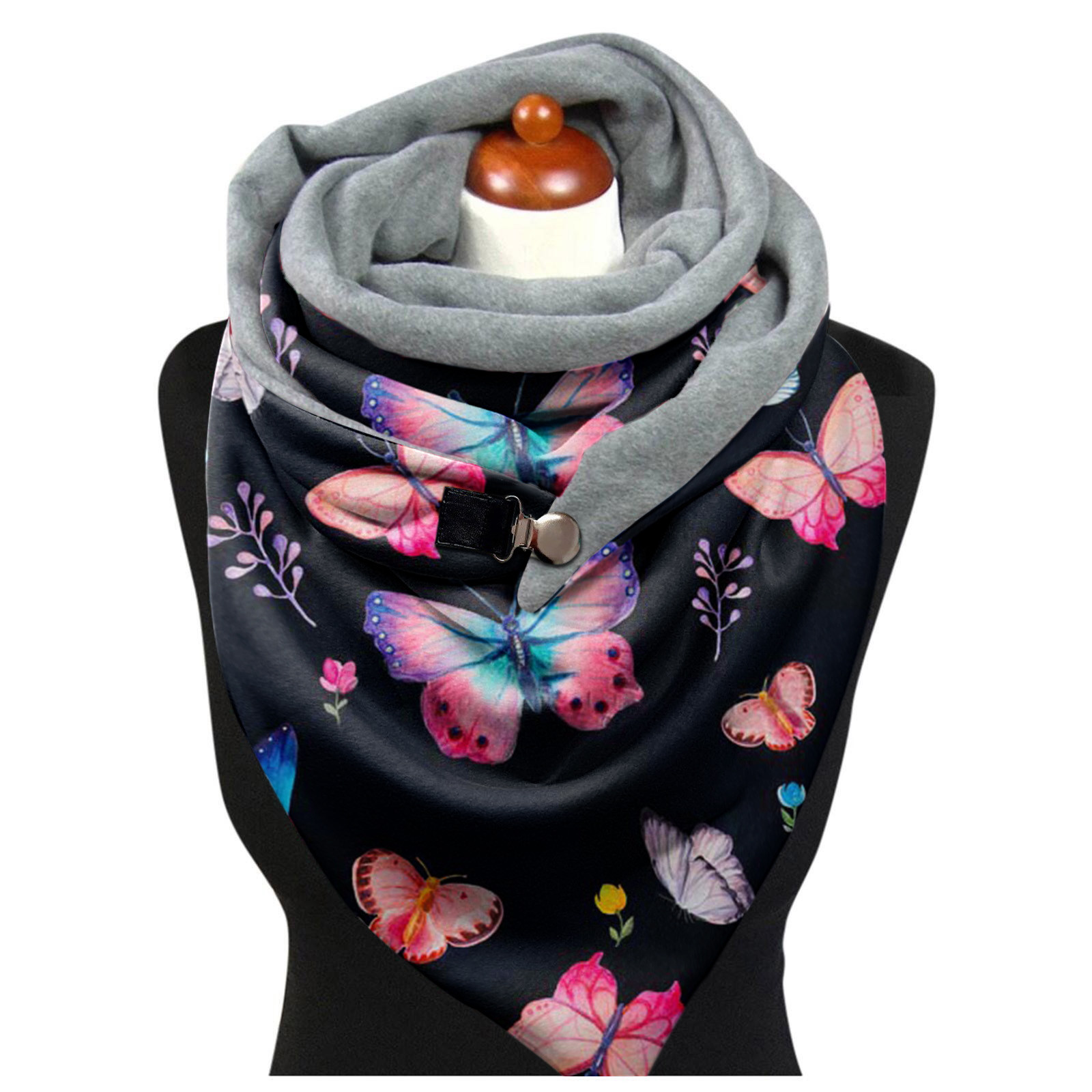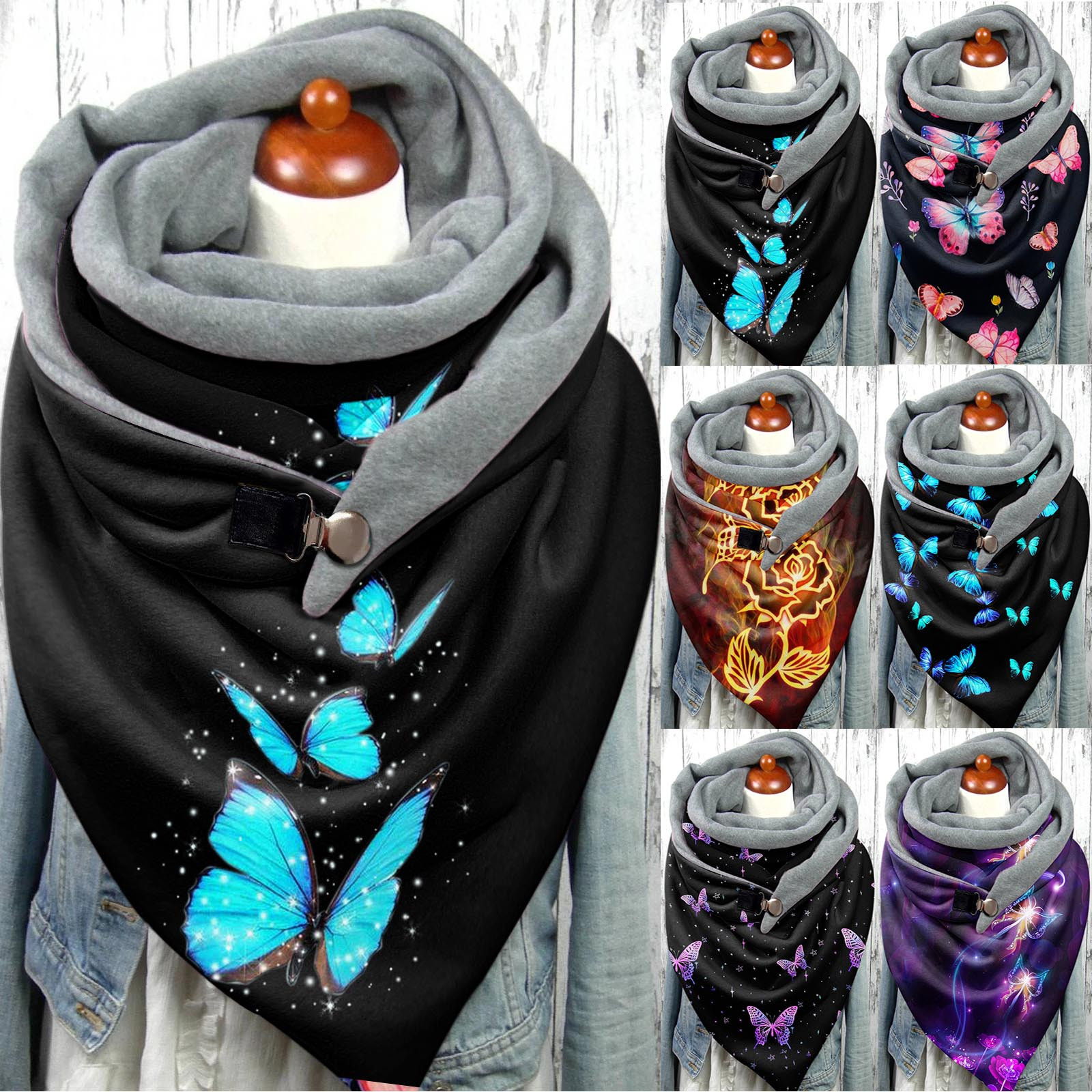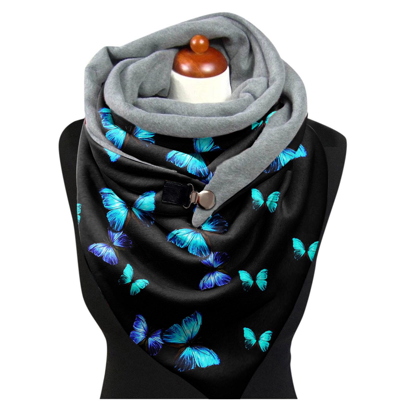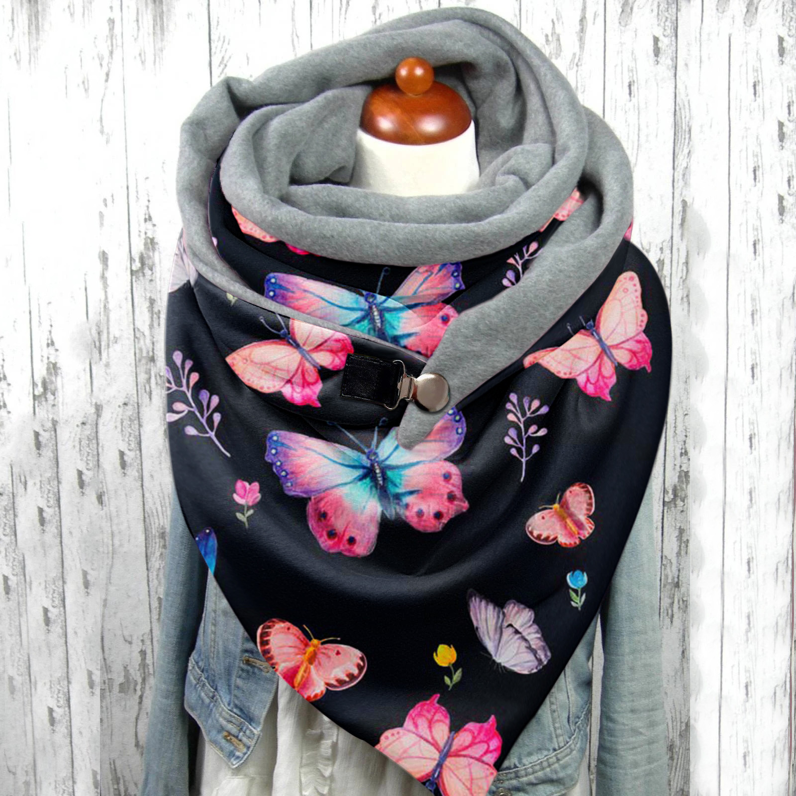 Женская мода бабочка печать Кнопка мягкая обертка повседневные теплые шарфы шали