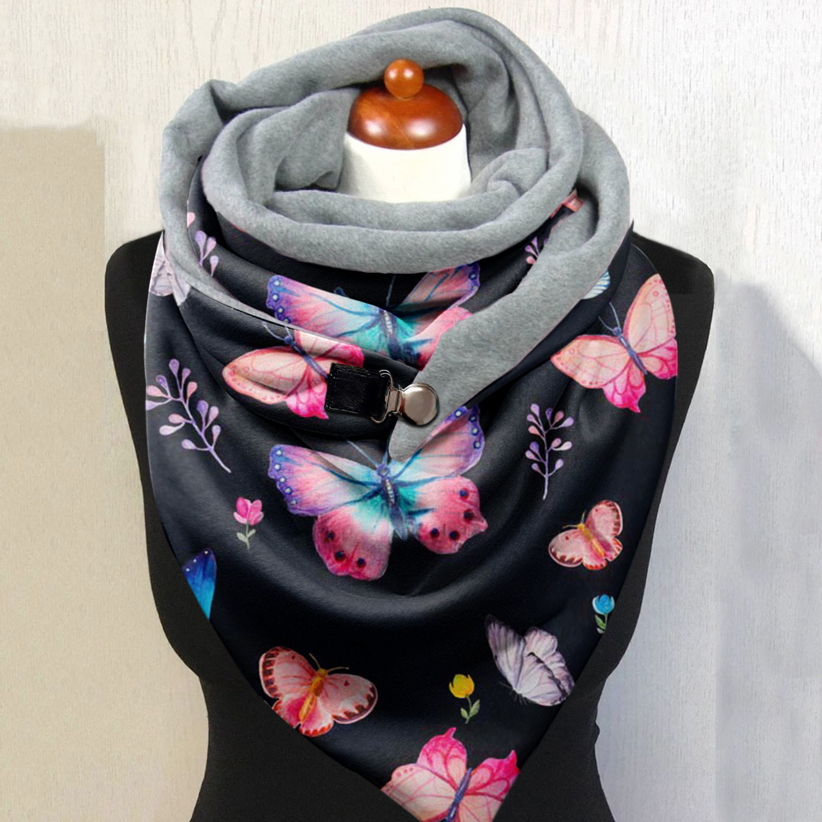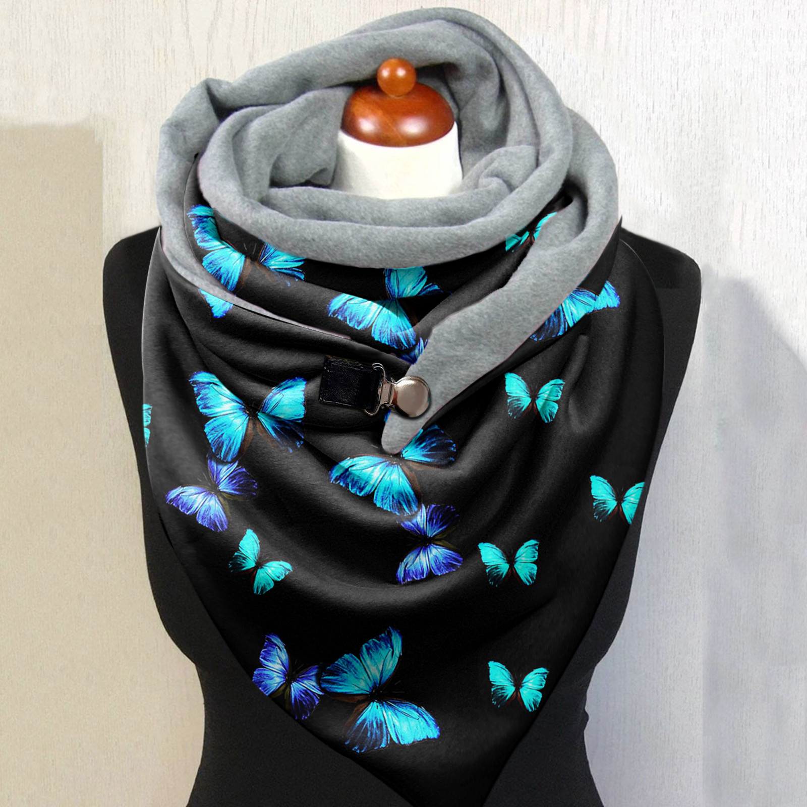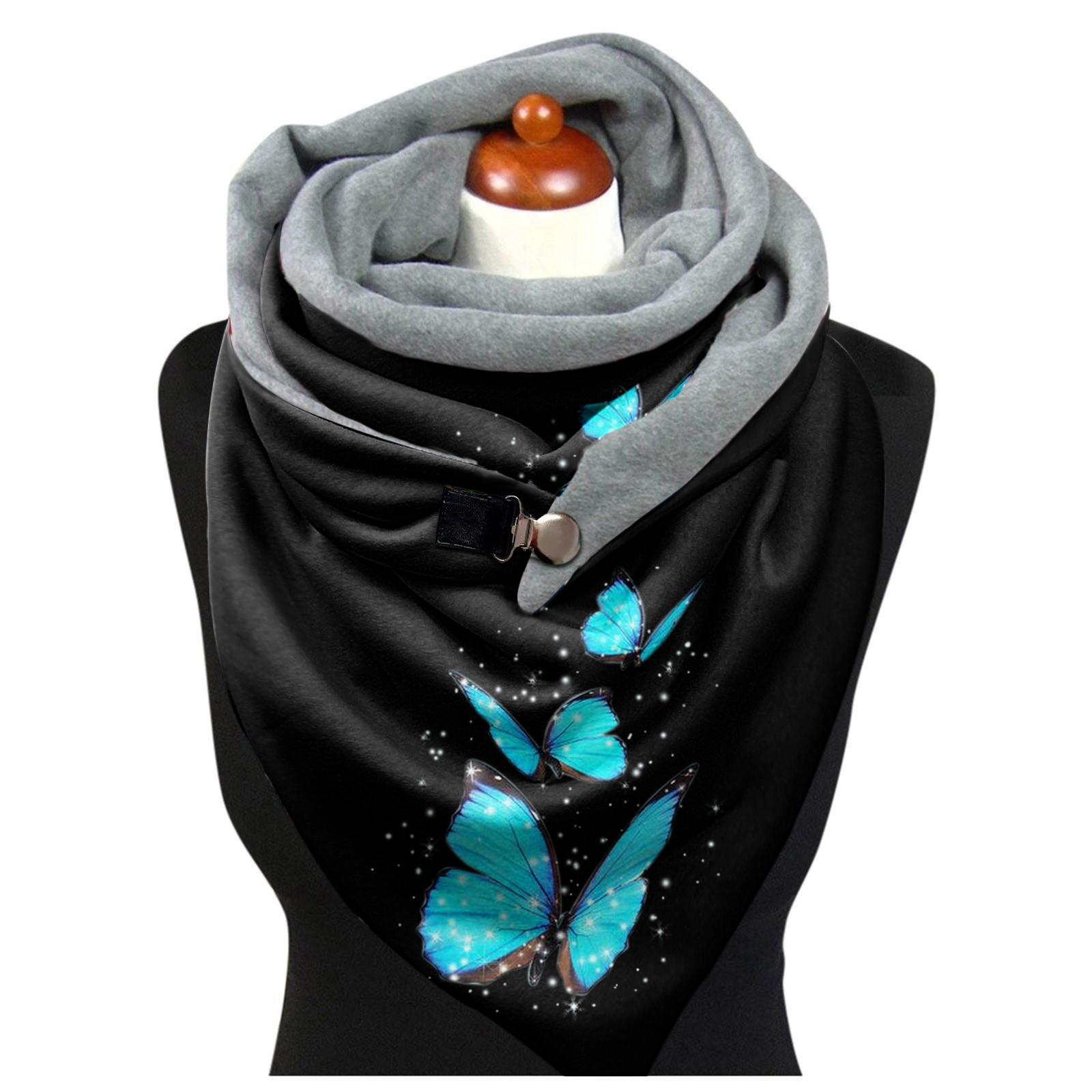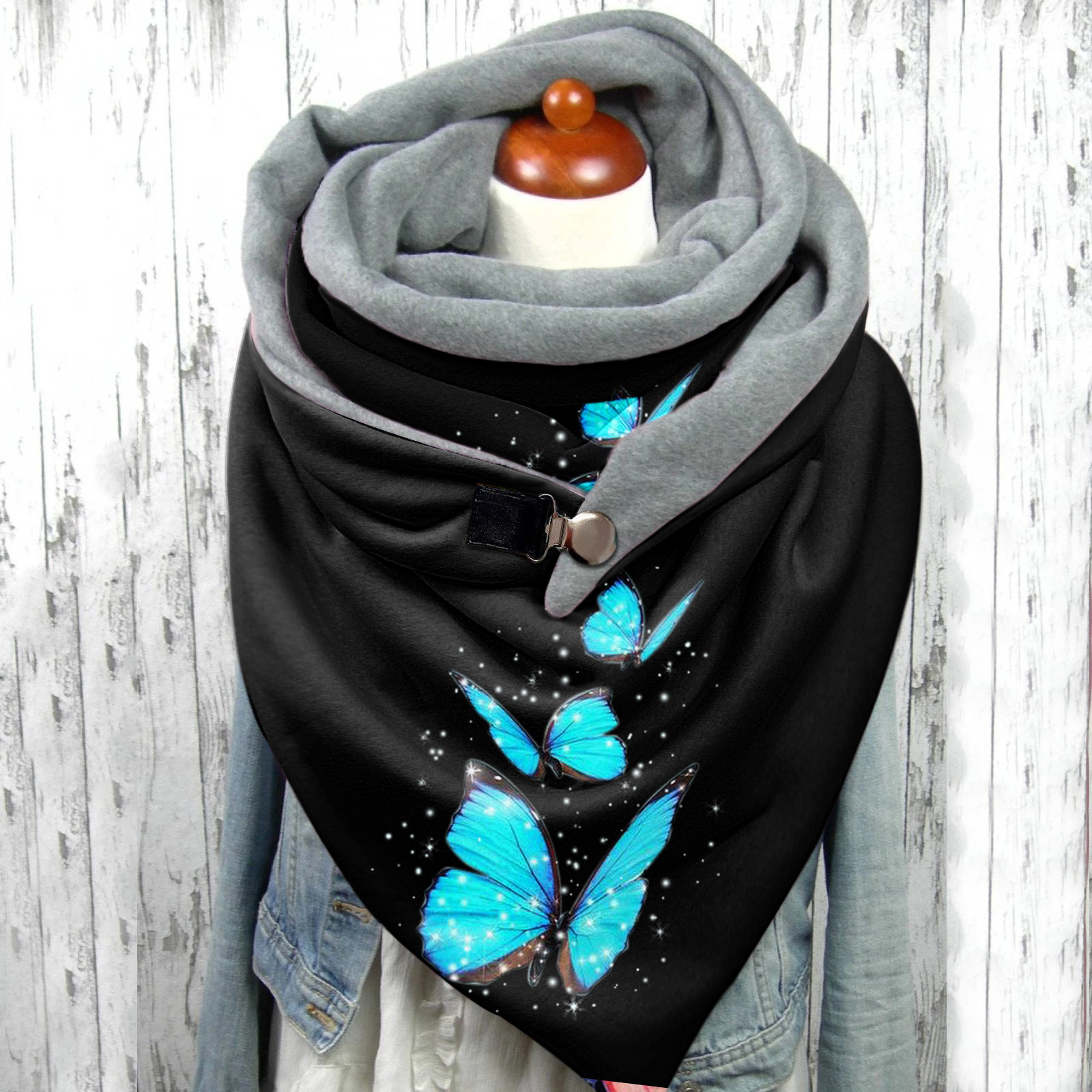 Женская мода бабочка печать Кнопка мягкая обертка повседневные теплые шарфы шали