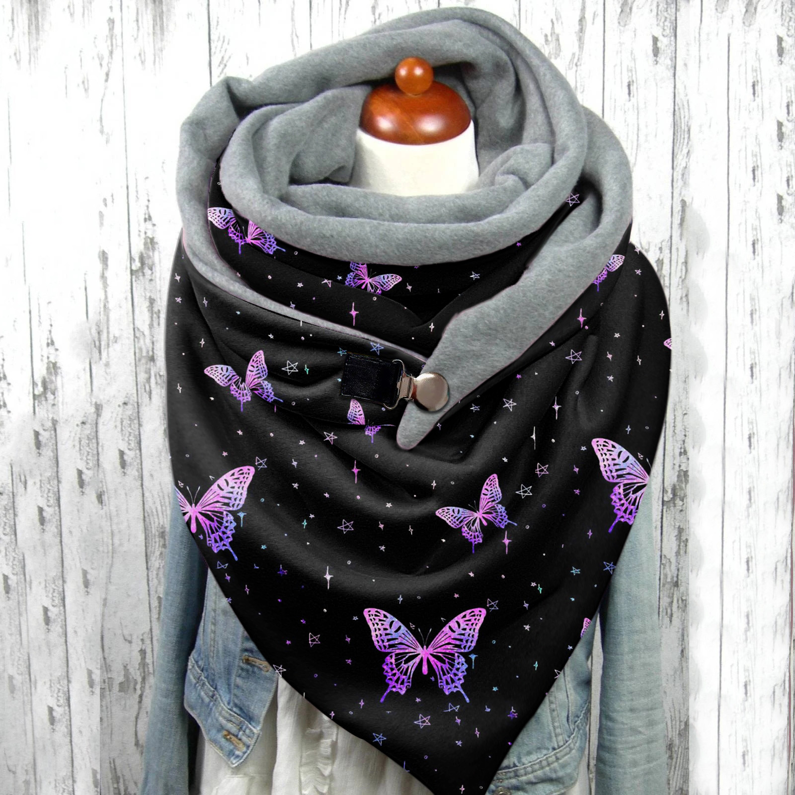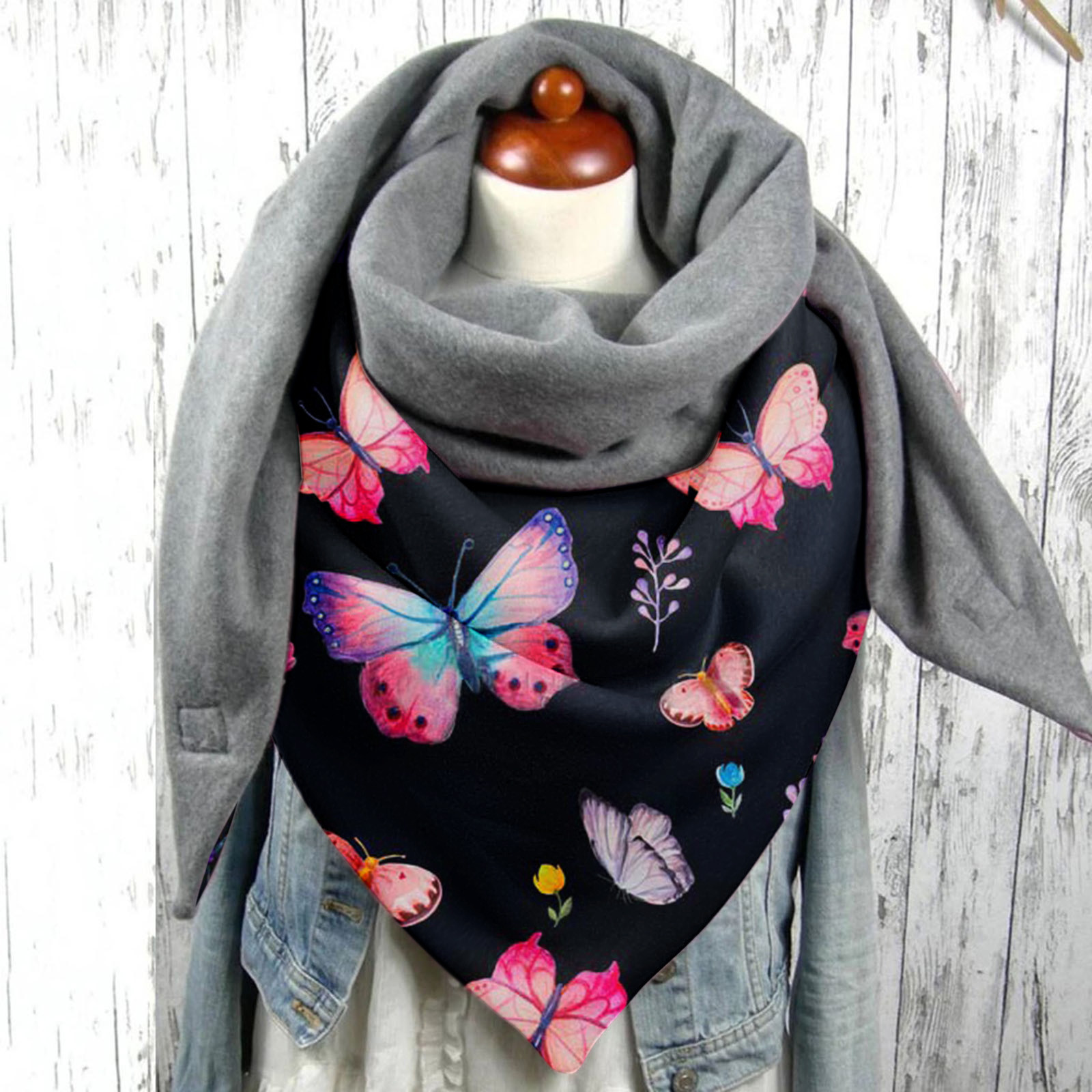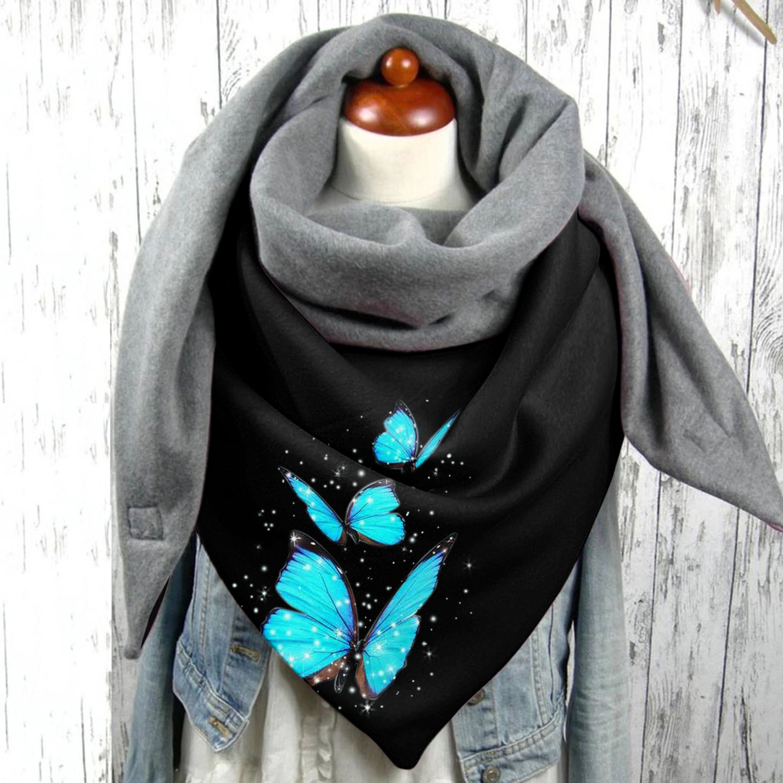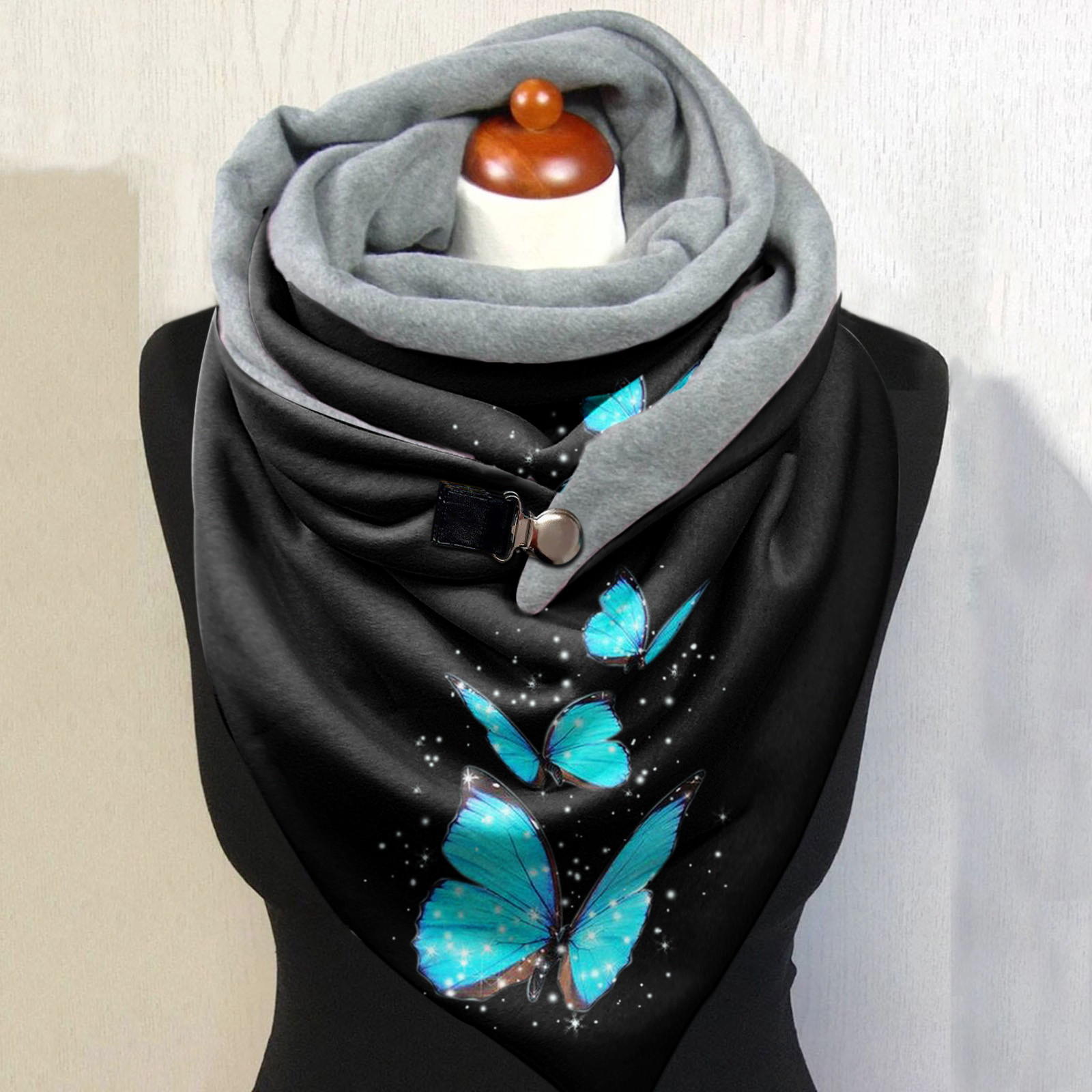 Женская мода бабочка печать Кнопка мягкая обертка повседневные теплые шарфы шали