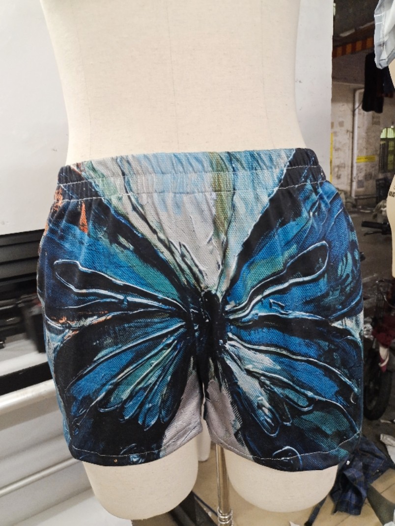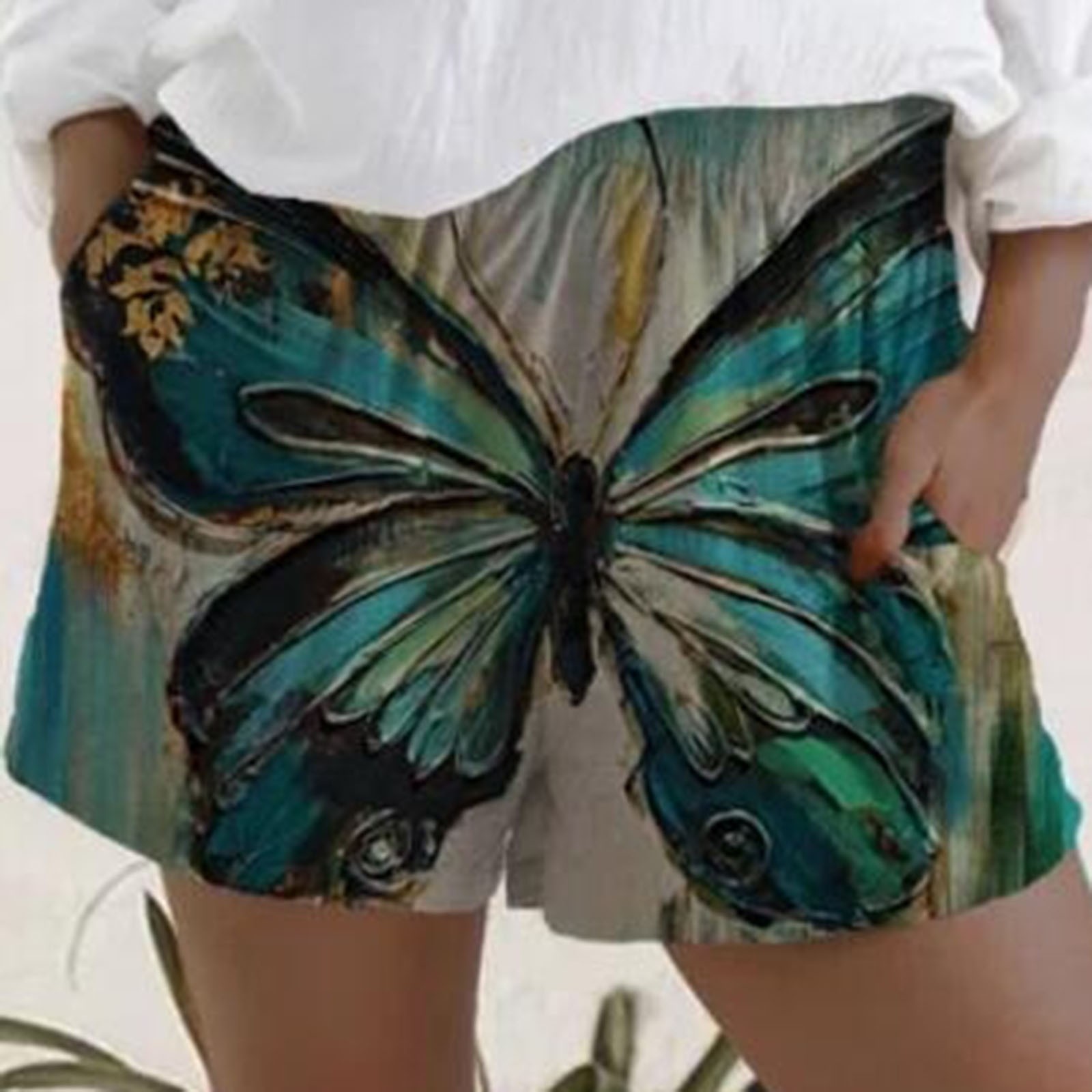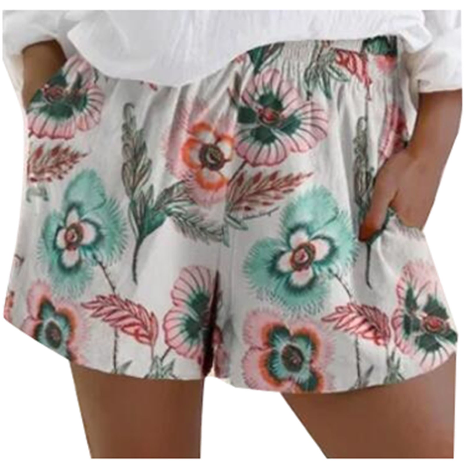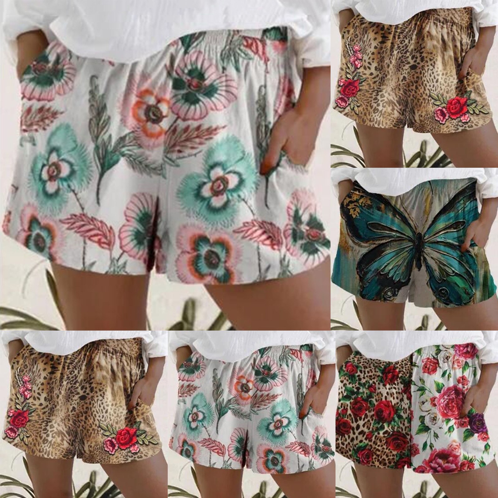 Женские летние повседневные темпераментные шорты с цифровой печатью и эластичной высокой талией