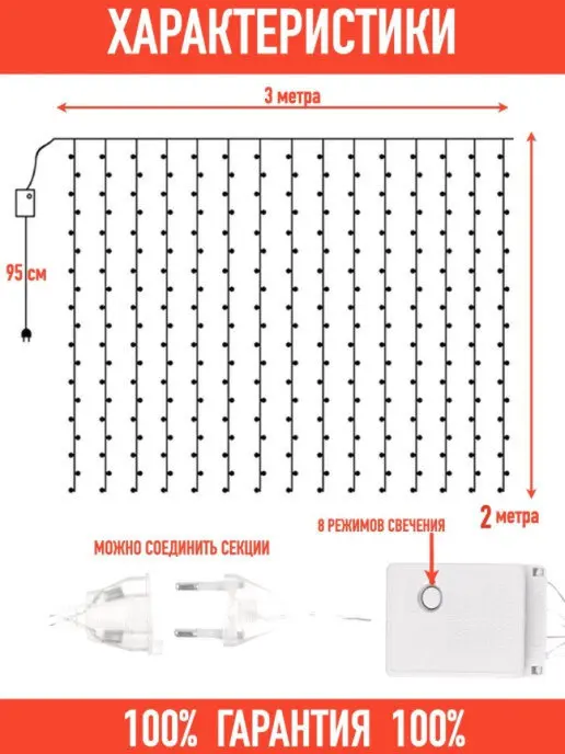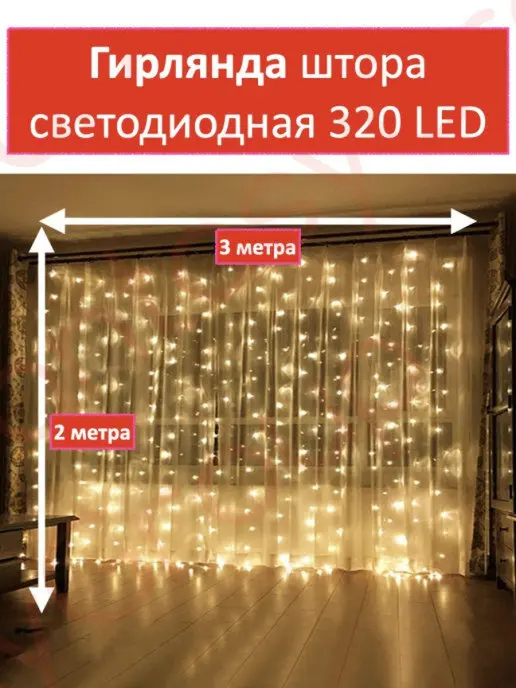 A set of garlands includes: 2 plugs (one plug to connect to a 220 V network, another plug to connect to other garlands (if necessary).