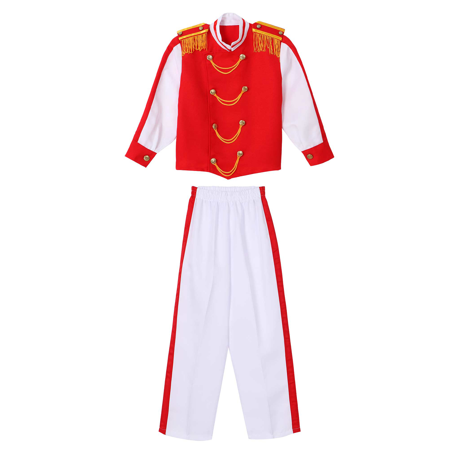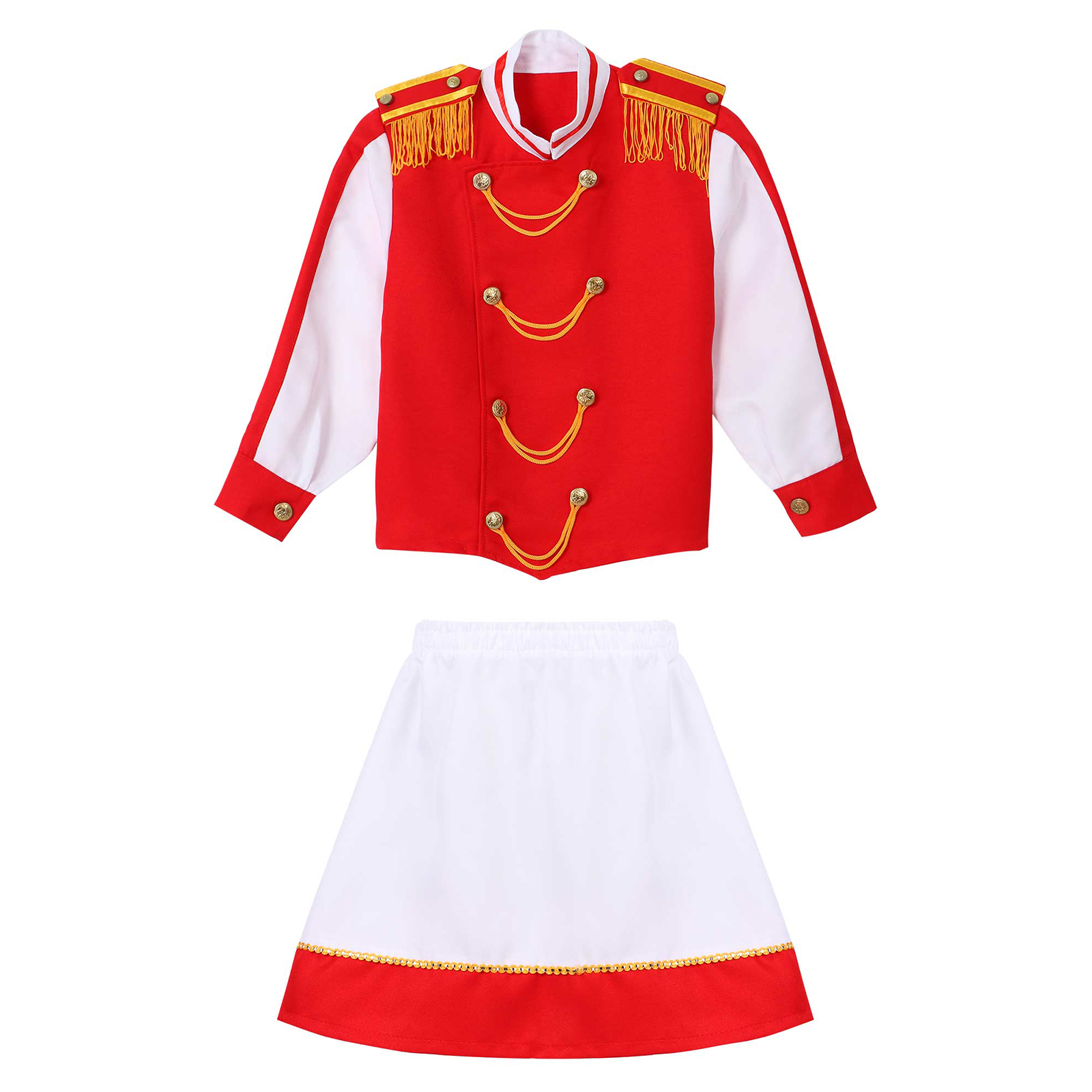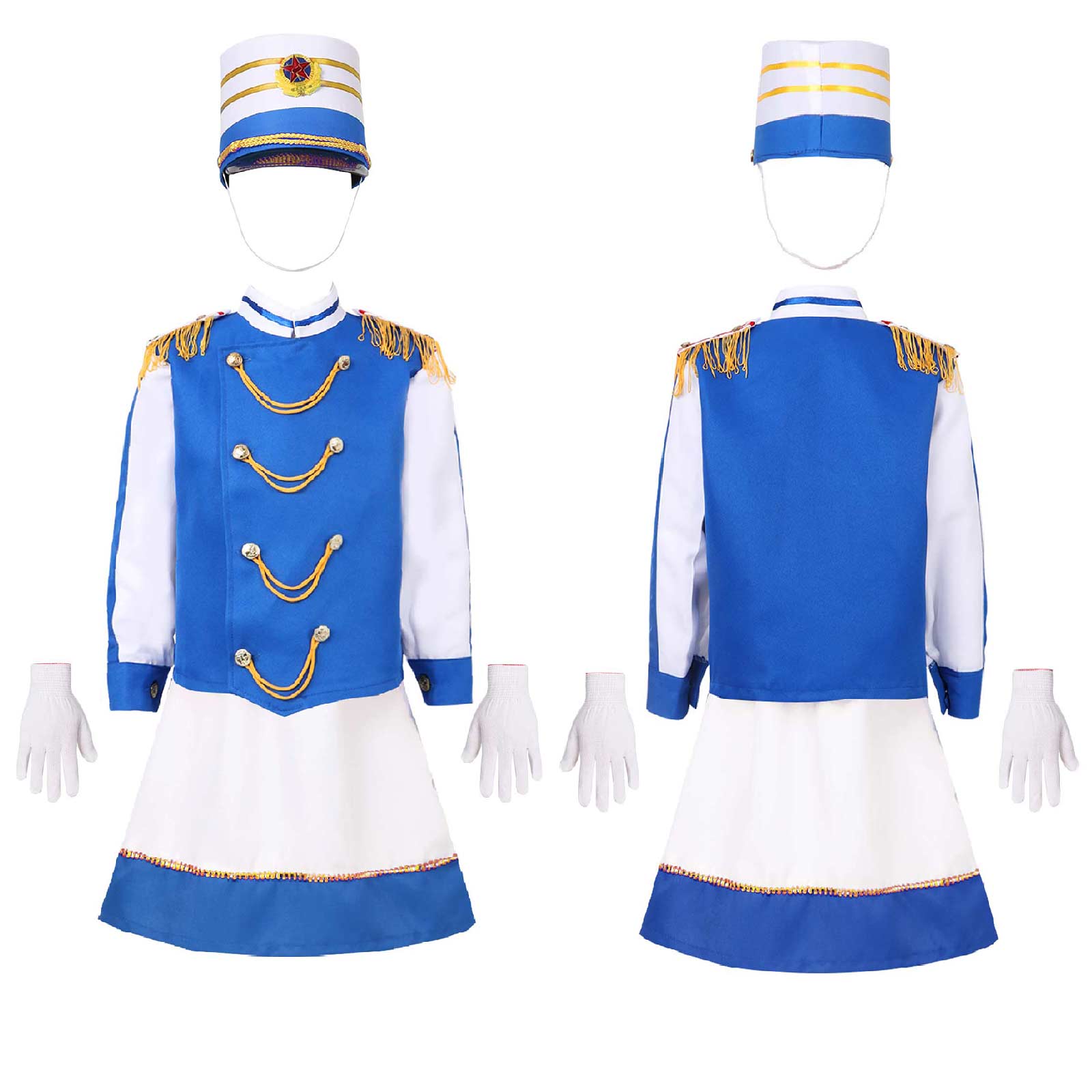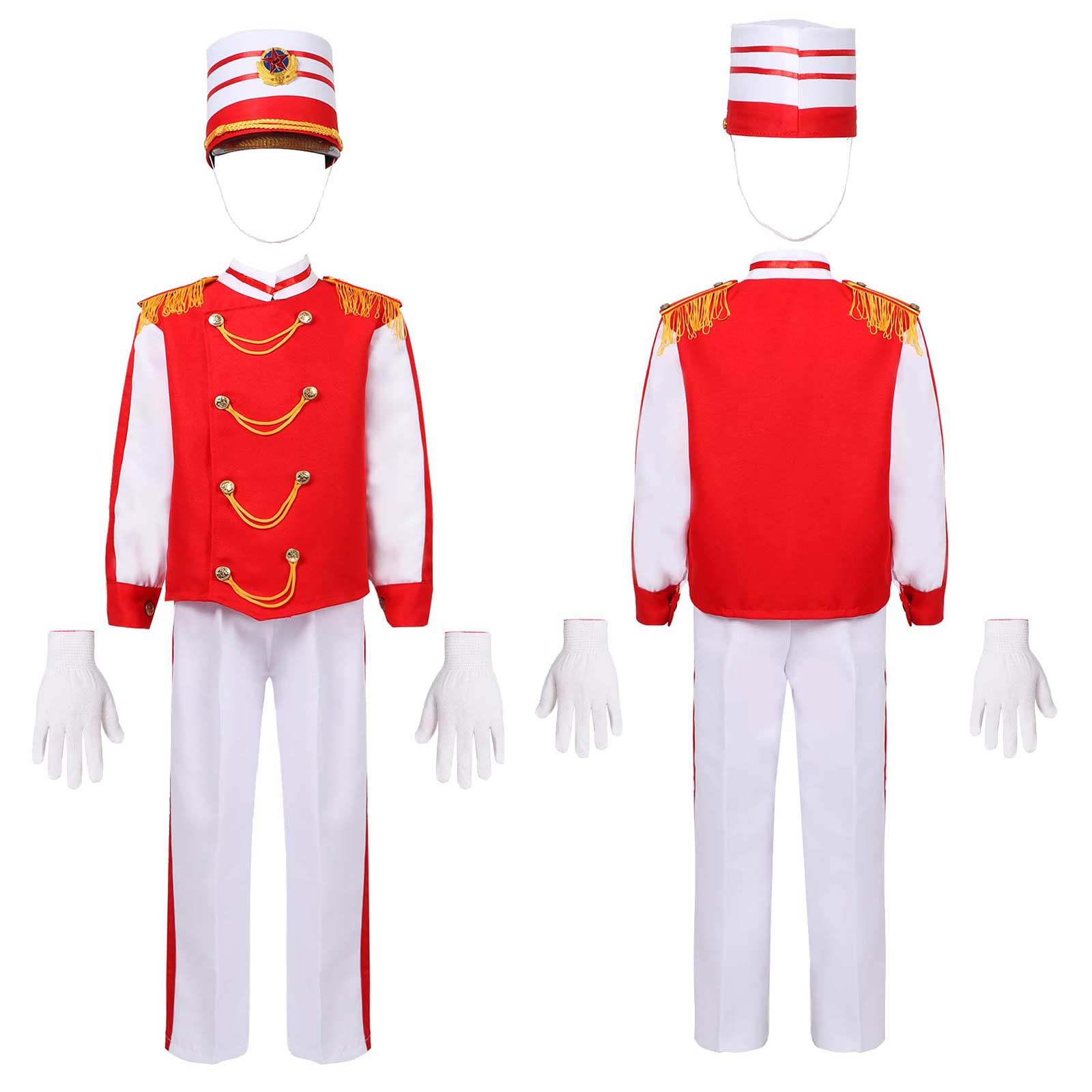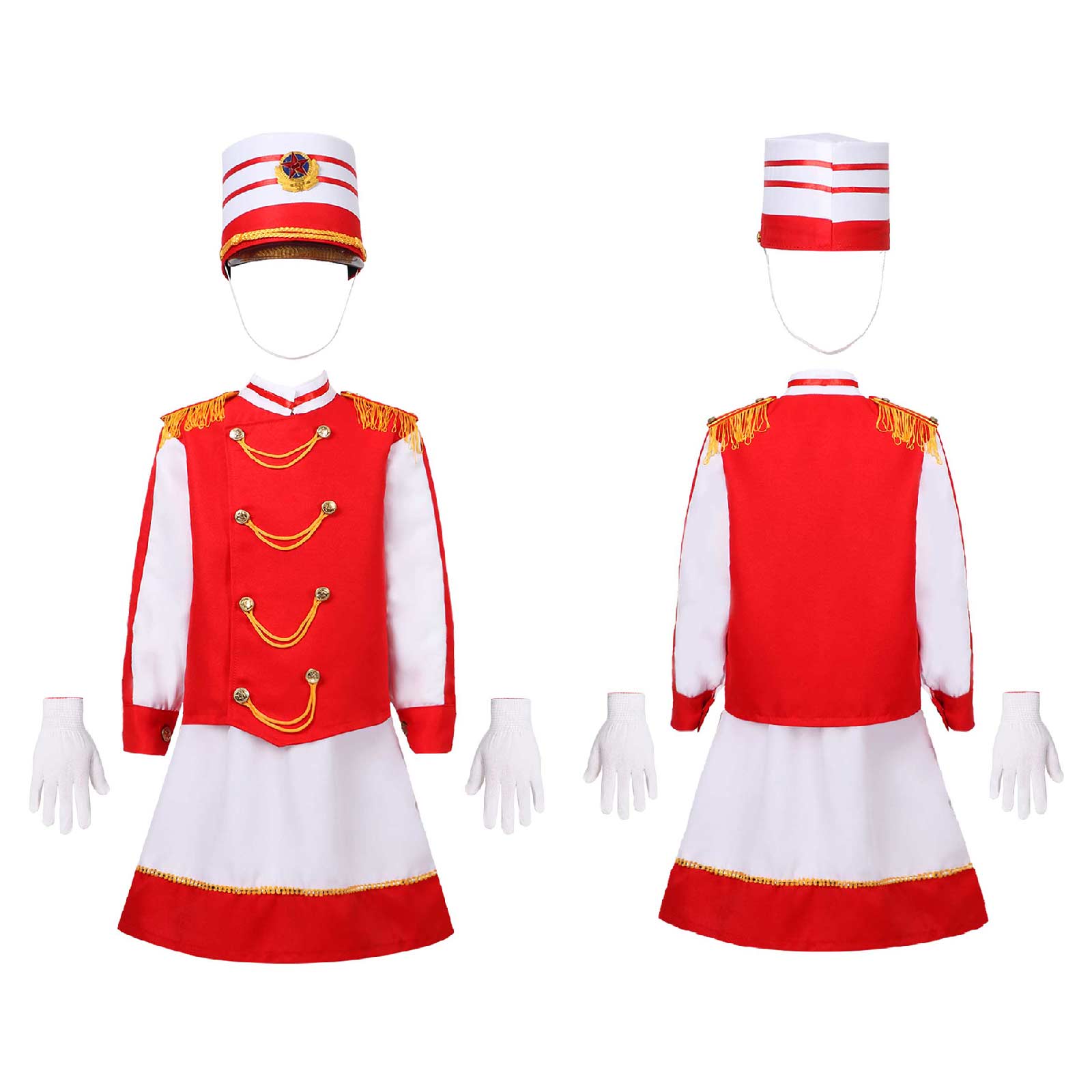 British Royal Guard Costume Kids Boys Girls Halloween Cosplay William Royal Guards Soldiers Costume Drum Troupe Costume Students Brass Band Honor Guard Flag-raiser Costume Snare Drum Performance Set Set Include: 1Pc Outerwear, 1Pc Pants/Skirt, 1Pc Hat, 1 Pair Gloves