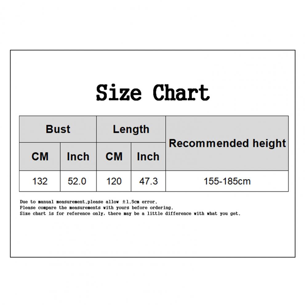 Длина: 120 см/47,2 дюйма, обхват груди: 132 см/52 дюйма, рост: 155 см-185 см/61,02 дюйма-72,83 дюйма (прибл.)