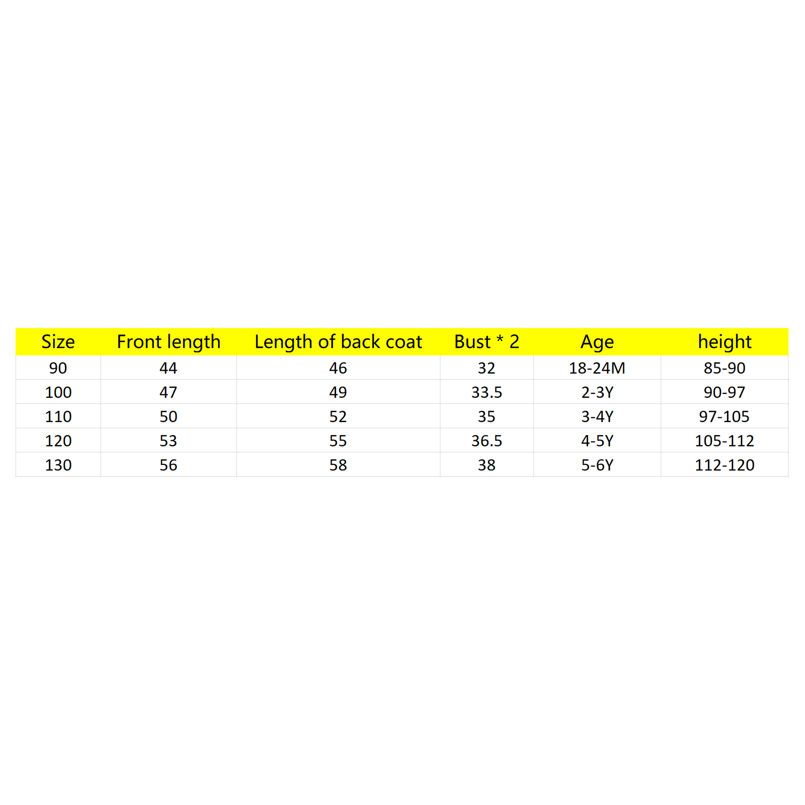 110 Длина спереди: 19,69 Бюст: 27,56 Длина спины: 20,47 Возраст: От 3 до 4 лет