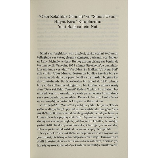 «Medium zekâllylar Cenneti'ni писала с тех пор, türkiye'de и многое изменилось в мире, но gézlemlerime в соответствии с 'wit lı'laryn power field был расширен, почти превратился в общий неуправляемый ответственный механизм. Toplum качество-говорить -- рвота начала, собственный хороший заменить злом, очищение заменить рывок, правильное место неправильно, кибарлыгын заменить грубость, заменить нравственность на пути получения аморальности значительно продвинутая была реформирована.