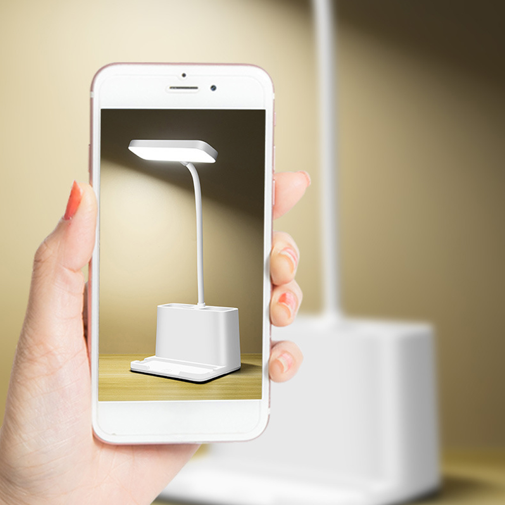 【Универсальный органайзер и держатель для телефона 】Светодиодный Настольный Светильник поставляется с держателями для ручек, линейки или косметических инструментов. С дизайном держателя телефона, что удобно для размещения телефона, чтобы смотреть видео, когда вы свободны.