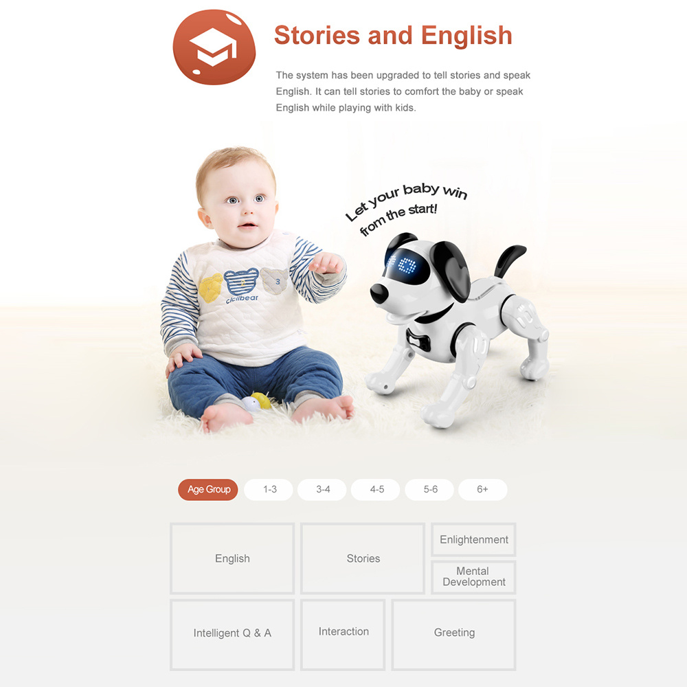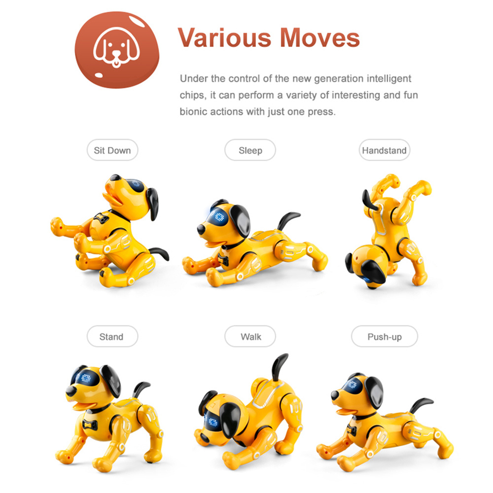 1. Все конечности могут двигаться: передние и задние ножки собаки разработаны с независимыми двигателями, с концепцией бионики и реальным изображением; Он может легко совершать различные движения через пульт дистанционного управления.