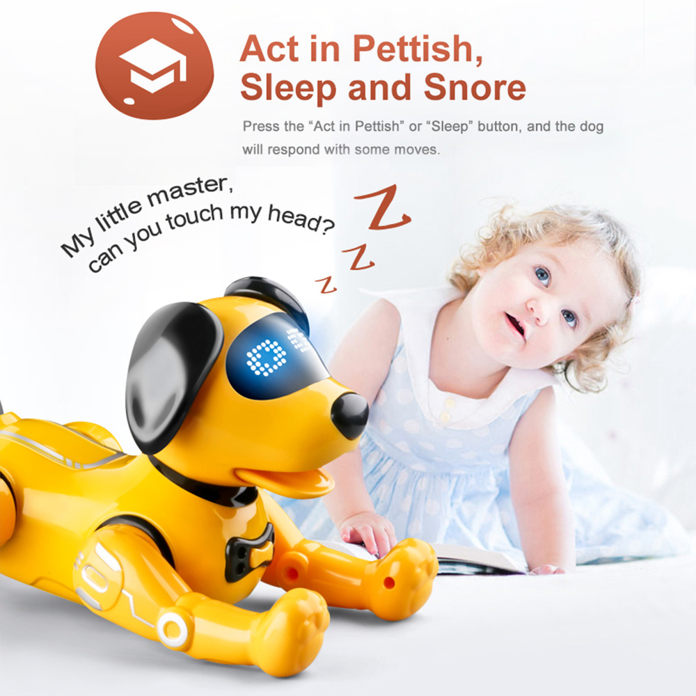 6. Взаимодействие с сенсорной головкой: коснувшись лай головы, щенок ответит соответствующим образом, что забавно.