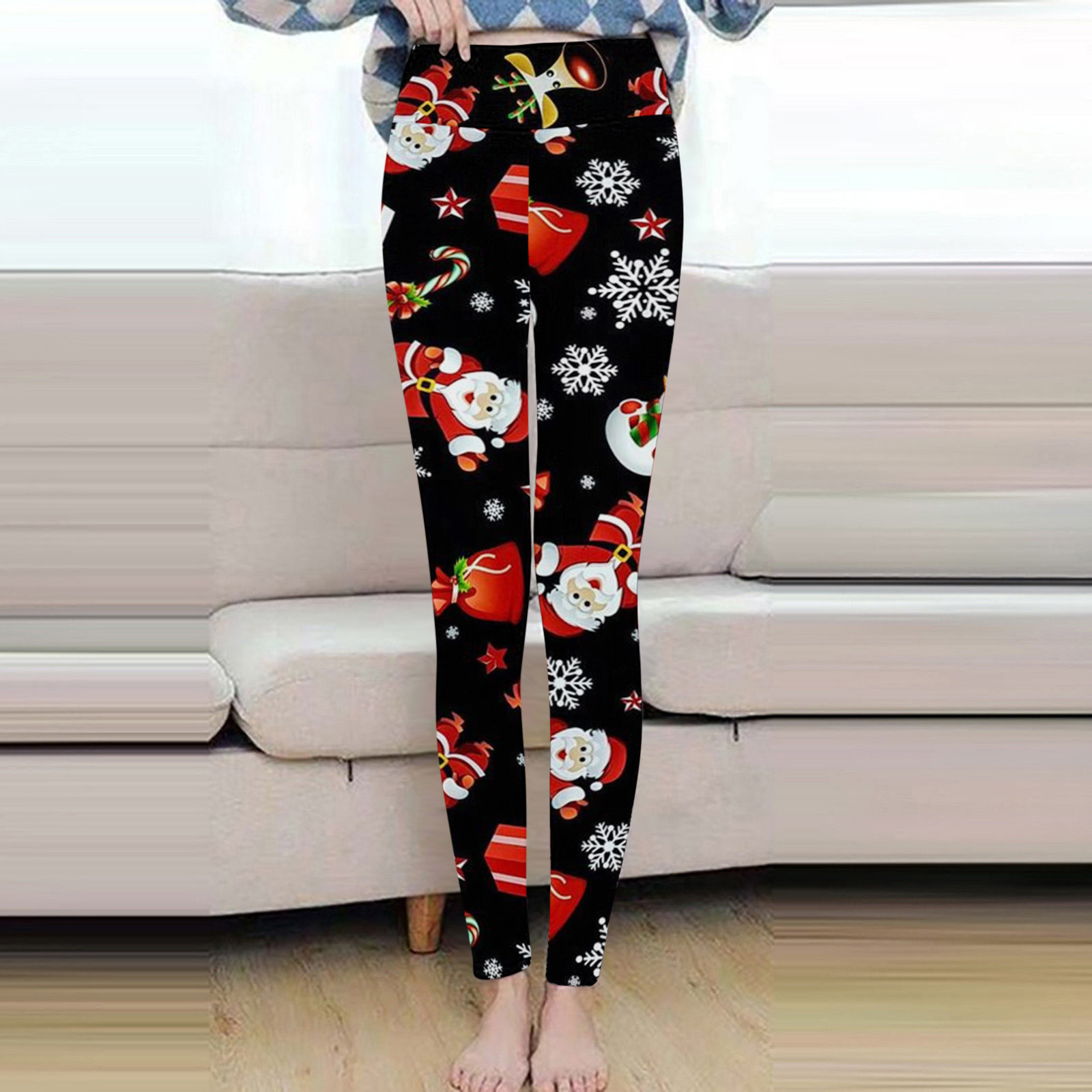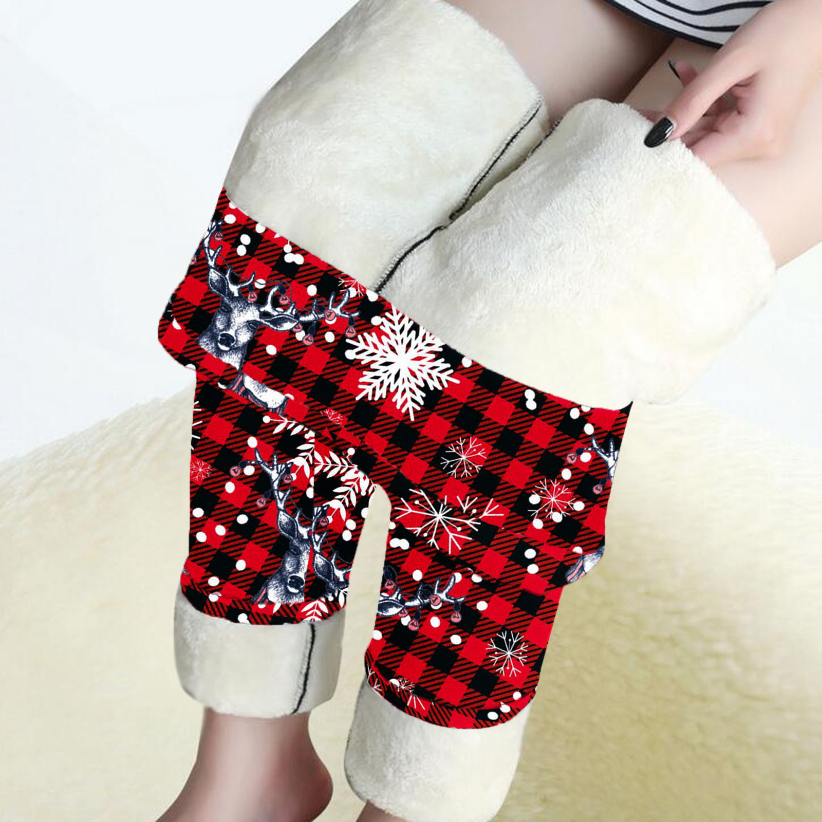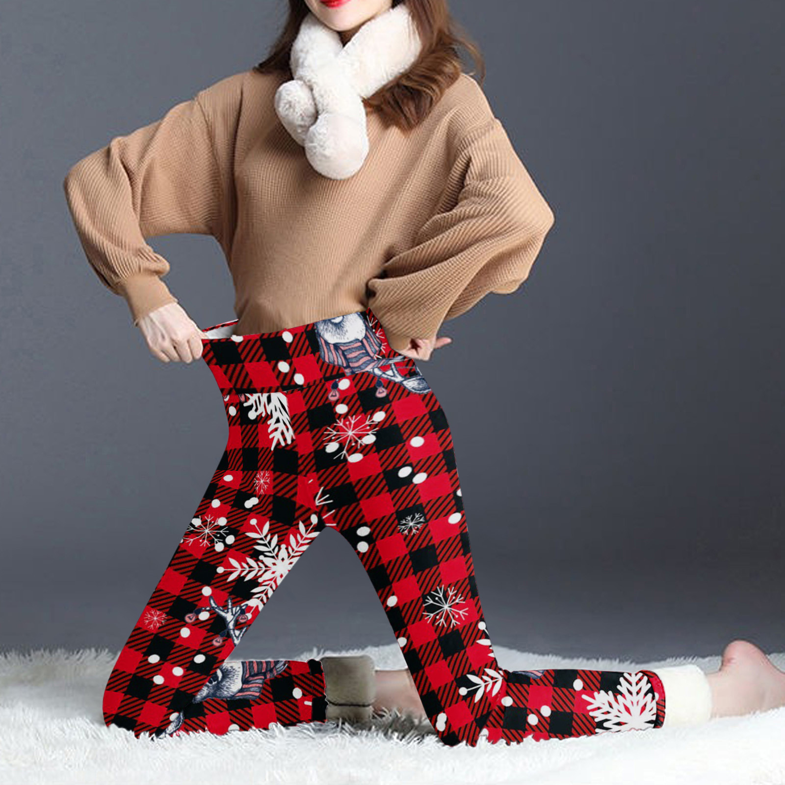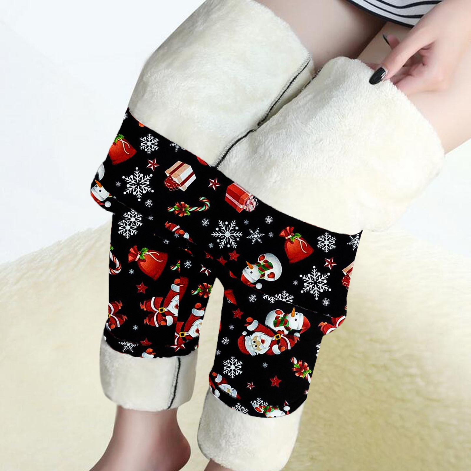 Женские леггинсы, повседневные, рождественские, с принтом, с высокой талией, сохраняющие тепло, длинные штаны