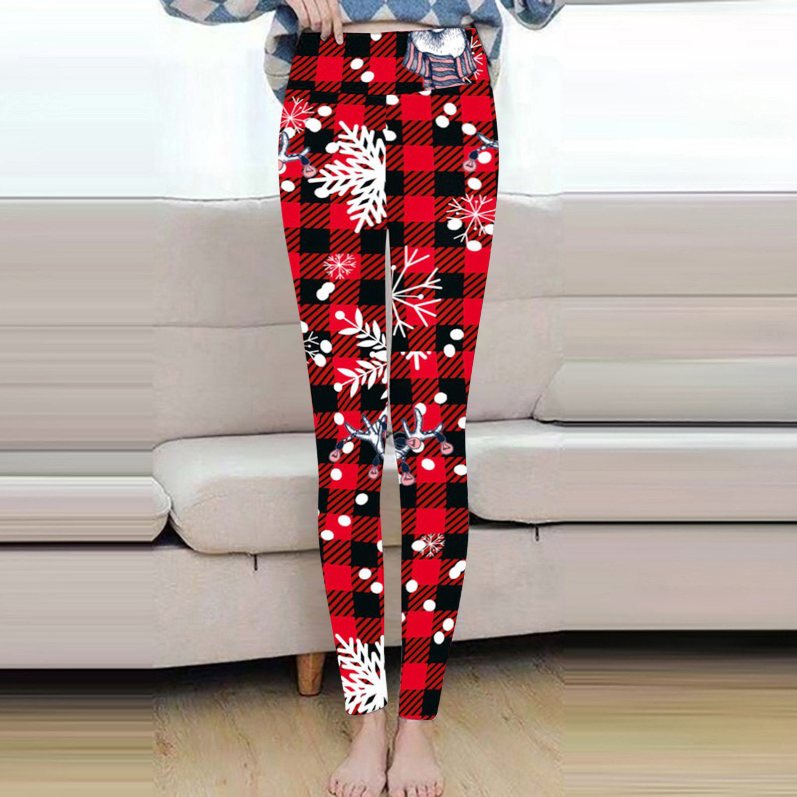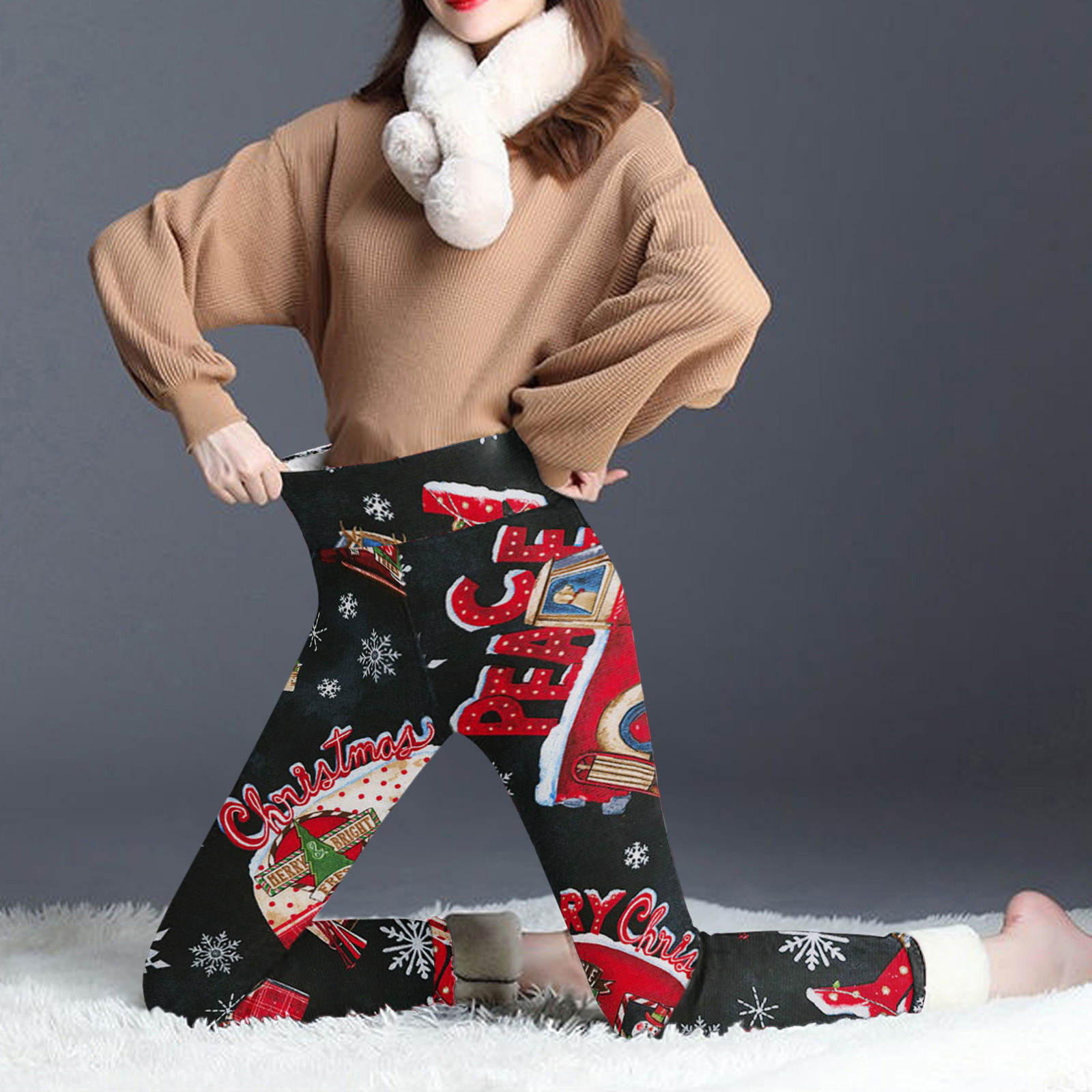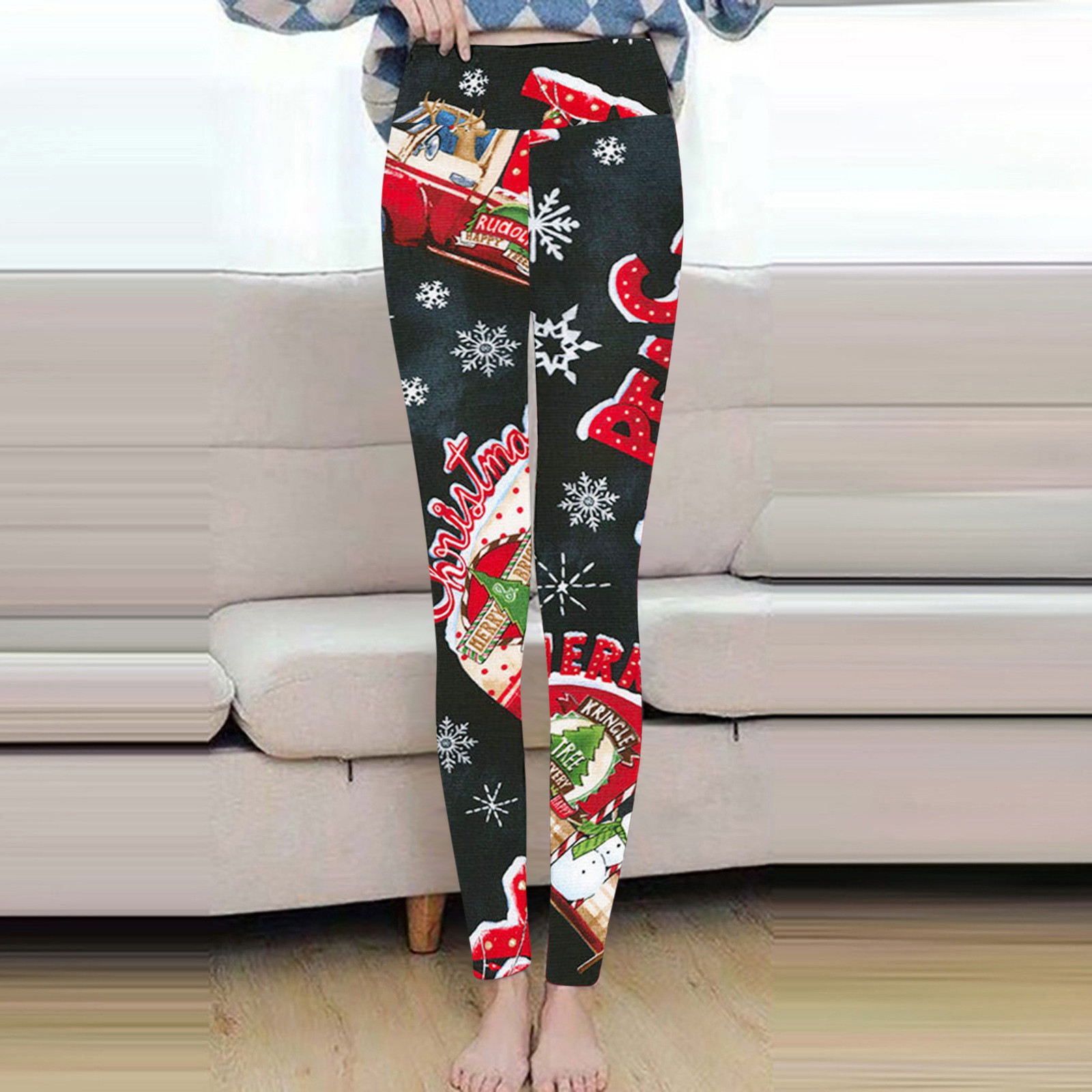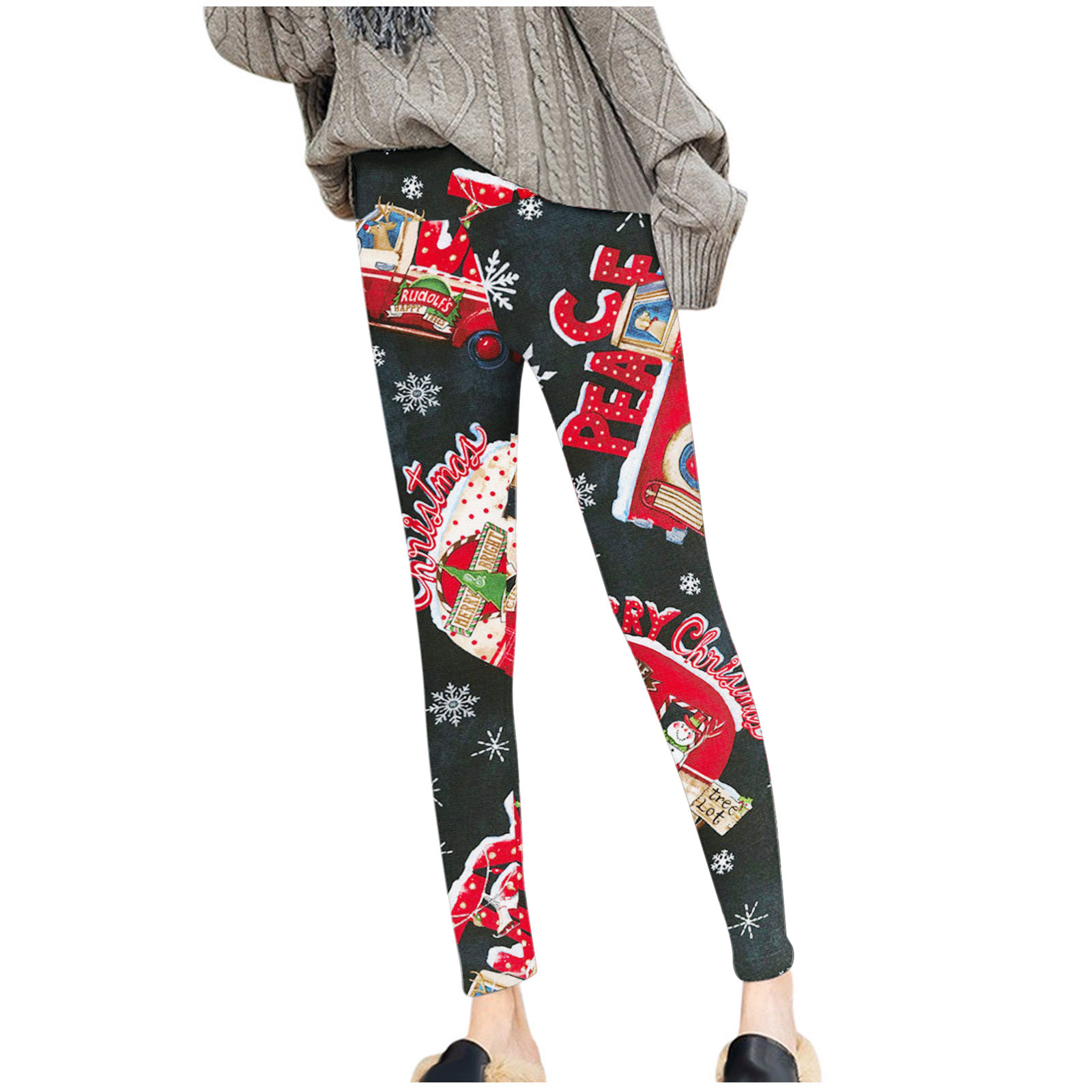 Женские леггинсы, повседневные, рождественские, с принтом, с высокой талией, сохраняющие тепло, длинные штаны