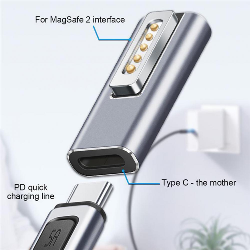 Adapter Converter PD Quick Charge Aluminum Alloy Type-C to Mag-safe 1/2 Magnetic Charging Connector for MacBook Air/Pro