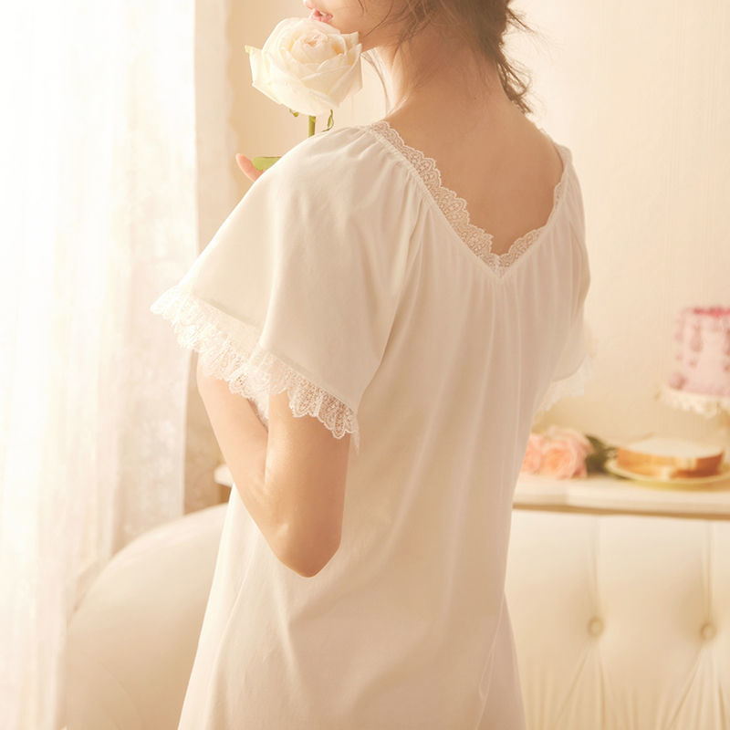 2. Женское сказочное мини-платье с коротким рукавом, милое кружевное сексуальное романтическое Ночное платье с v-образным вырезом со встроенными бюстгальтерами, одежда для сна принцессы.