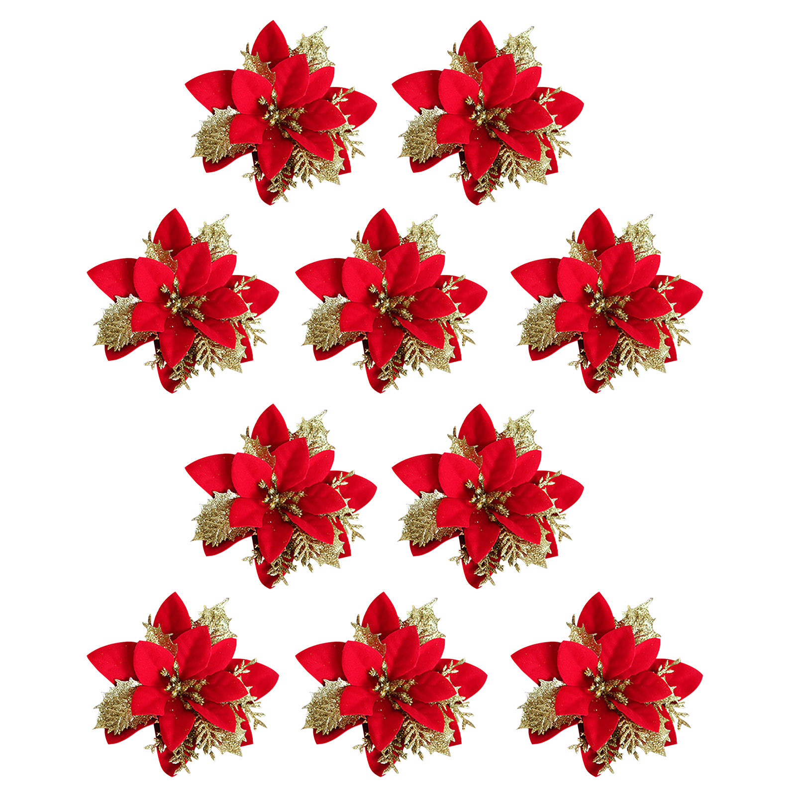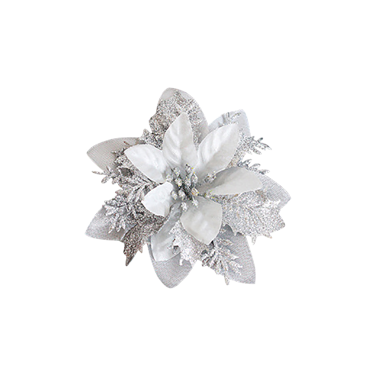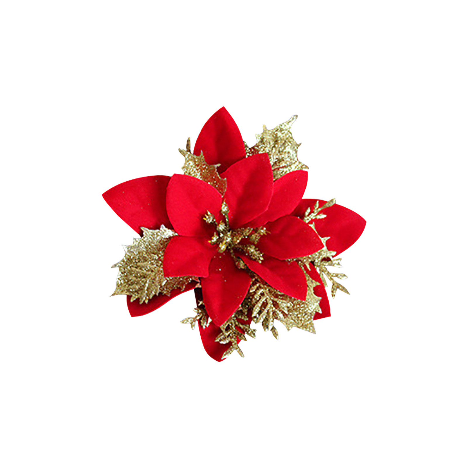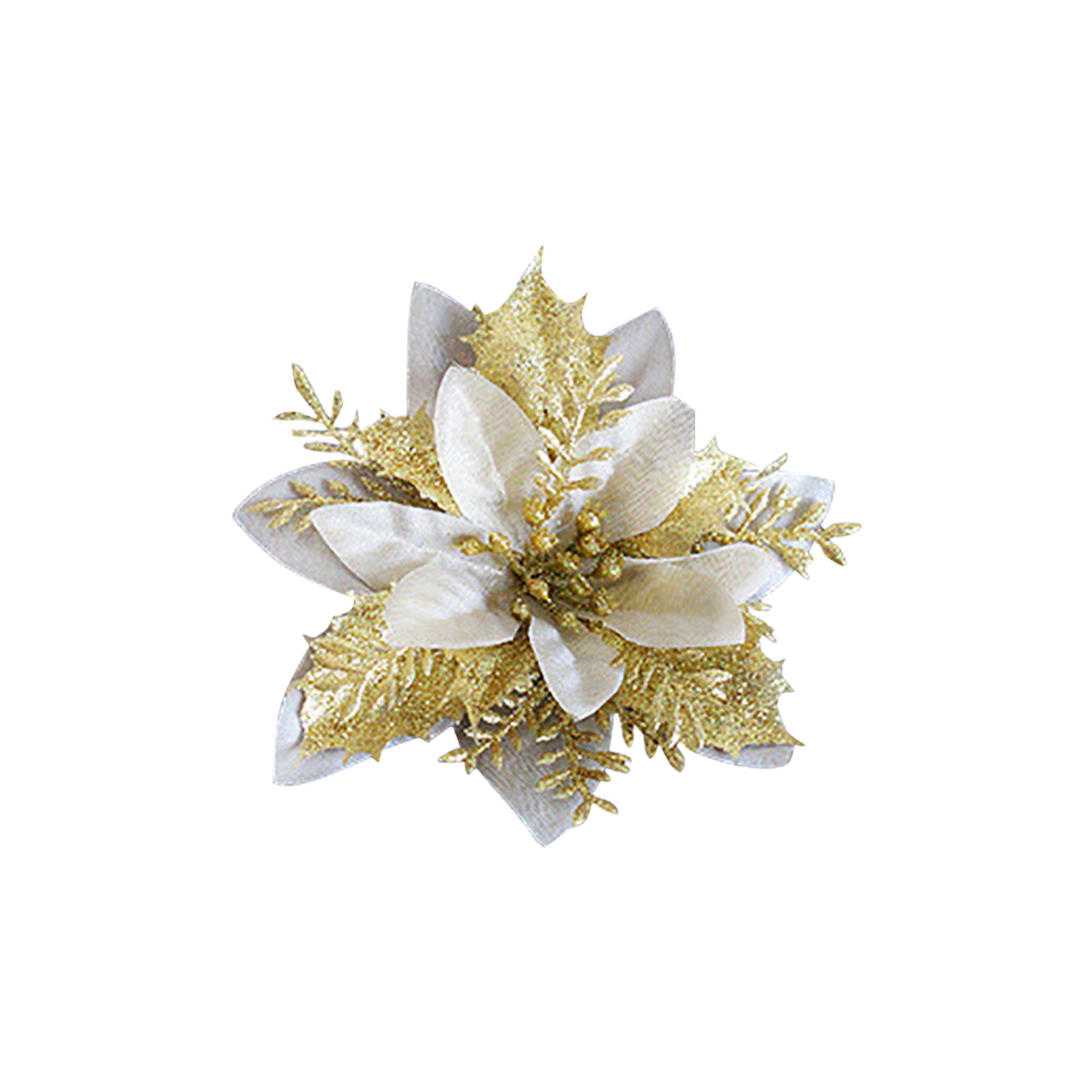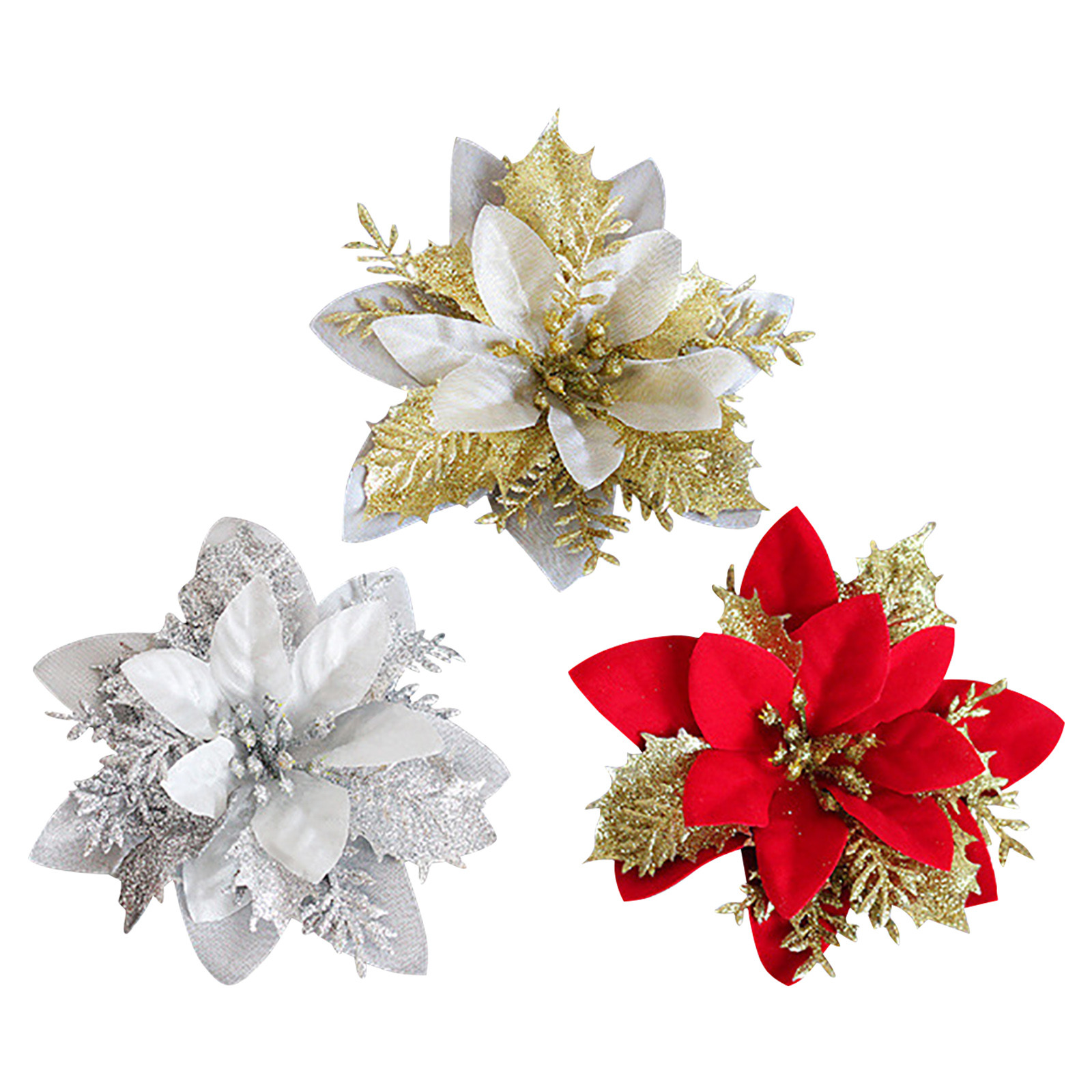 10PC Christmas Decoration Flower Simulation Flower Gold Silver Red Three-Layer Plastic Flower Three-Dimensional Christmas Flower Ornament