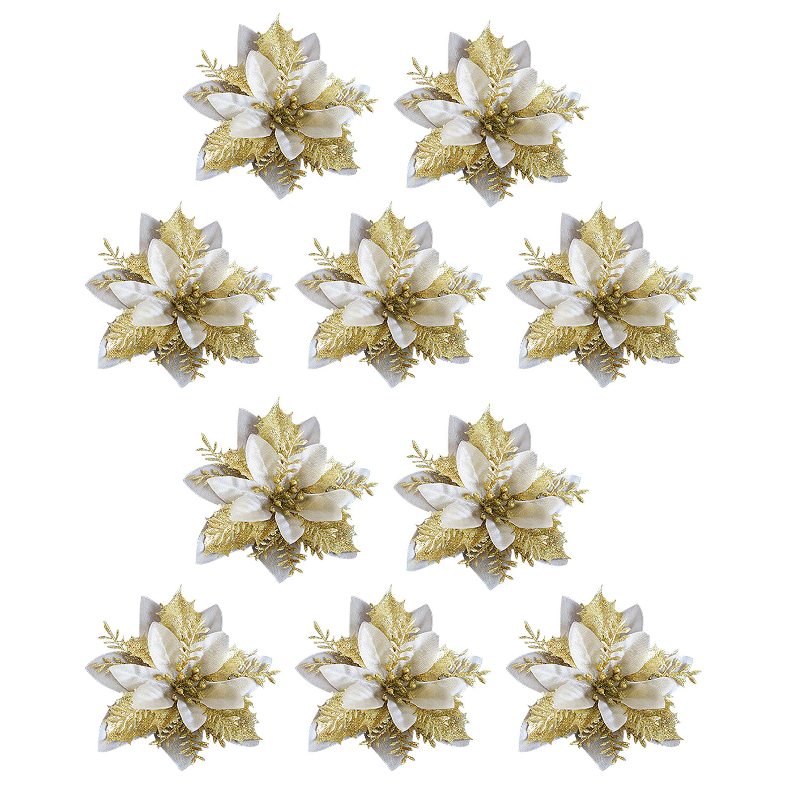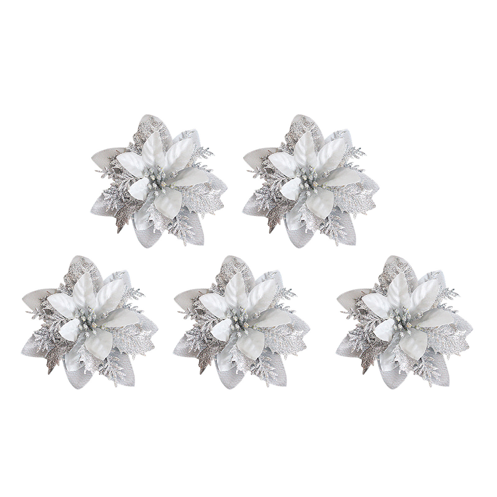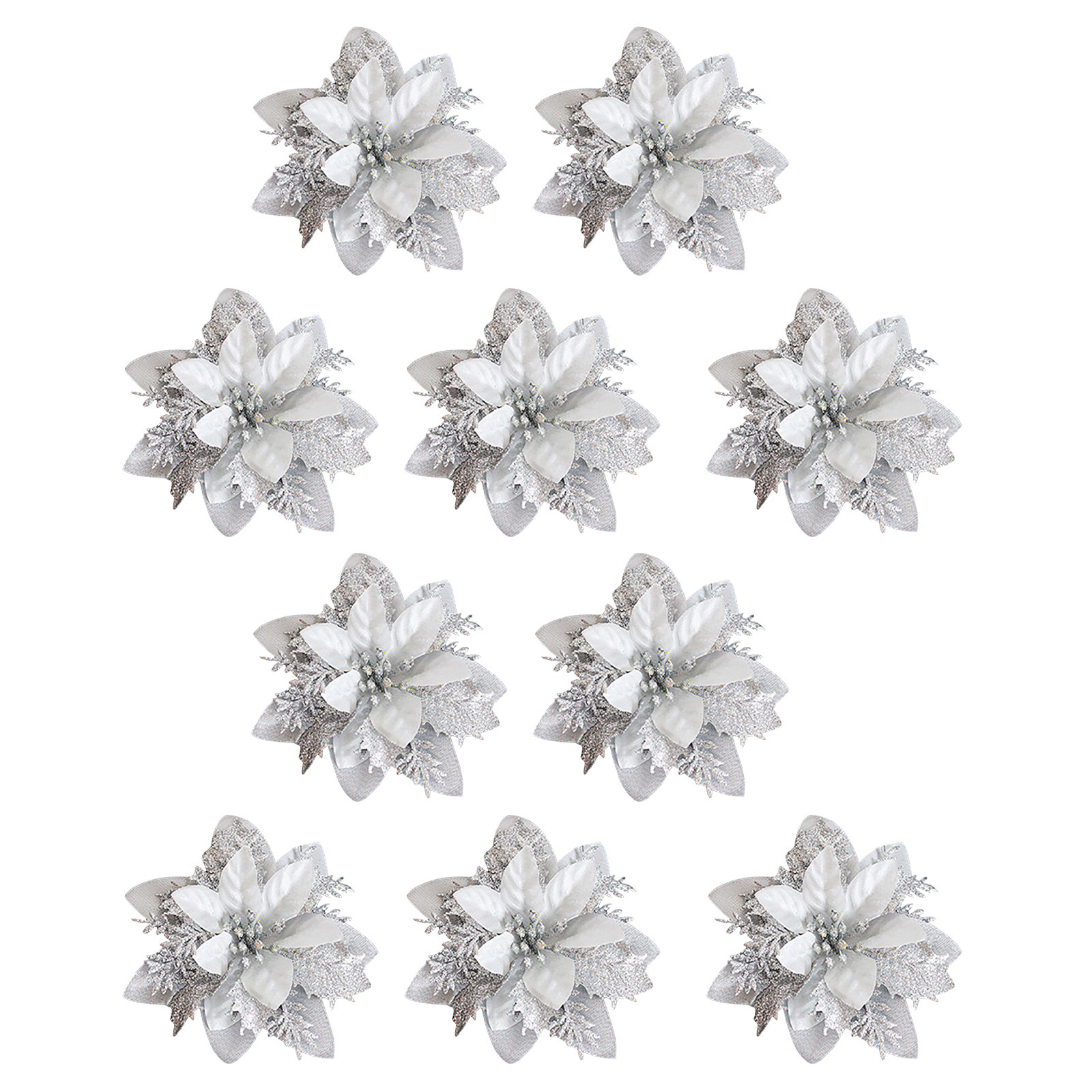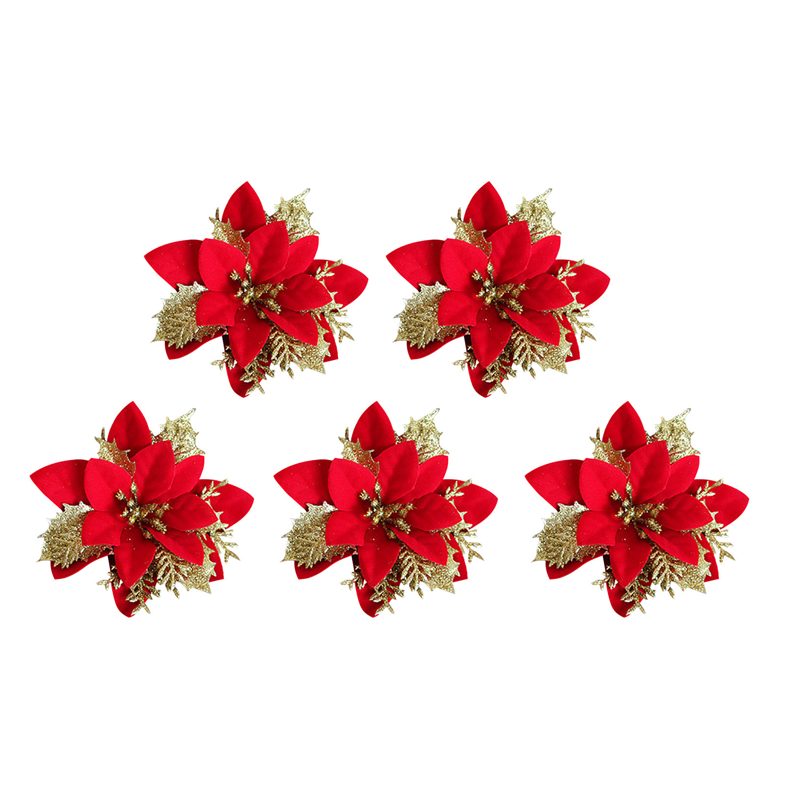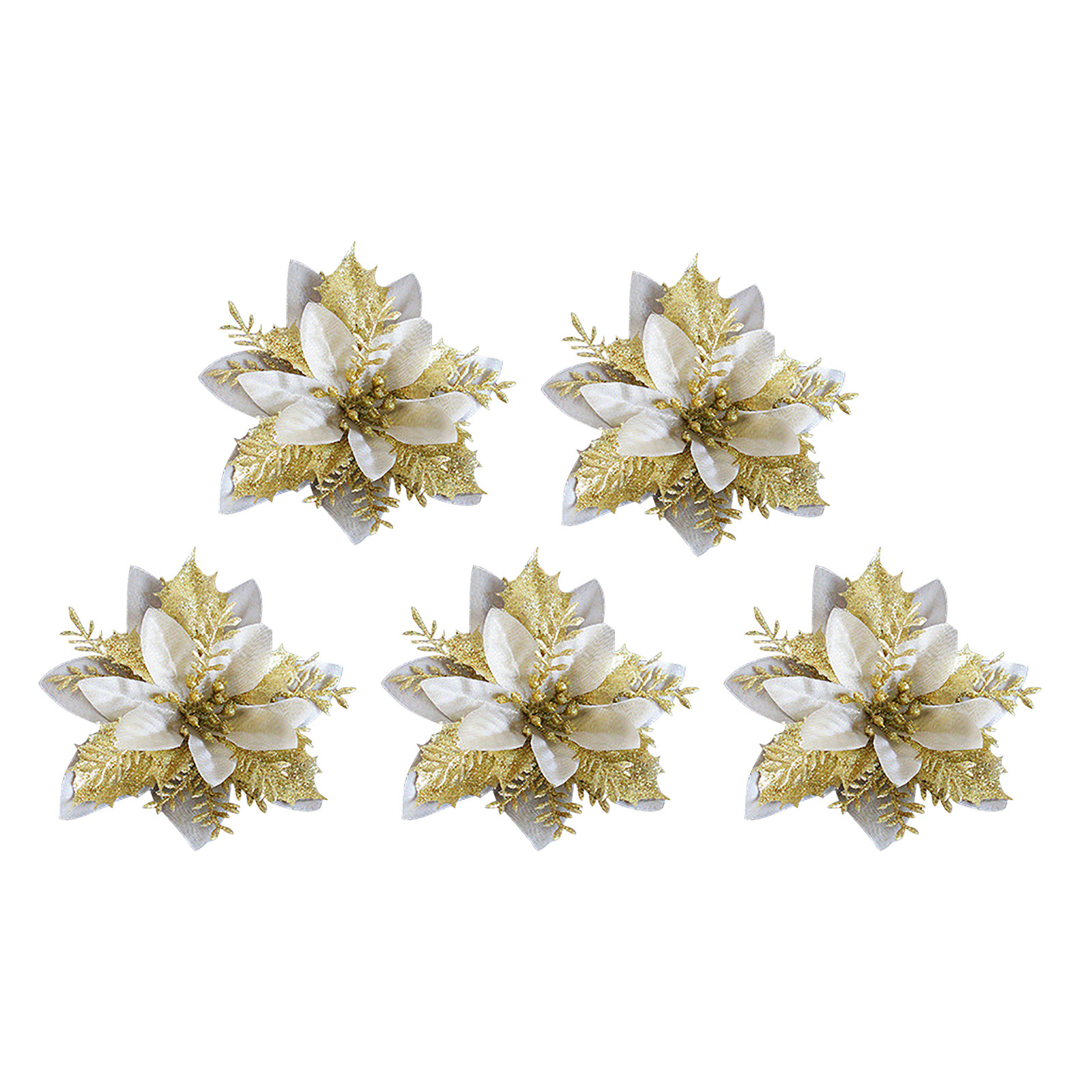 10PC Christmas Decoration Flower Simulation Flower Gold Silver Red Three-Layer Plastic Flower Three-Dimensional Christmas Flower Ornament