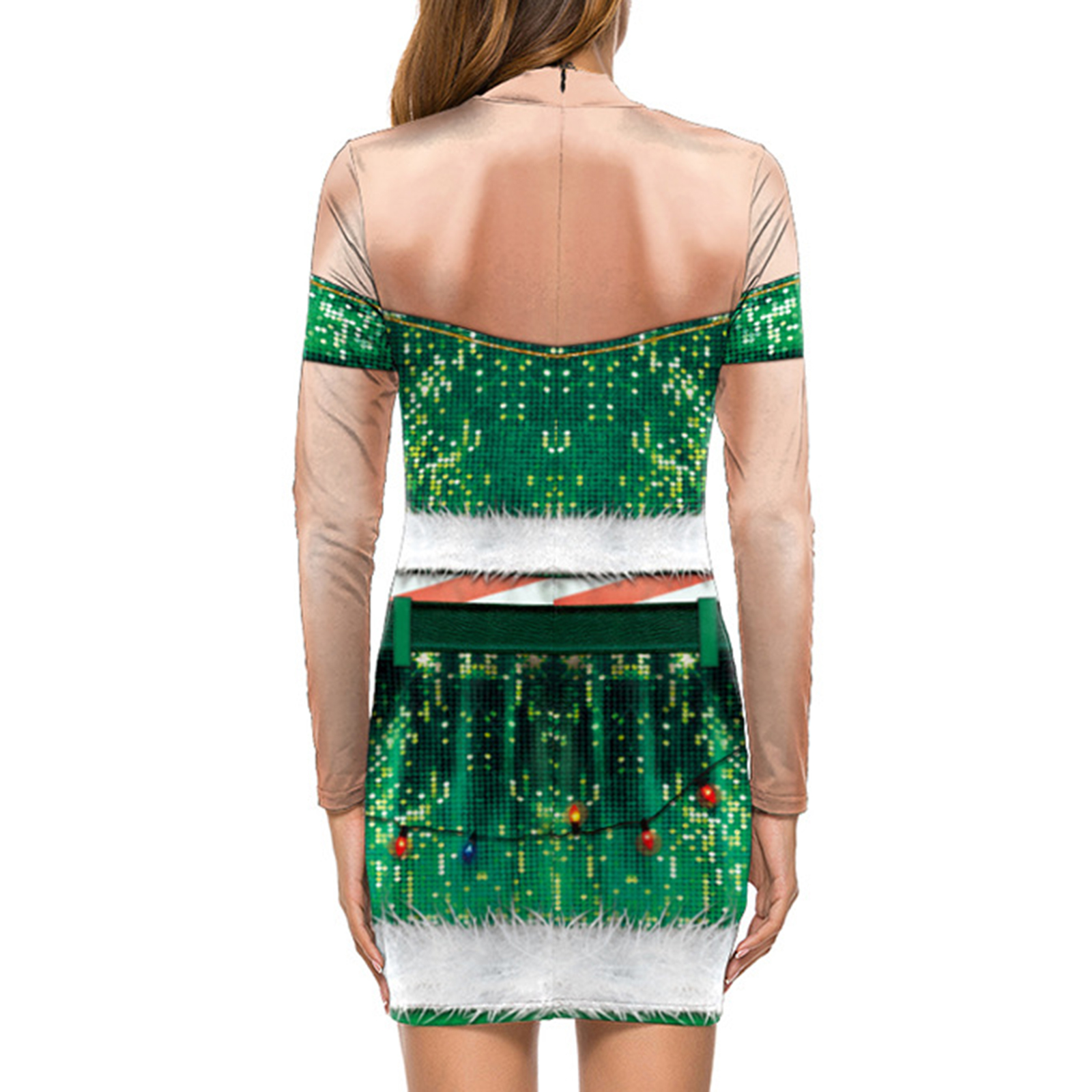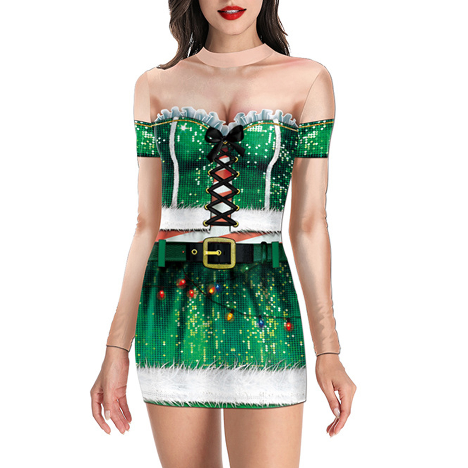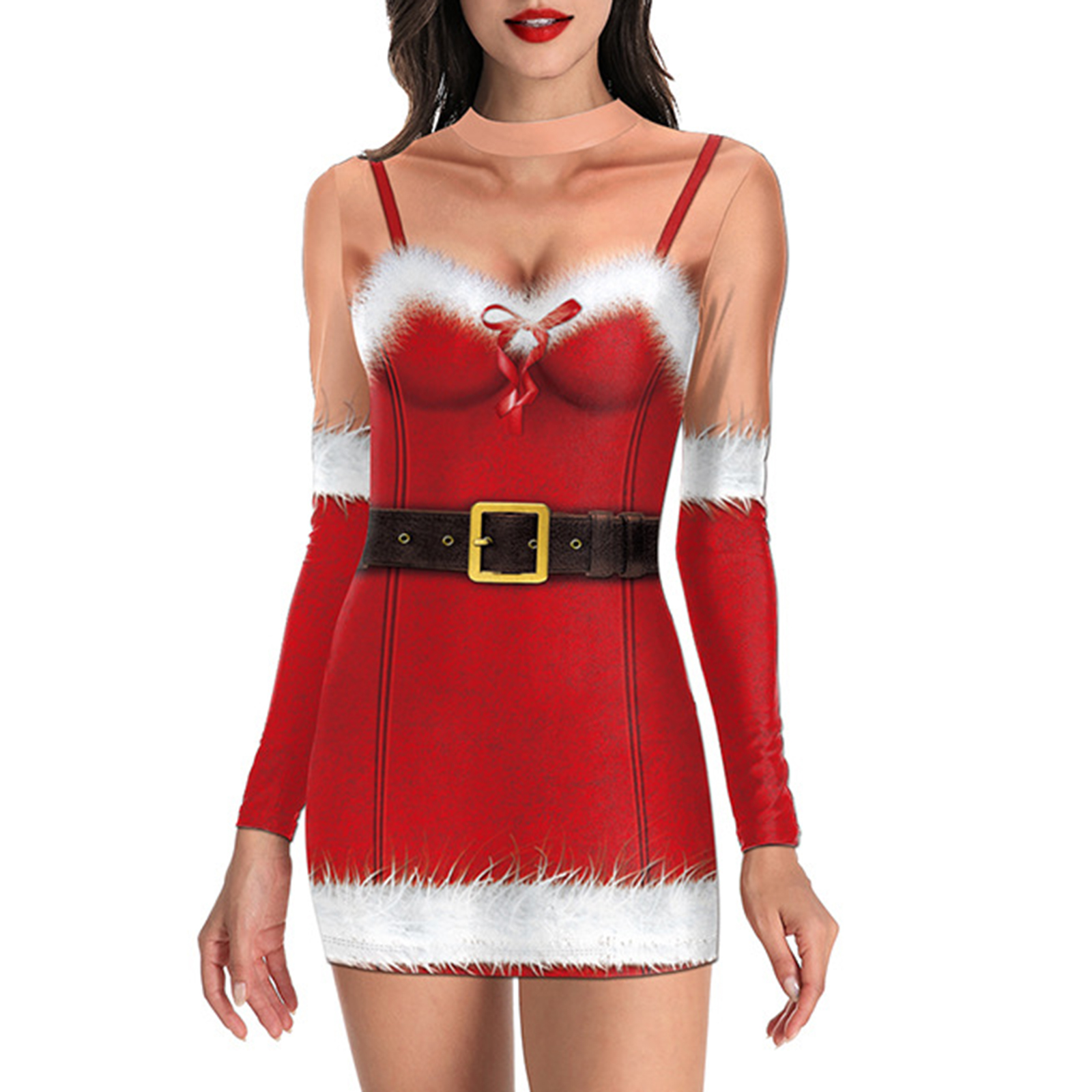 Женские рождественские платья, новинка, с принтом, с длинным рукавом, мини платье, повседневные, с вырезом лодочкой, облегающие платья для костюмированной вечеринки, вечерние, Клубные платья