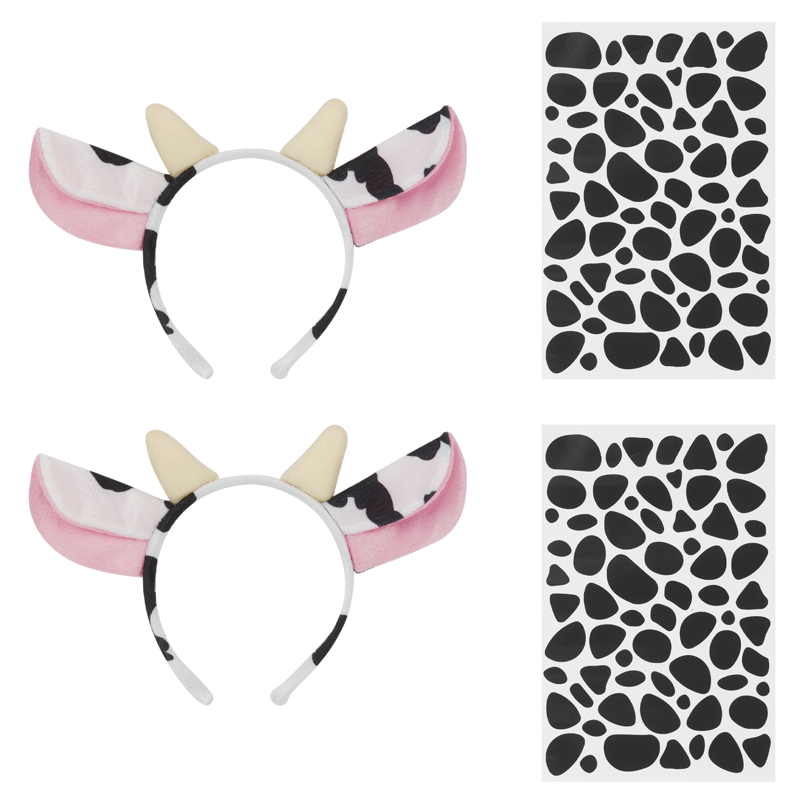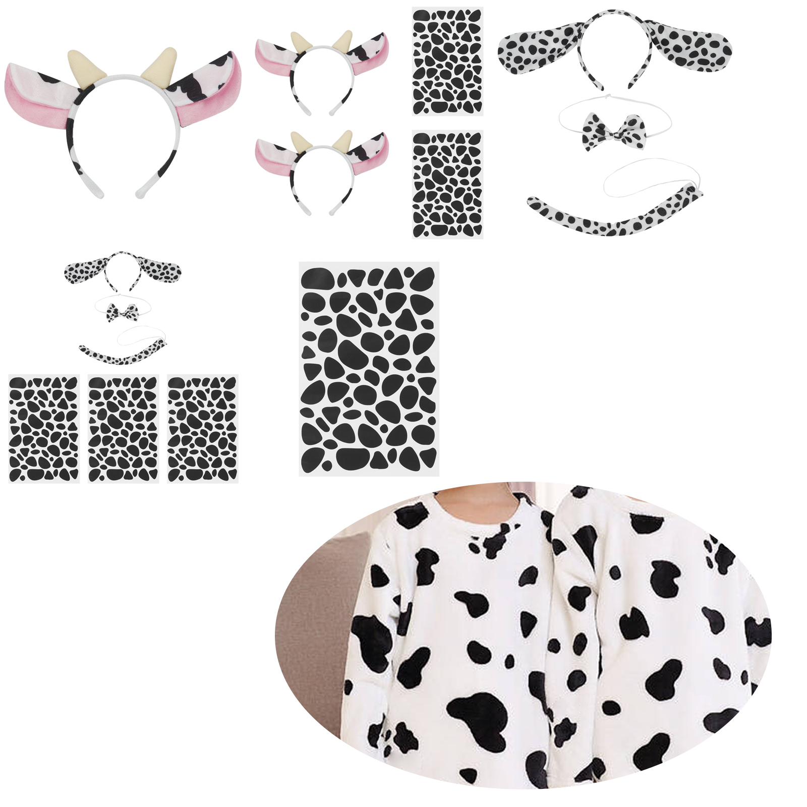 Два набора на выбор, набор типа А-2 мультяшных ободок с рогом и наклейками в виде пятен, набор типа B-головная повязка в стиле спекле, галстук-бабочка и хвост, 3 наклейки.