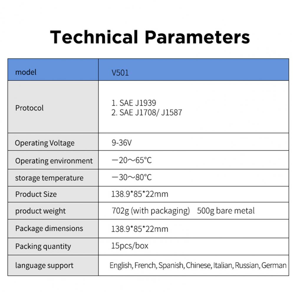 Convenient V501 Diagnostic Scanner Multifunctional engine checker ABS Multilingual Fast Detection OBD2 Truck Code Reader for Car